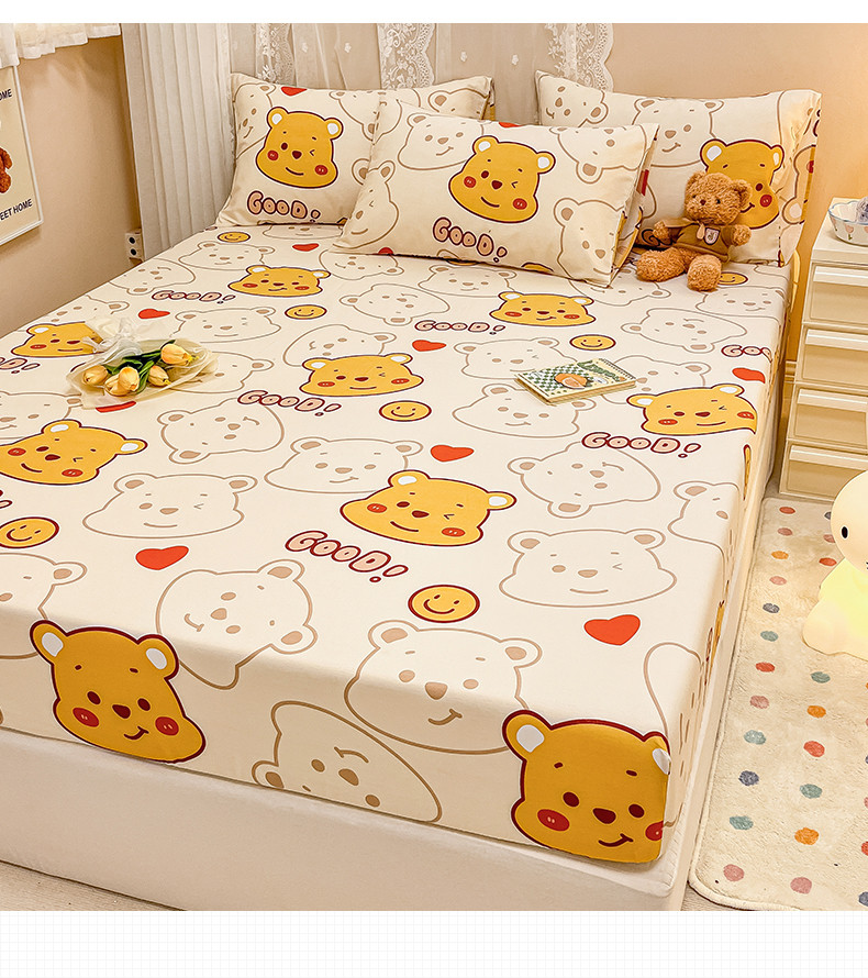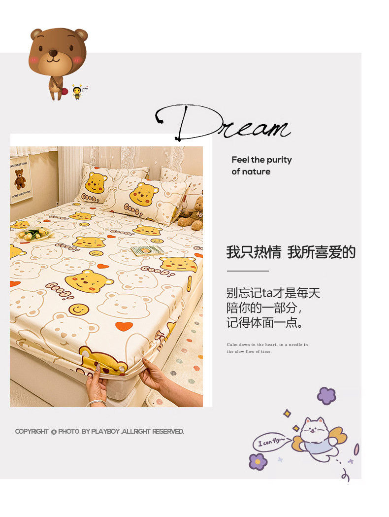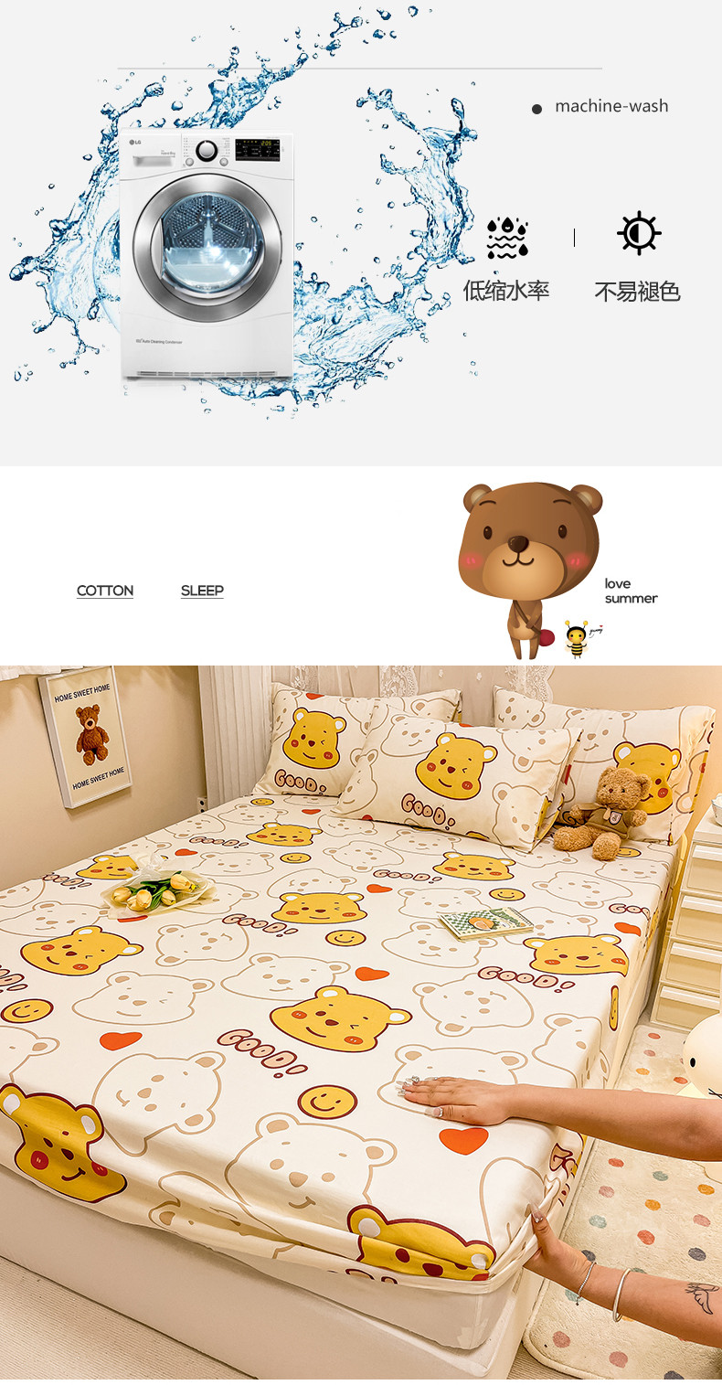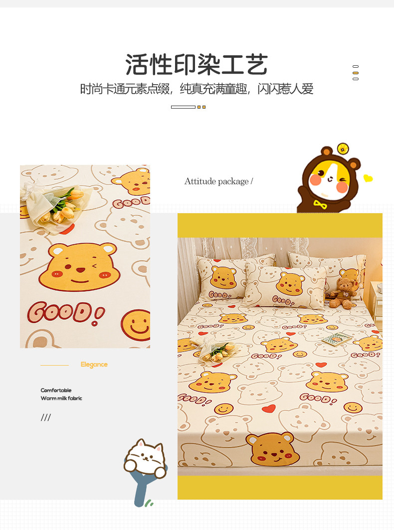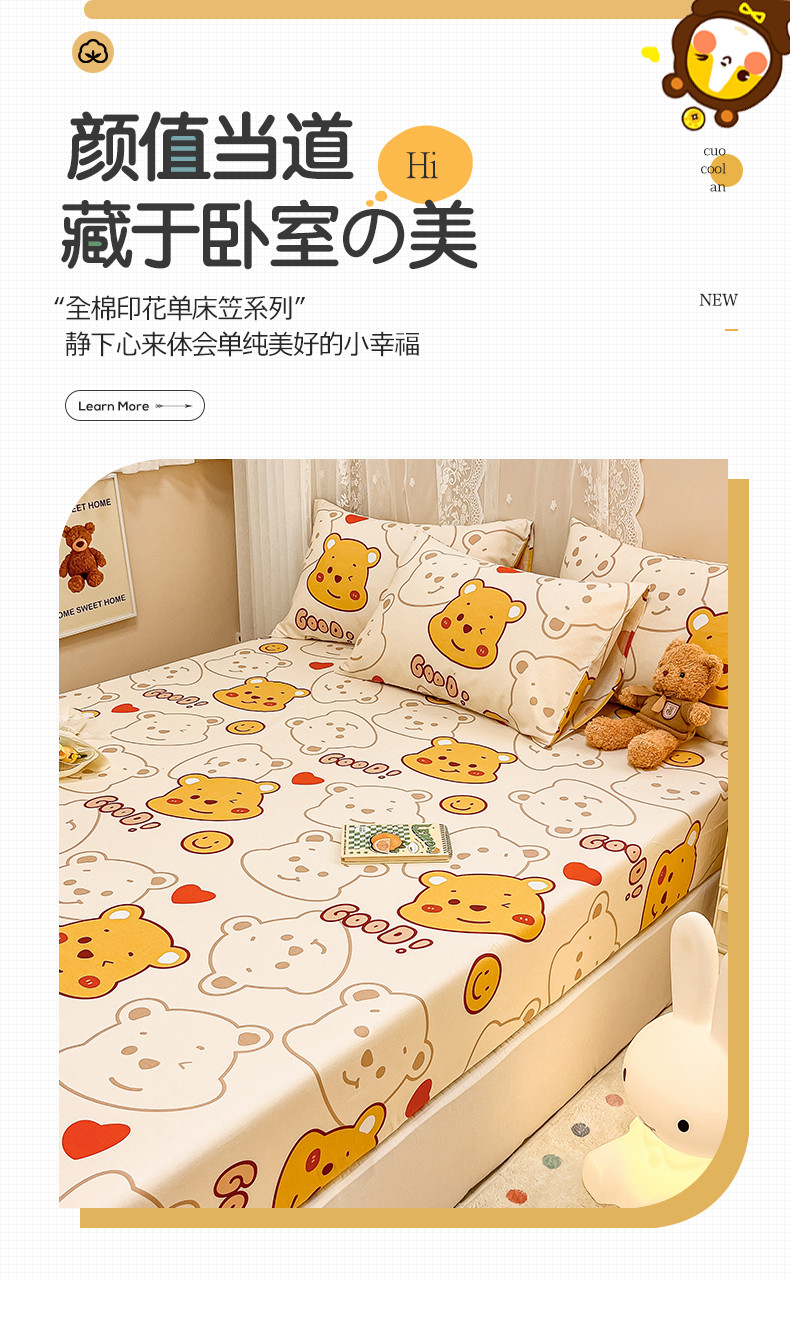 • 91家纺网 家纺一手货源 找家纺 小懒猪 2024春夏新款全棉印花单床笠 欢乐萌熊