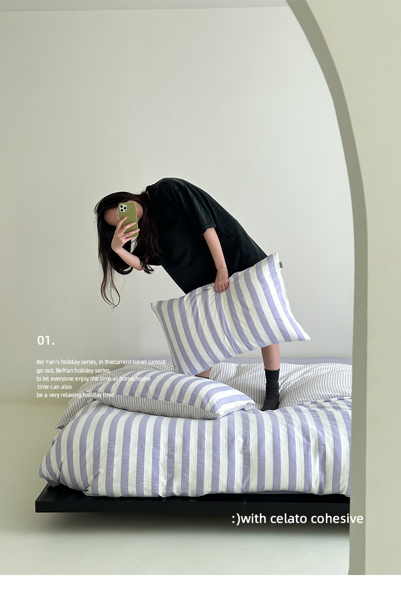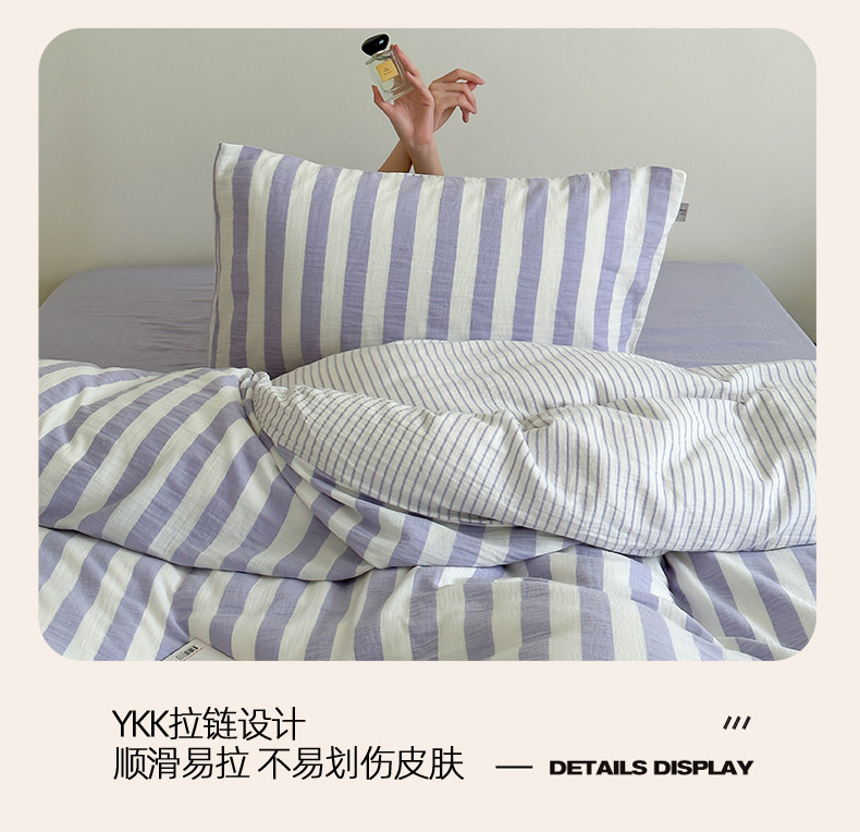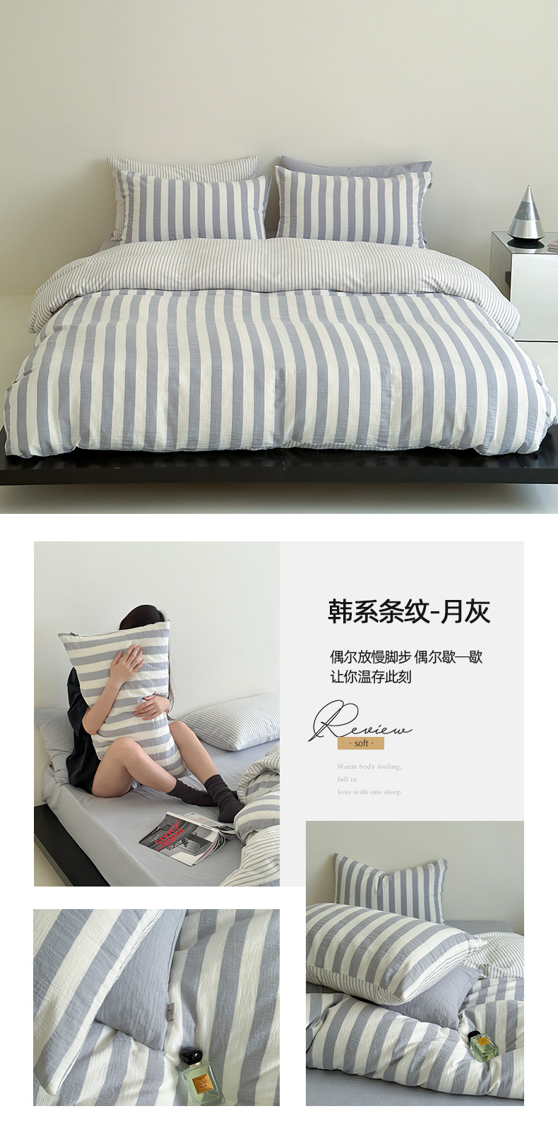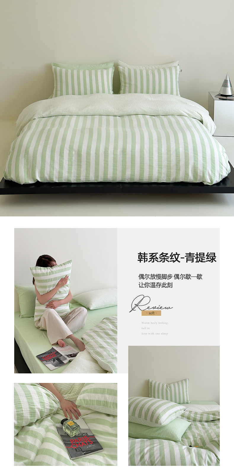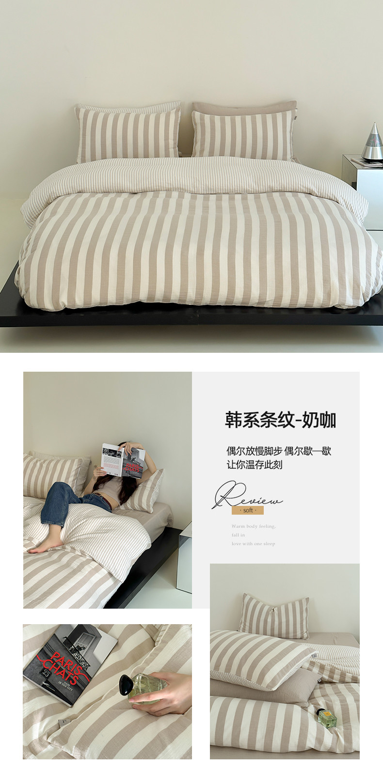 商品名称:(总)玛奇朵 2023新款色织双层皱纱-韩系条纹四件套