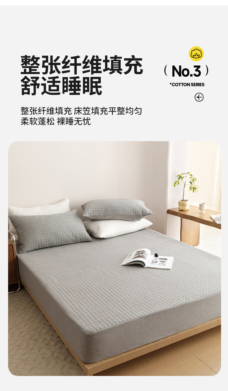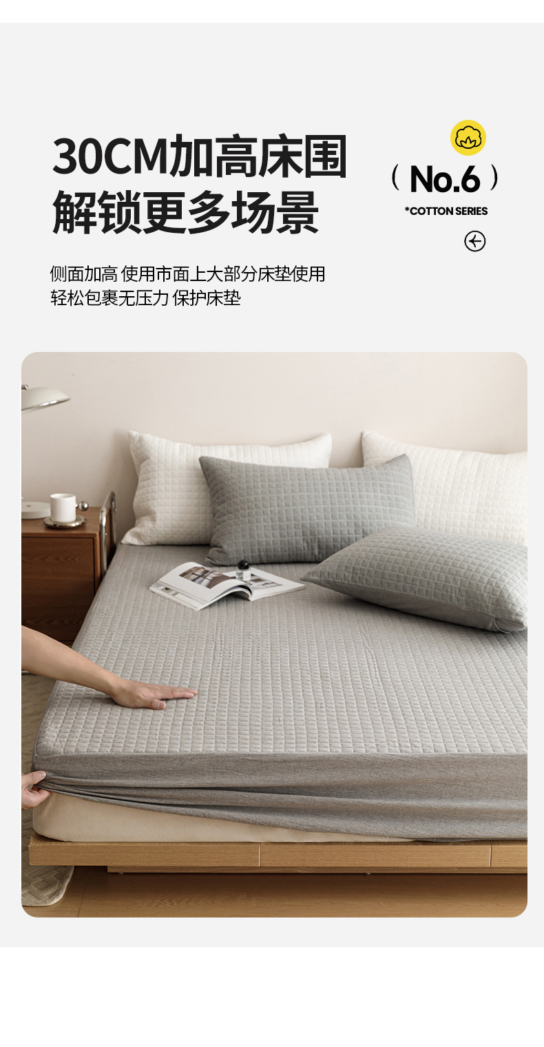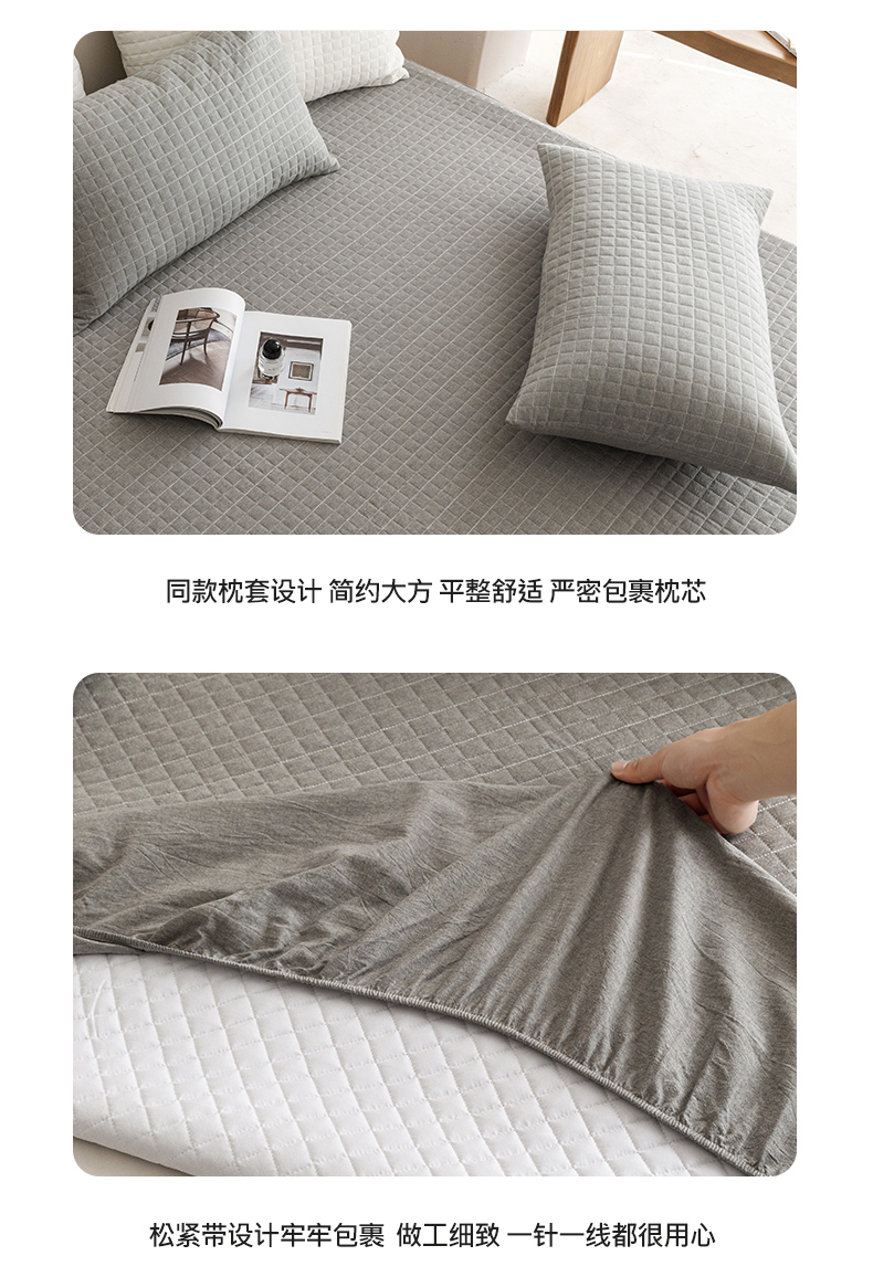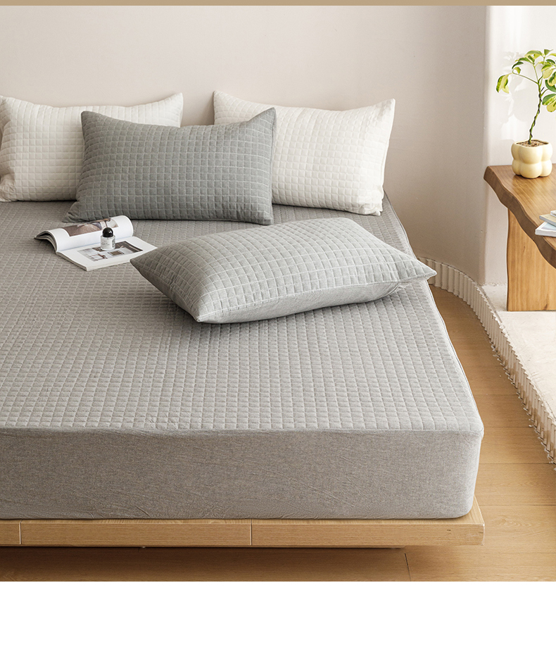 商品名称:忘忧草 2023新款A类全棉色织水洗夹棉床笠 格韵-浅灰
