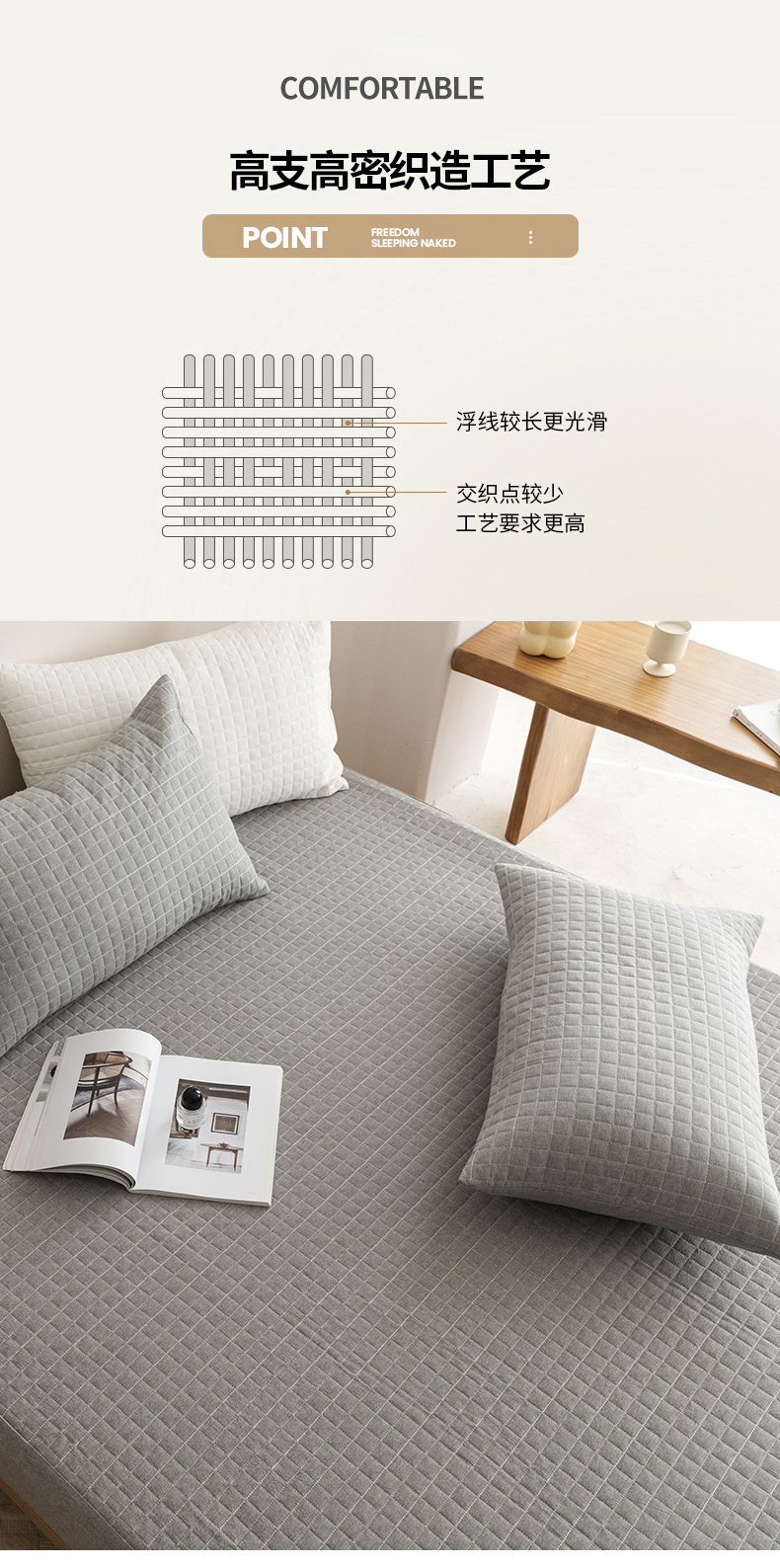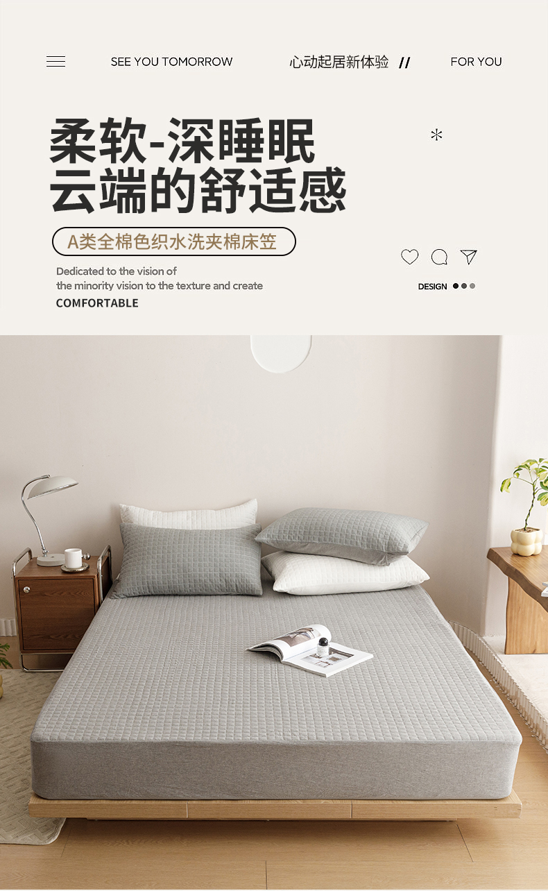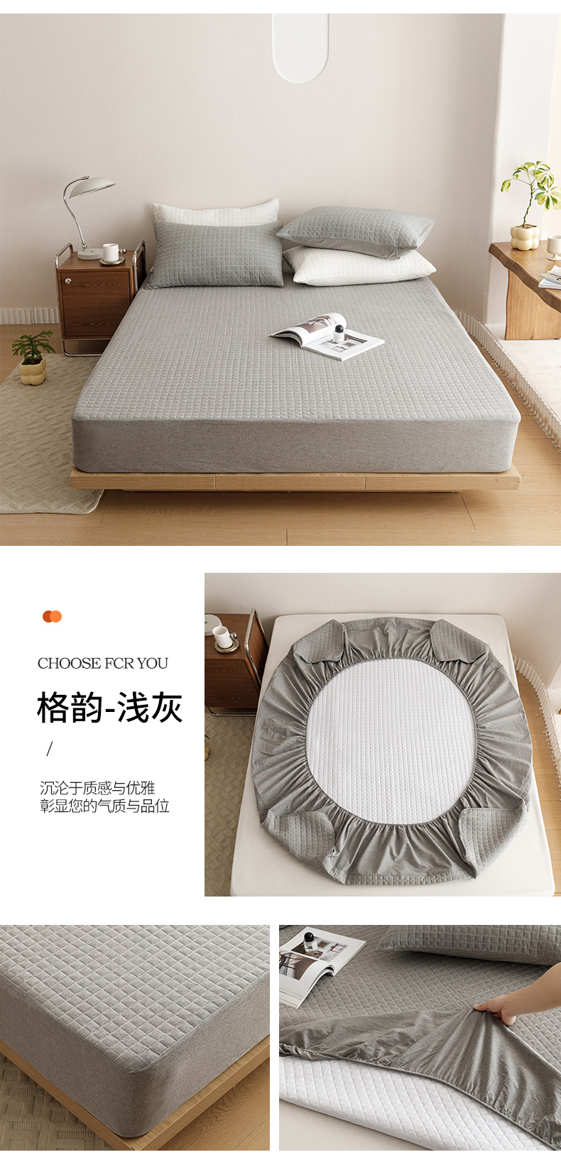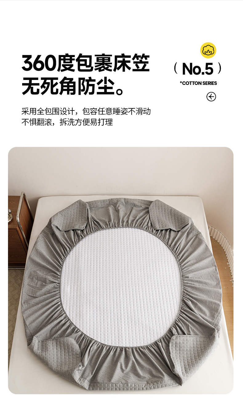 商品名称:忘忧草 2023新款A类全棉色织水洗夹棉床笠 格韵-浅灰