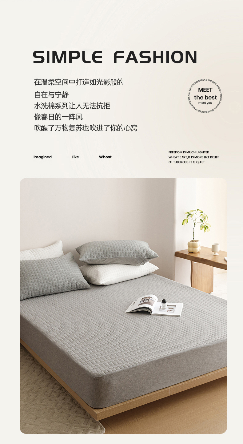 (总)忘忧草 2025新款A类全棉色织水洗夹棉床笠纯棉,格韵-卡其,格韵-浅灰,格韵-浅蓝,格韵-粉玉,格韵-雅白