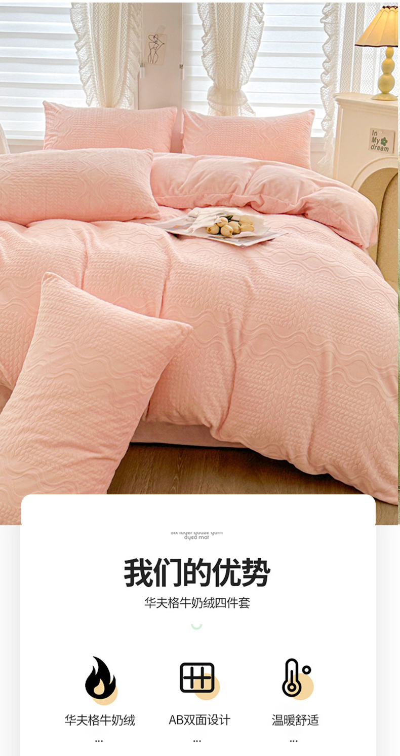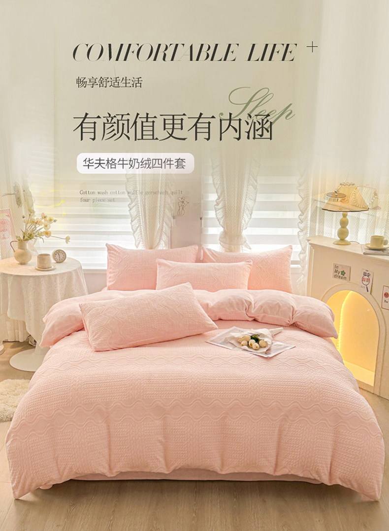 当前位置: 91家纺网 > 商品网购 > 床品套件 > 四件套 > 牛奶绒四件套 > 雅萱家纺 2023新款简约华夫绒四件套 简约华夫粉色