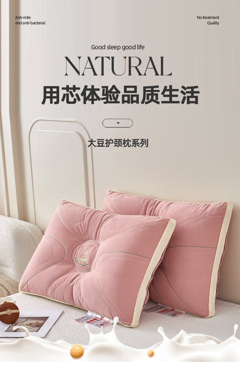 商品名称:纽乐家纺 2023新款大豆护颈枕 粉色48*74cm/只