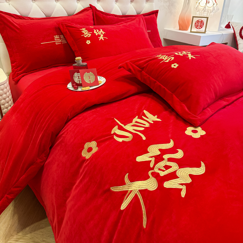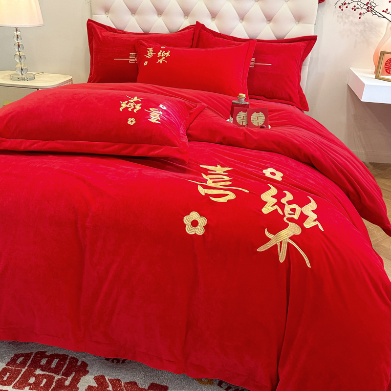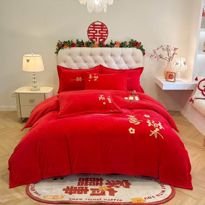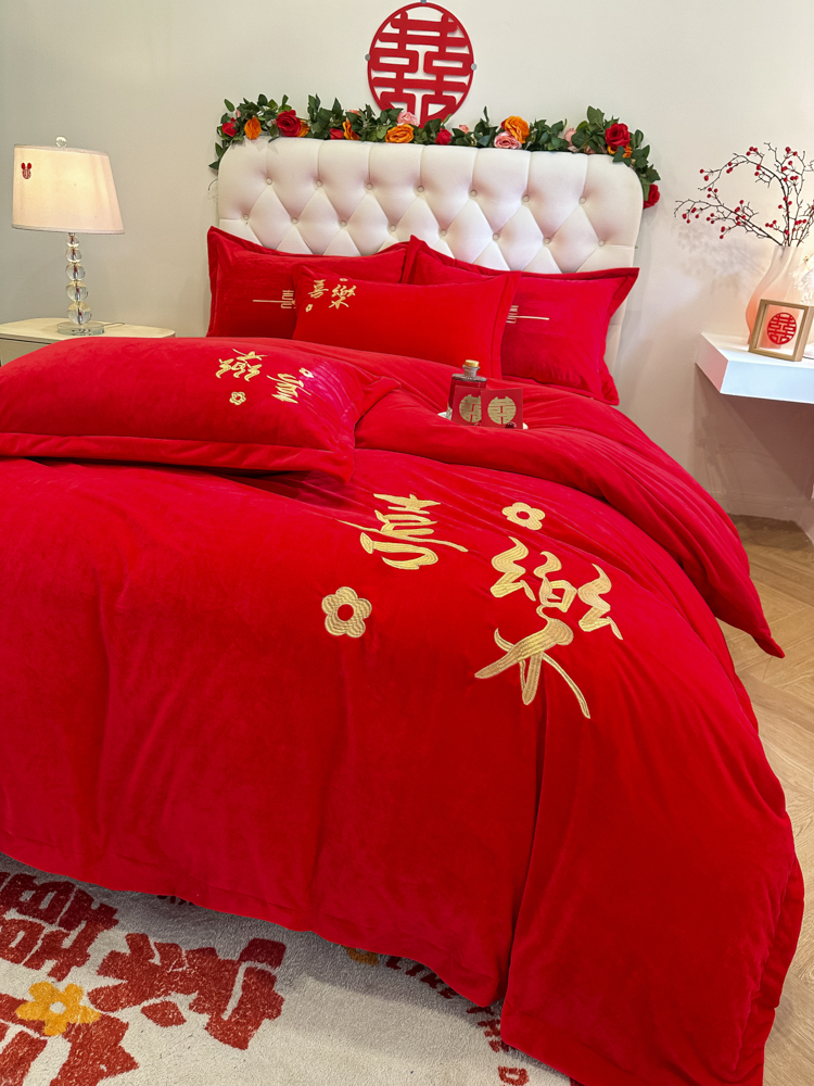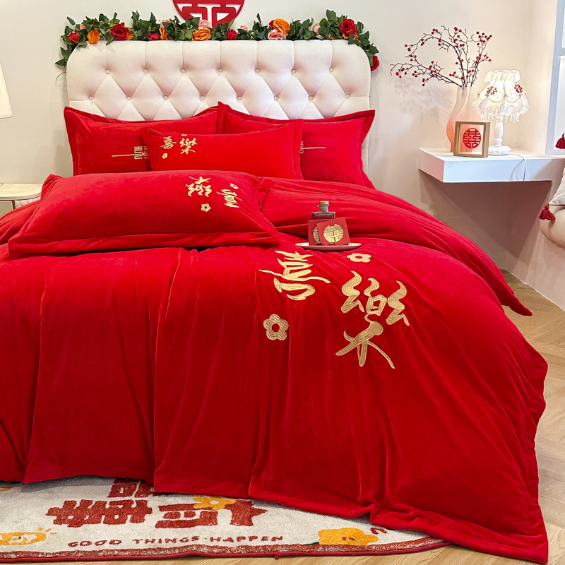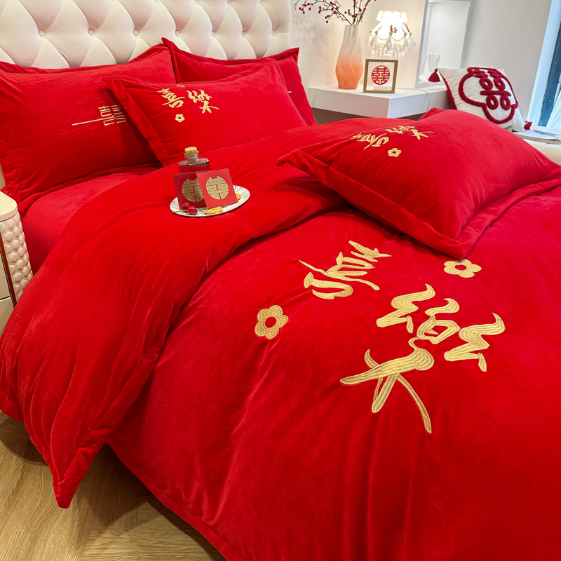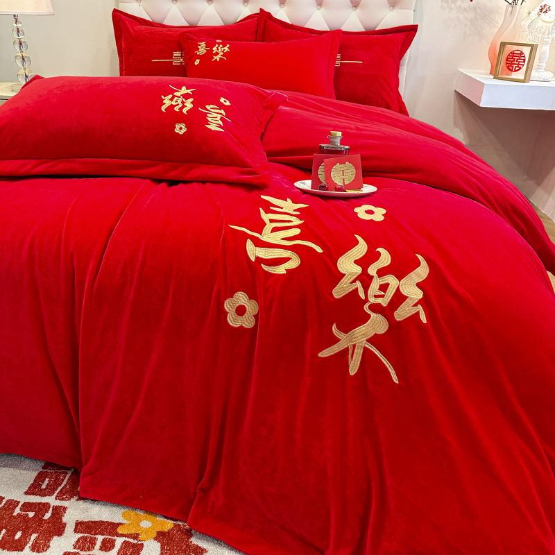 商品名称:(总)千希家纺家纺 2024新款喜乐绒婚庆四件套