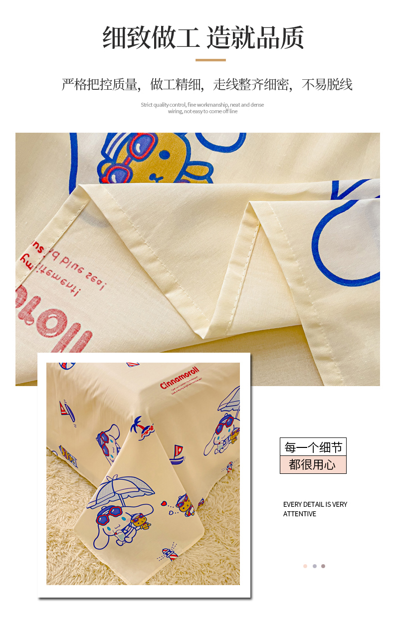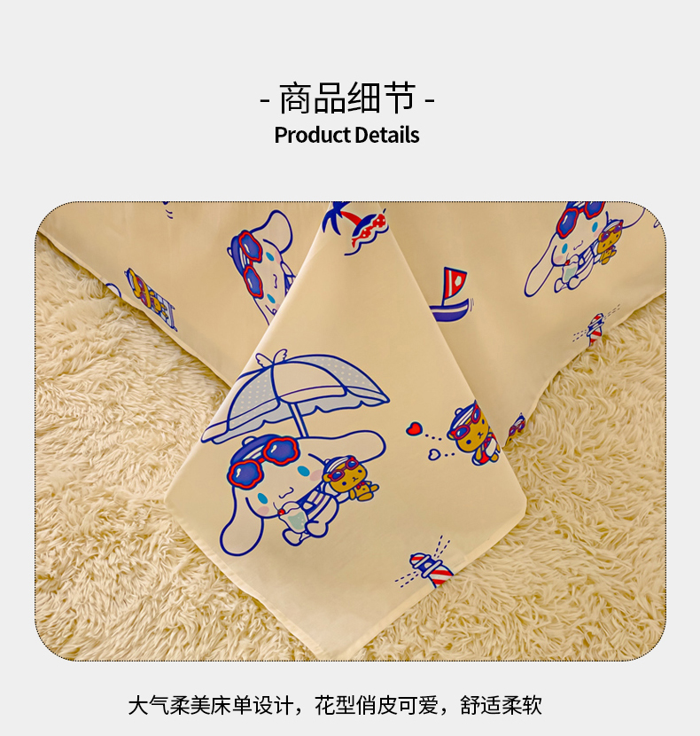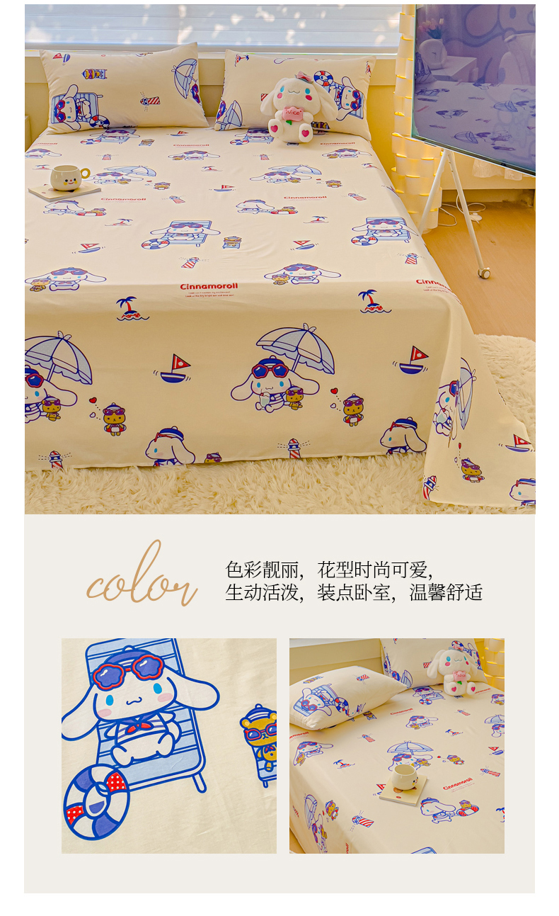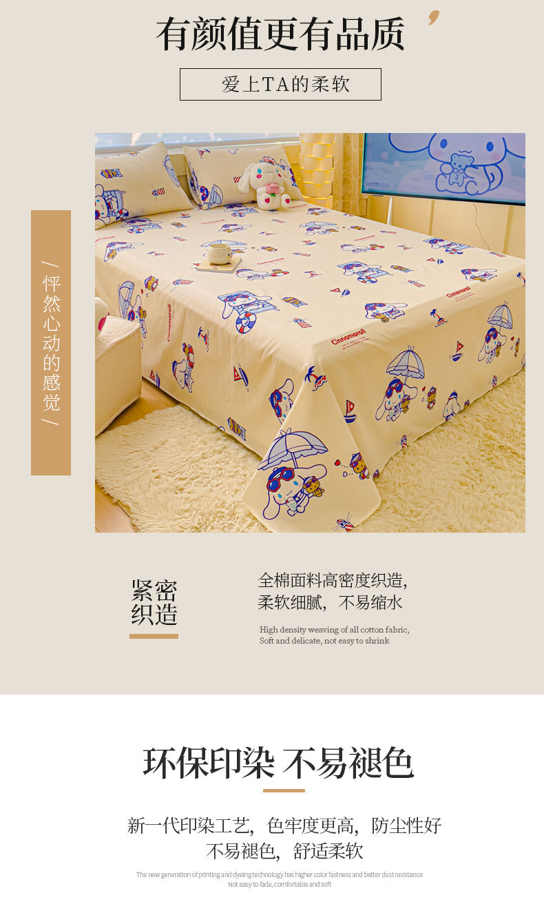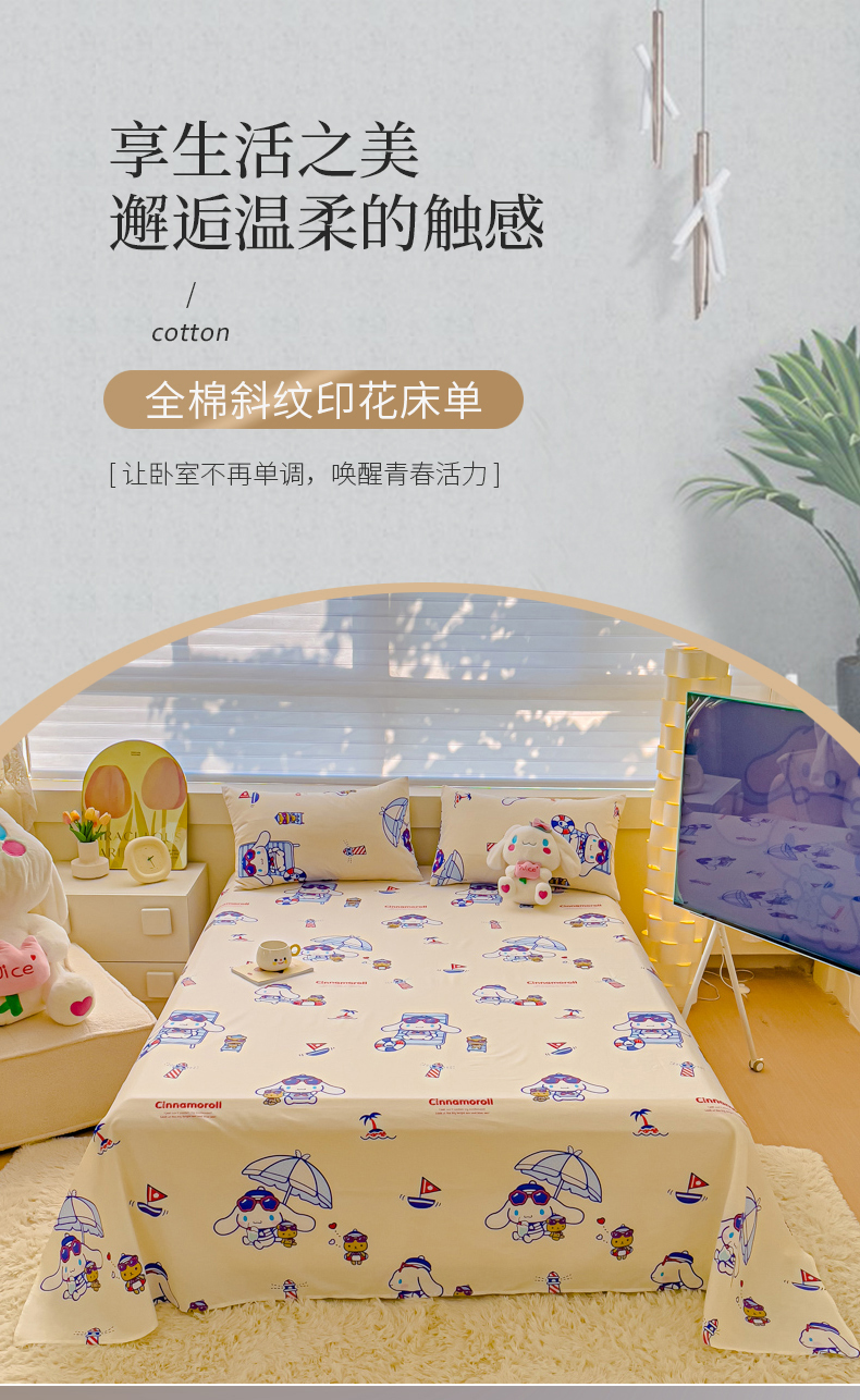 (总)金丝鸟家纺 2025新款三丽鸥系列全棉斜纹13370单品床单,波点美乐蒂,彩虹大耳朵狗,条纹库洛米,晚安kt