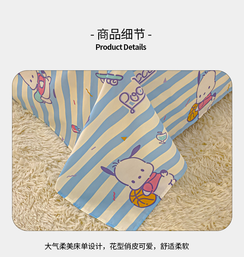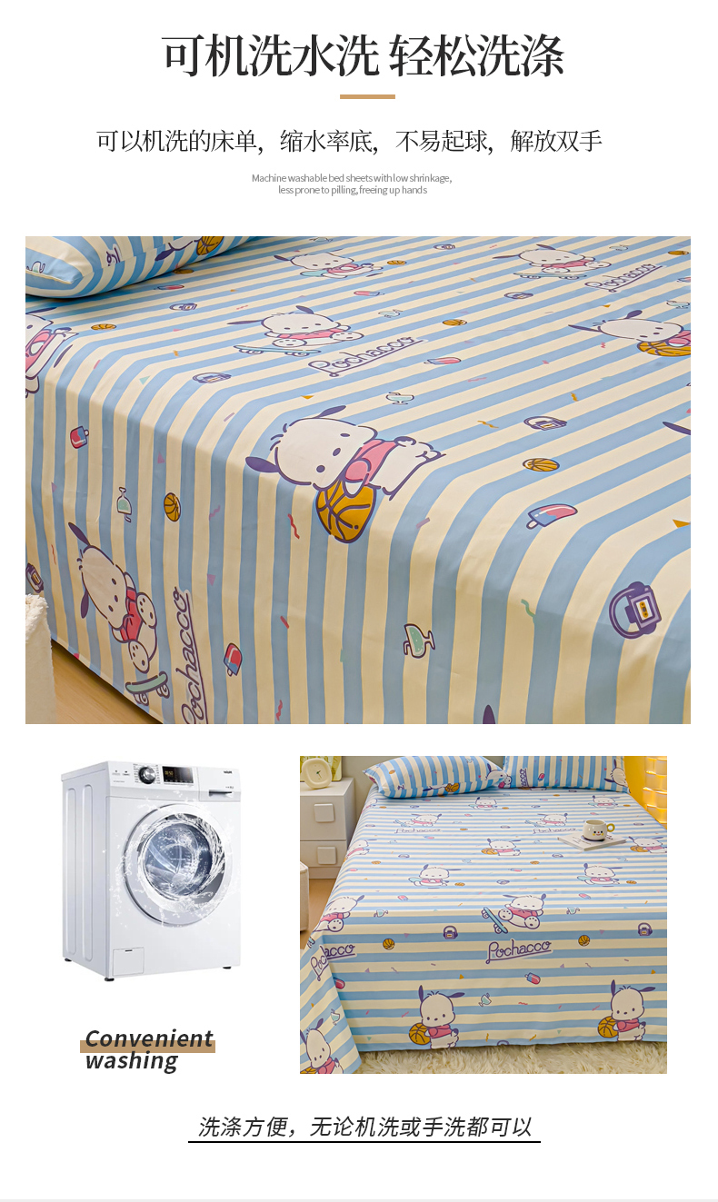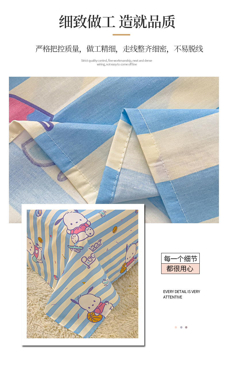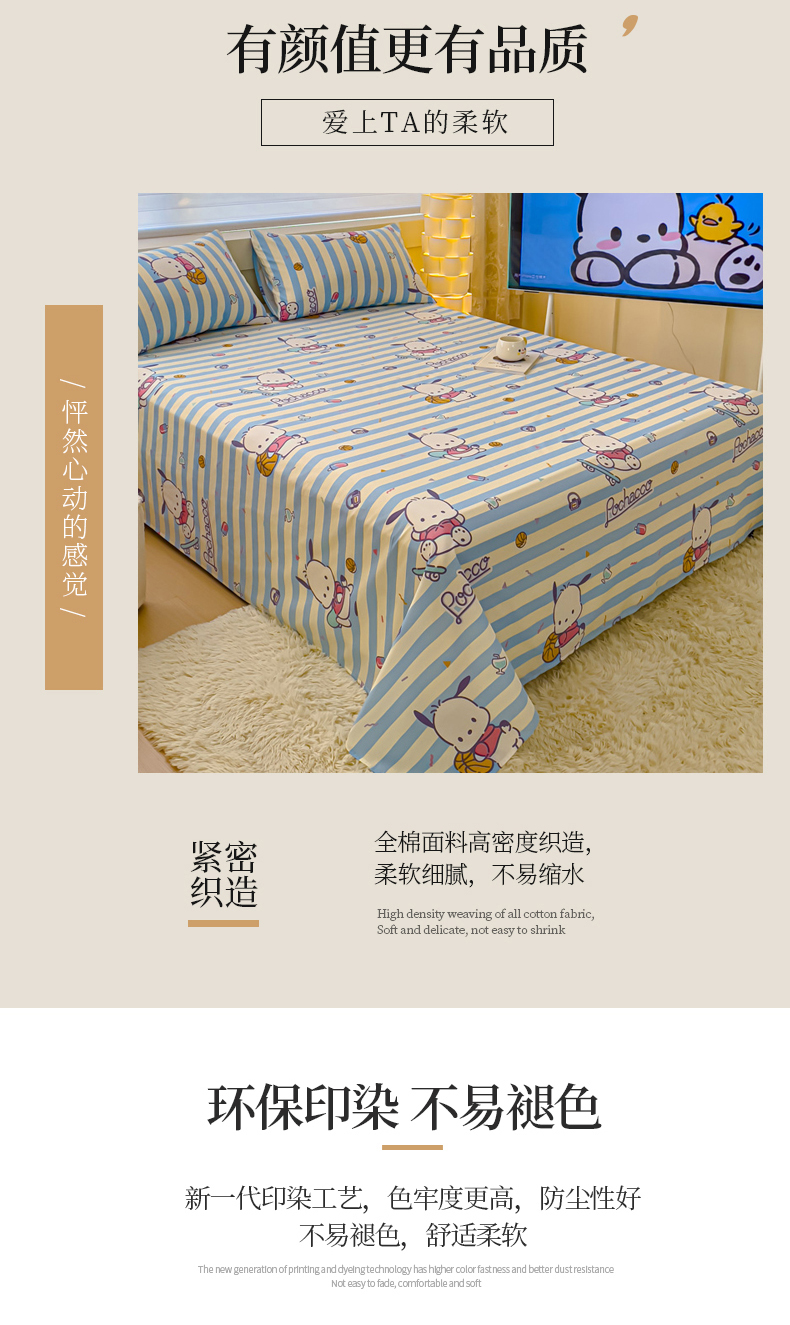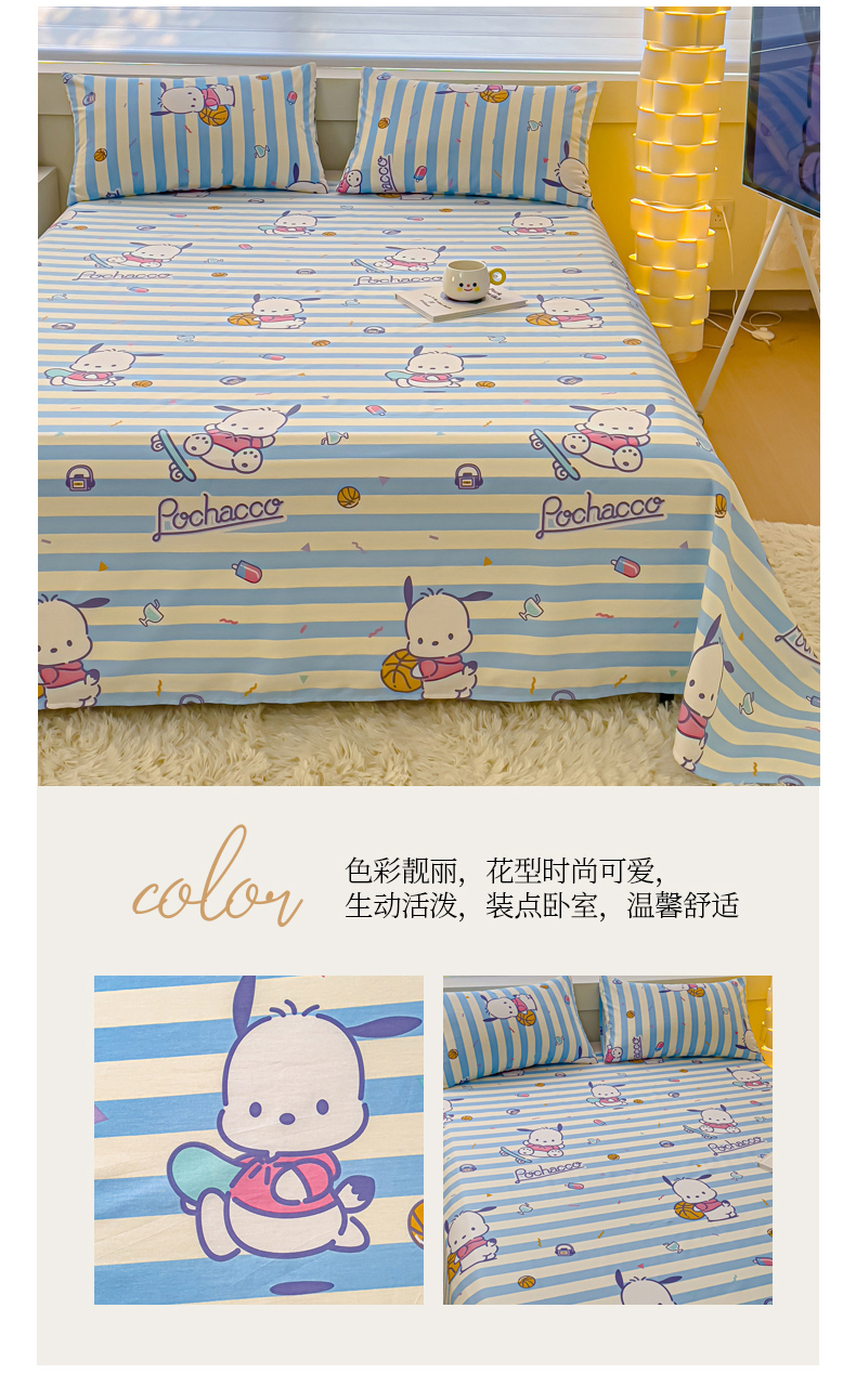 商品名称:金丝鸟家纺 2024新款全棉三丽鸥系列床单 条纹帕恰狗