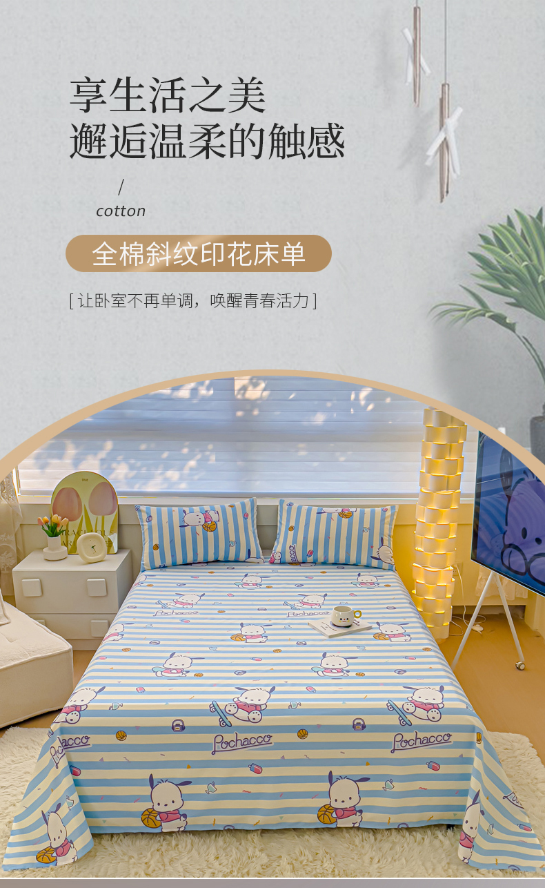 金丝鸟家纺 2024新款全棉三丽鸥系列床单 条纹帕恰狗