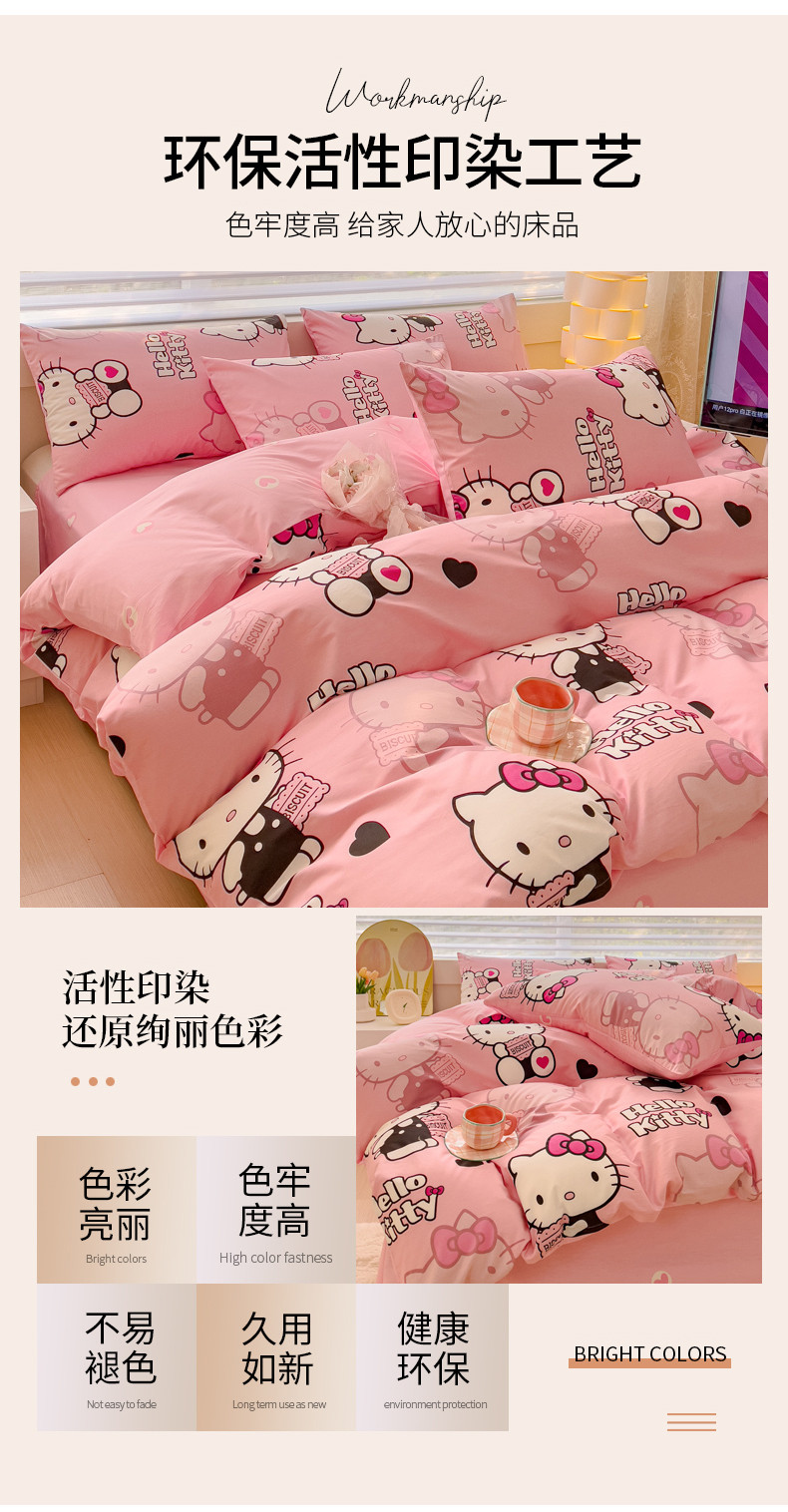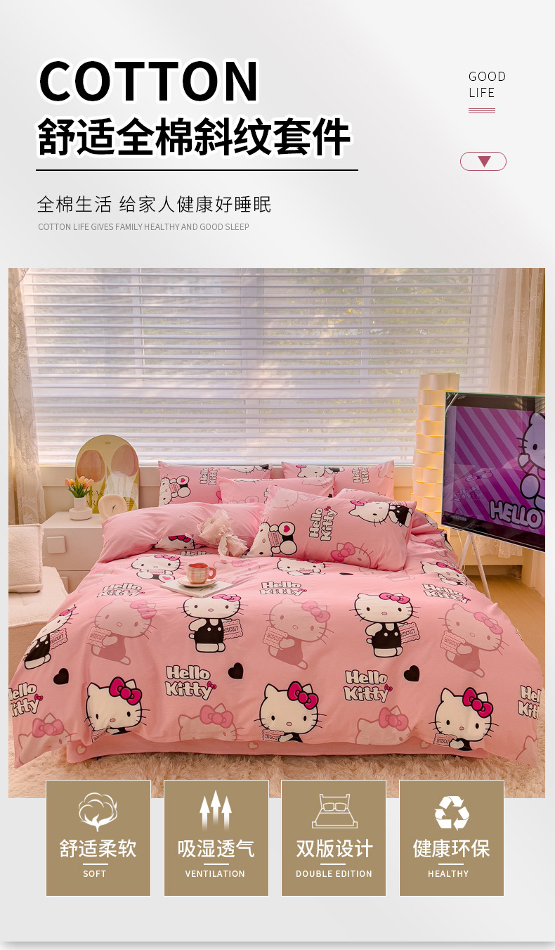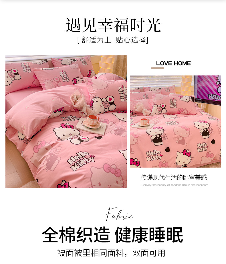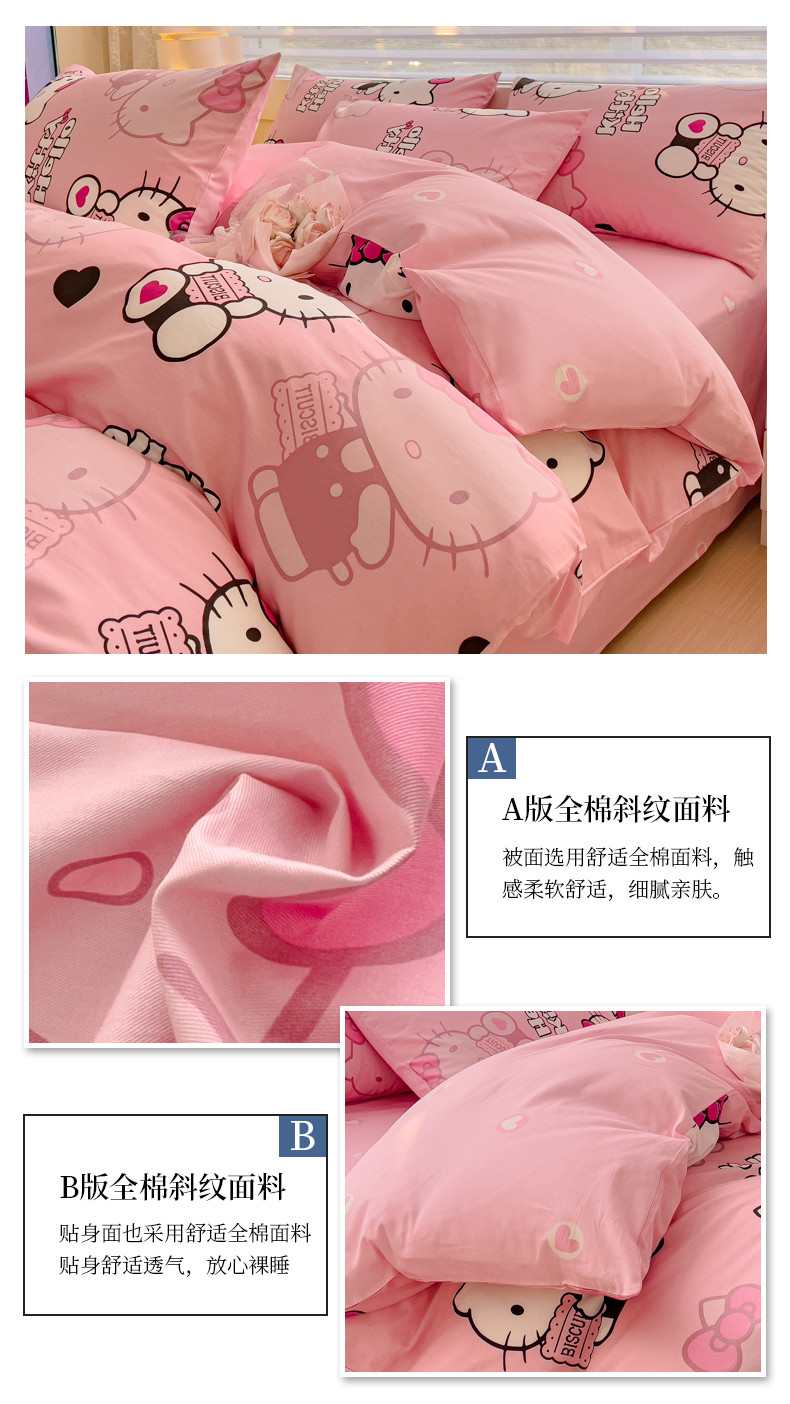 当前位置: 91家纺网 > 商品网购 > 床品套件 > 四件套 > 全棉普通四件套 > 金丝鸟 2024新款全棉可爱卡通四件套 粉色凯蒂小姐