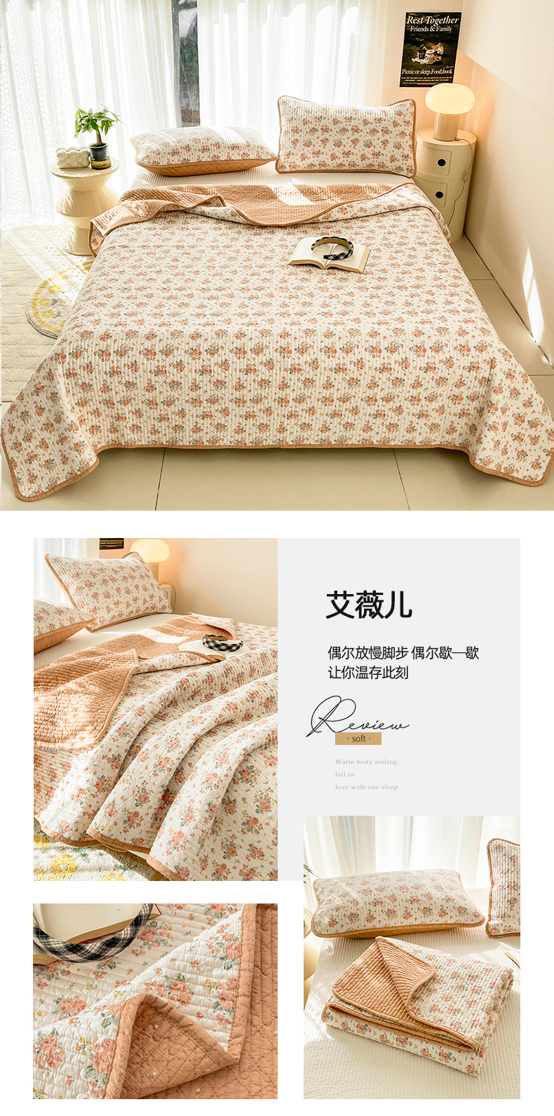 商品名称:茉夕家纺 2024新款纯棉斜纹13372双面纯棉床盖 艾薇儿