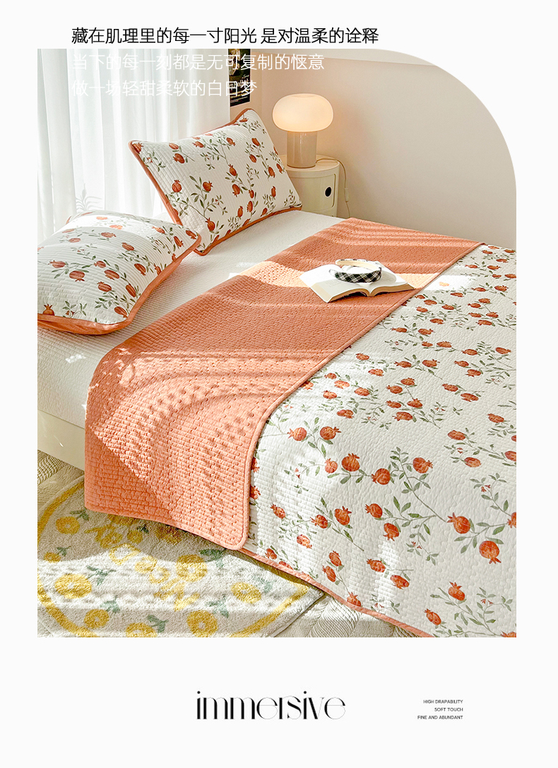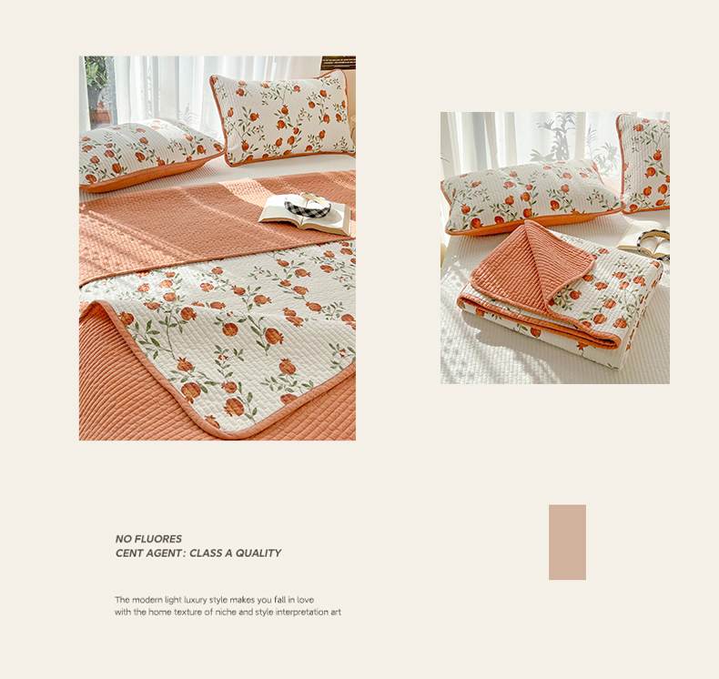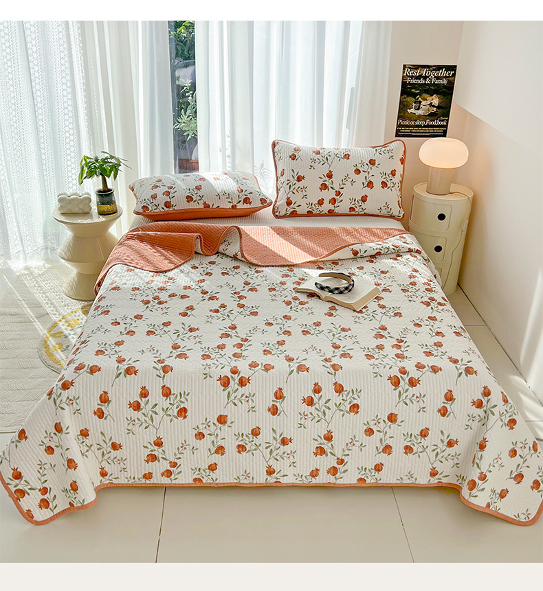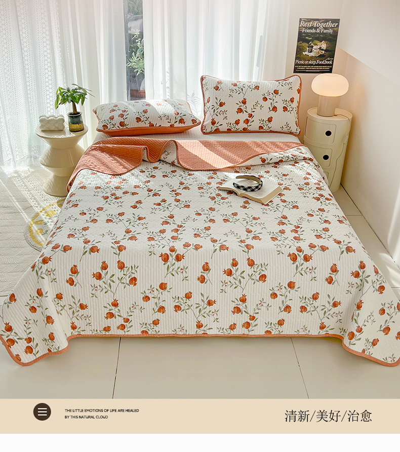 茉夕家纺 2024新款纯棉斜纹13372双面纯棉床盖 石榴红了