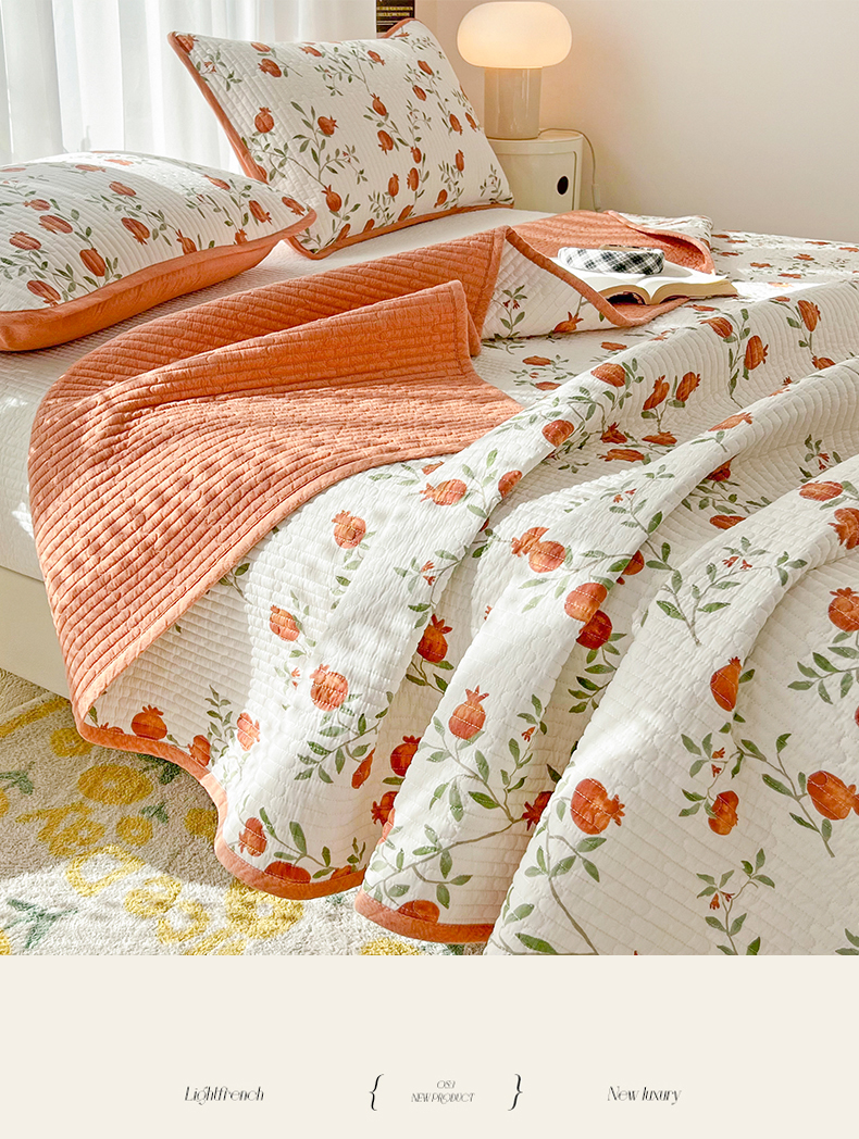 商品名称:茉夕家纺 2024新款纯棉斜纹13372双面纯棉床盖 石榴红了
