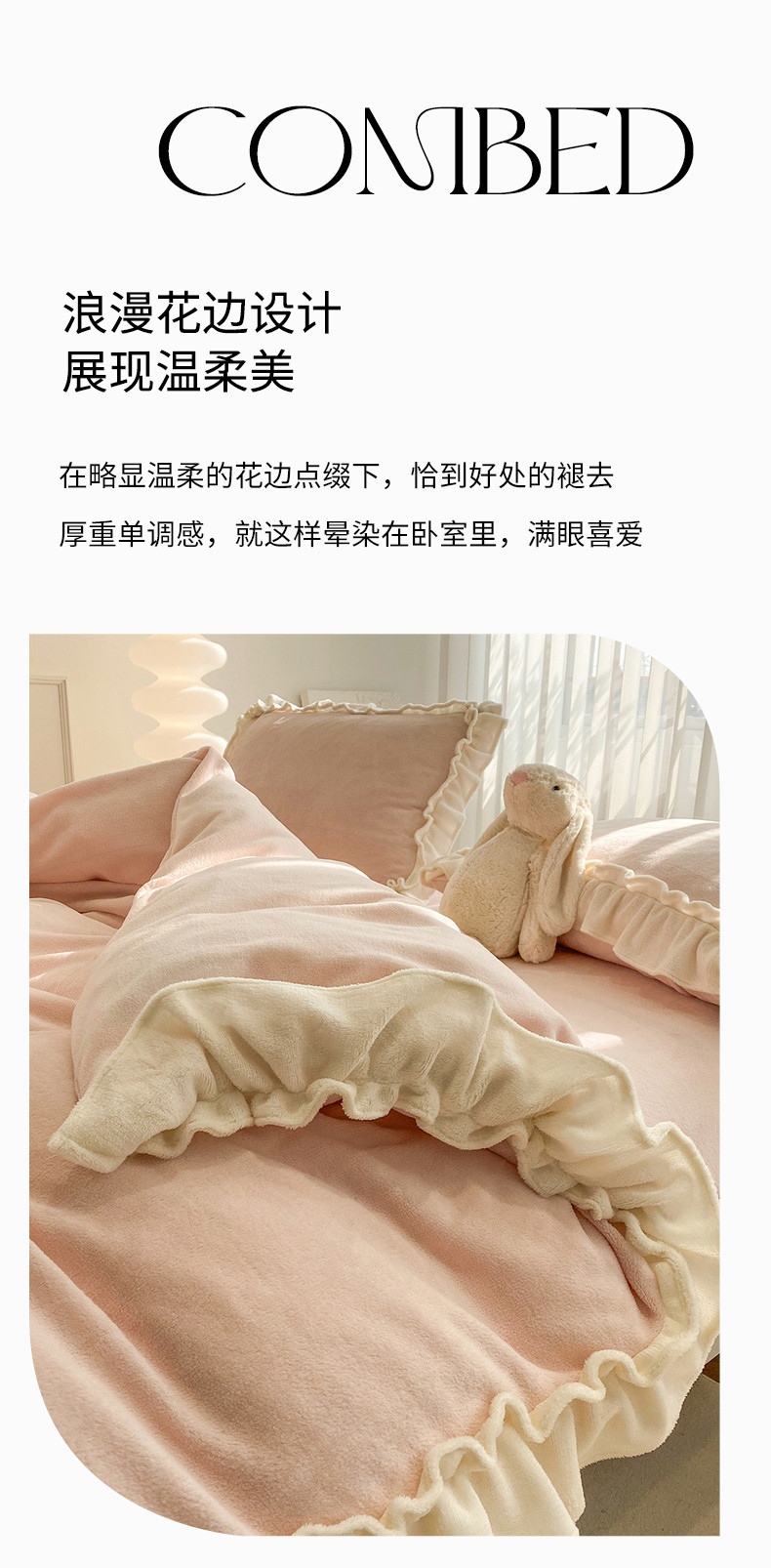 商品名称:小主驾到 2024新款马卡龙系列牛奶绒法式花边款四件套 伏见桃山