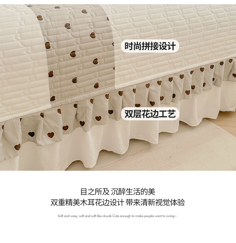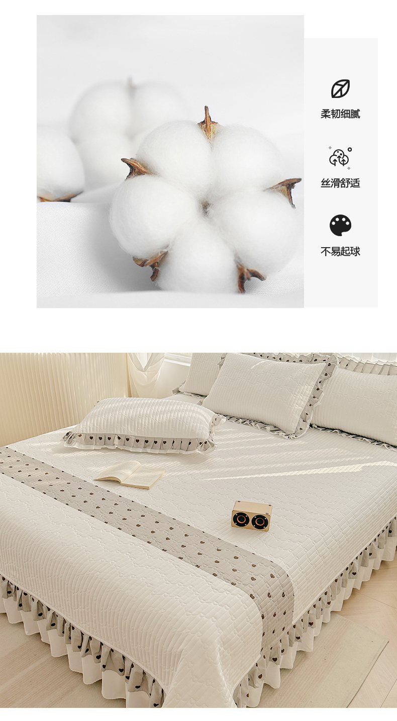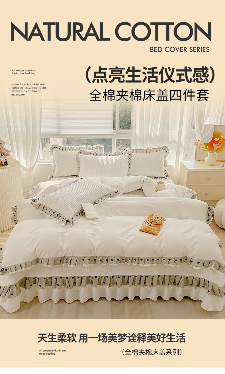 当前位置: 91家纺网 > 商品网购 > 床品套件 > 四件套 > 全棉普通四件套 > 宜凡家纺 2024新品全棉夹棉双层花边床盖四件套-心情 心情 米白