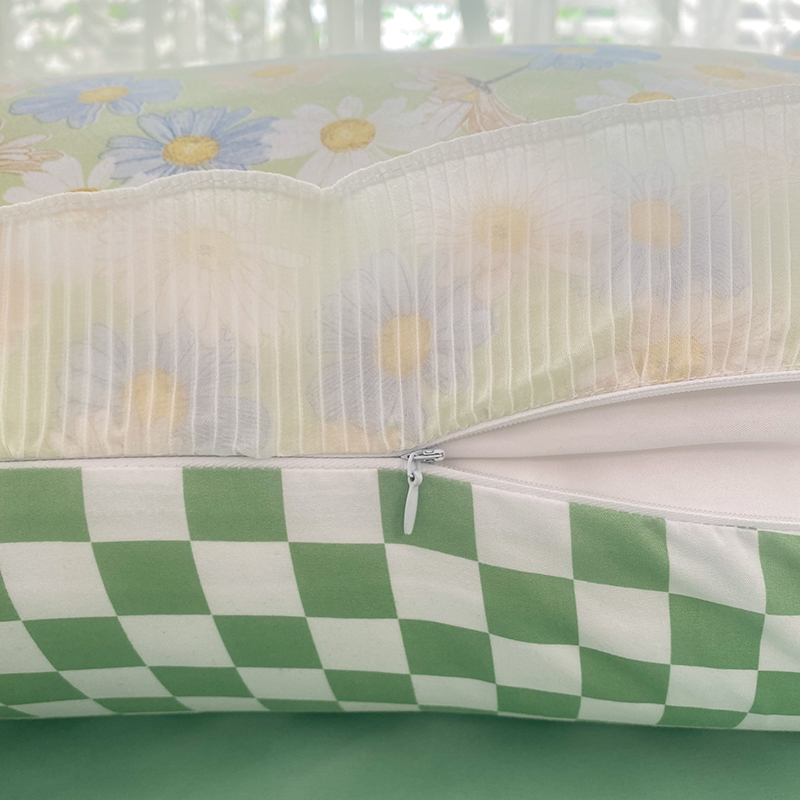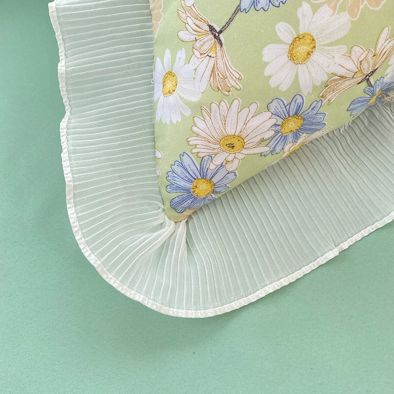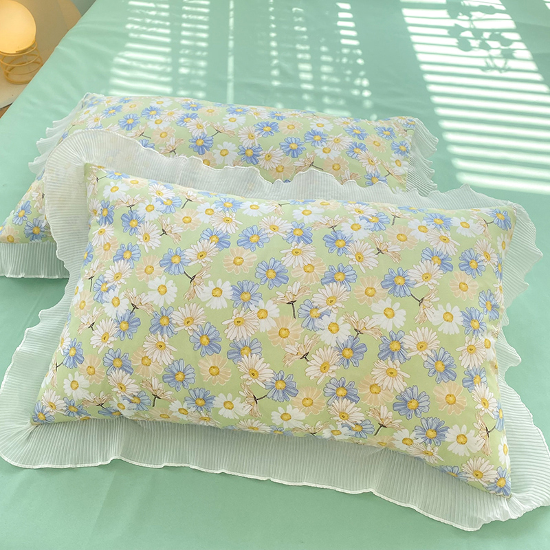 商品名称:大米家居 2024新款小雏菊印花海岛棉水洗棉磨毛花边枕套 小雏菊-竹
