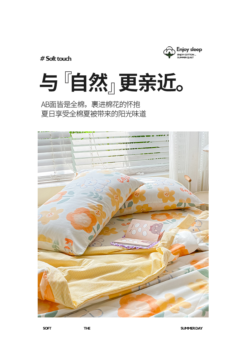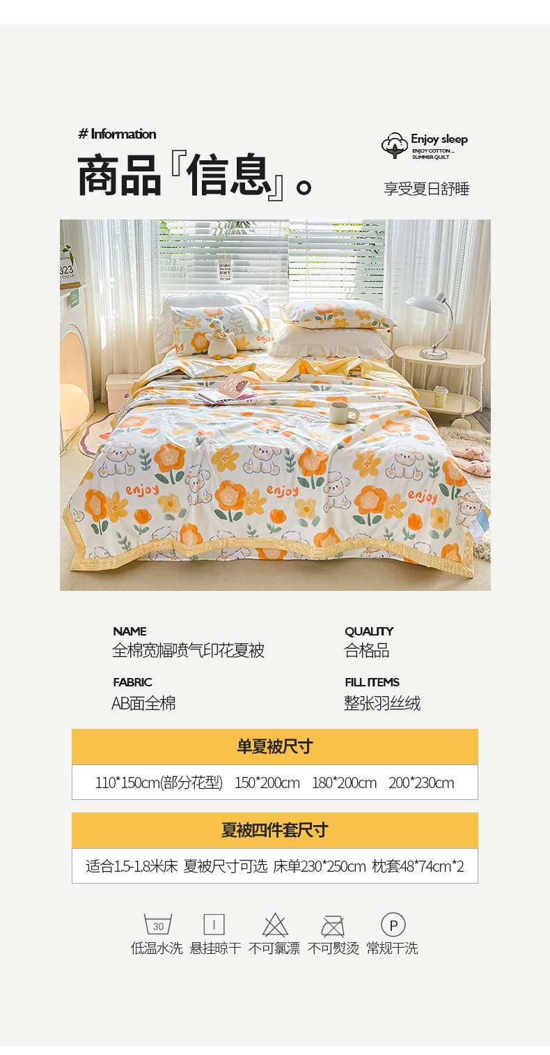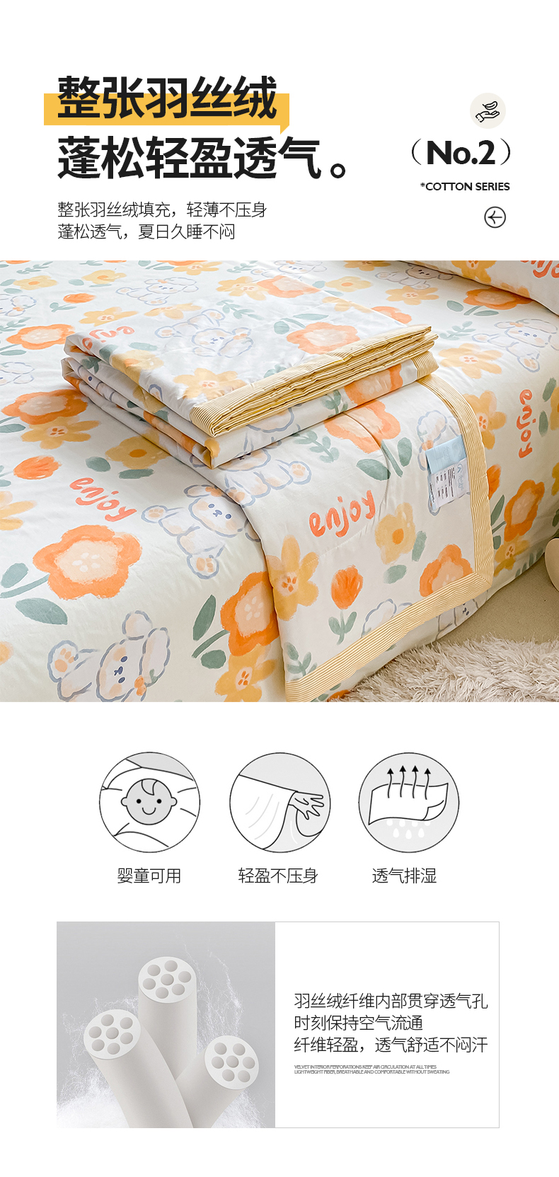 • 91家纺网 家纺一手货源 找家纺 莱宁被业 2024新款喷气全棉正反纯棉印花夏凉被全棉夏被四件套 嘟嘟花园