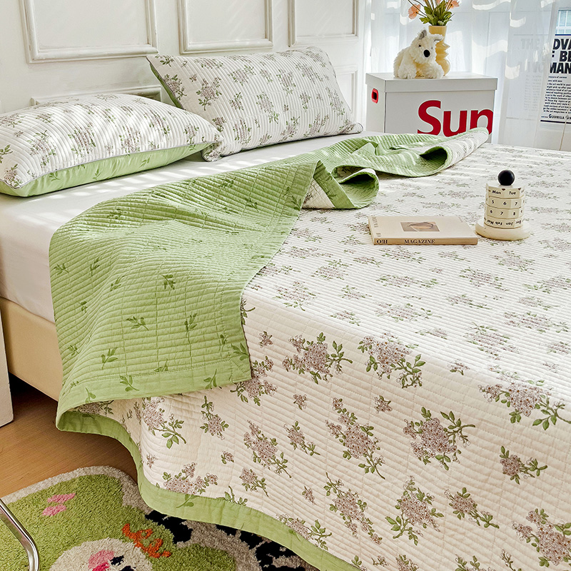 商品名称:沐纯家居 2024新款40S13372双面纯棉床盖三件套 铃兰花