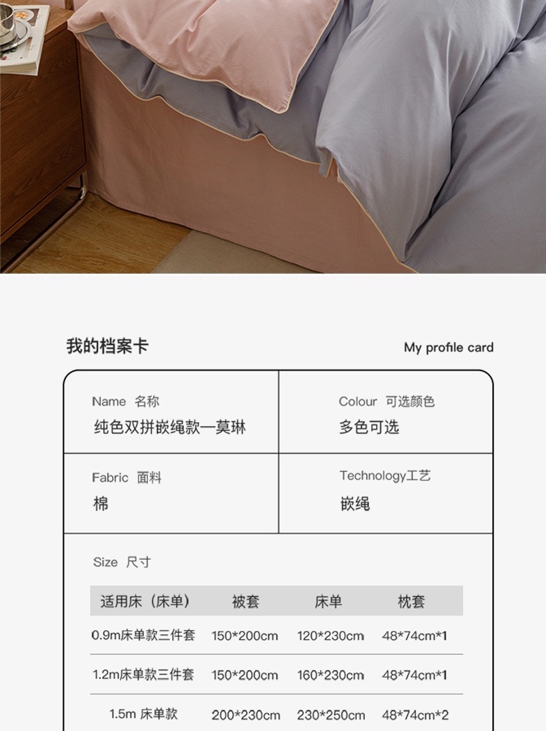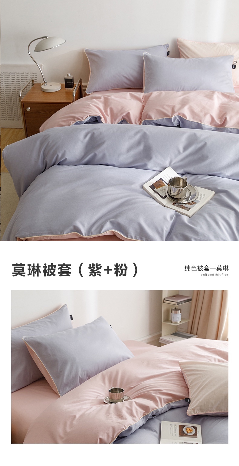 商品名称:卡姿家纺 2024春夏纯色双拼嵌绳款单被套—莫琳 莫琳 被套紫粉