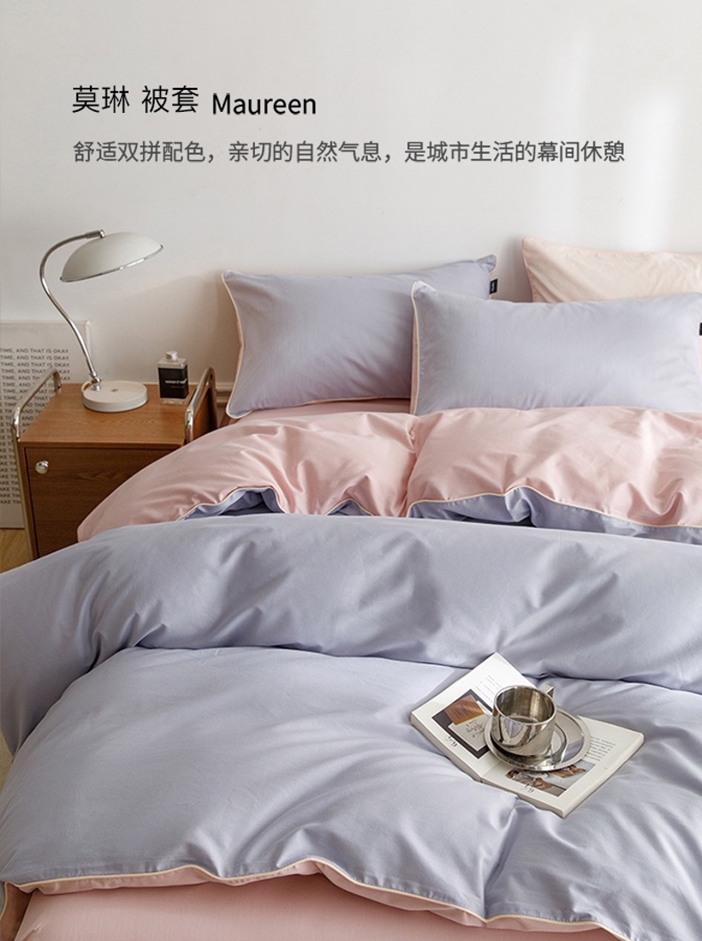 卡姿家纺 2024春夏纯色双拼嵌绳款单被套—莫琳 莫琳 被套紫粉