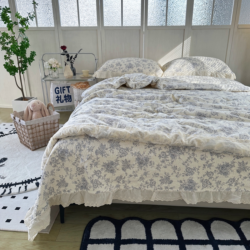 商品名称:佰织鑫家居(会员-5元) 2024新款全棉法式床盖款春秋被四件套 赫本