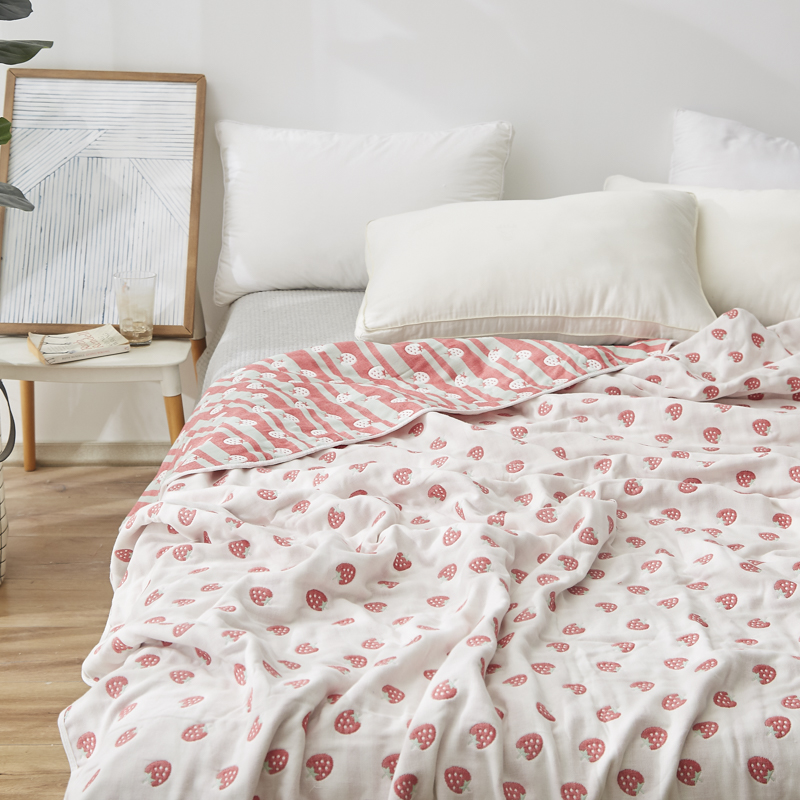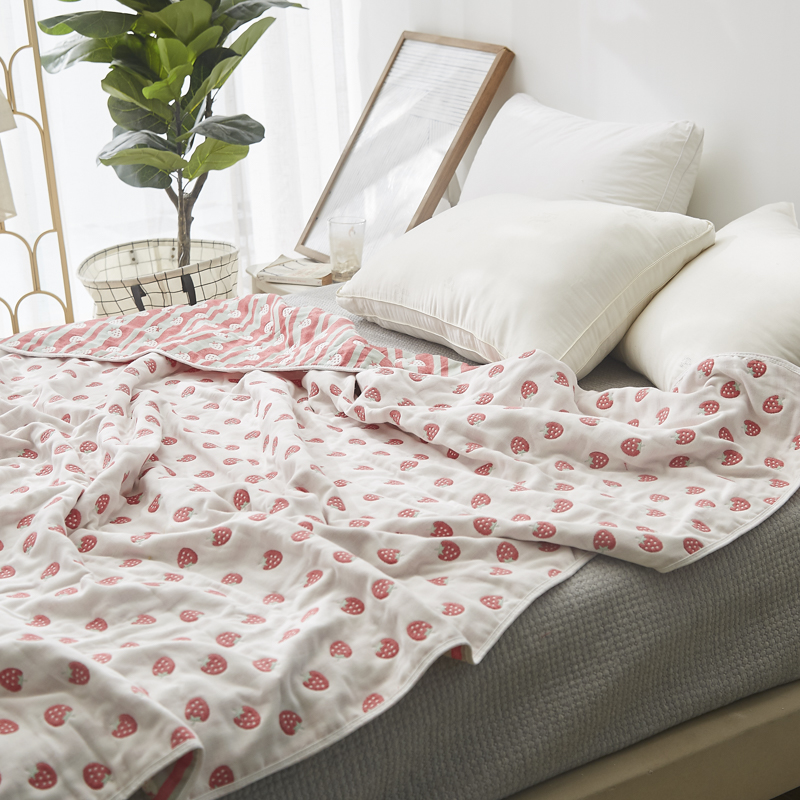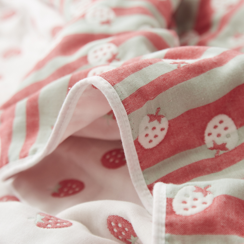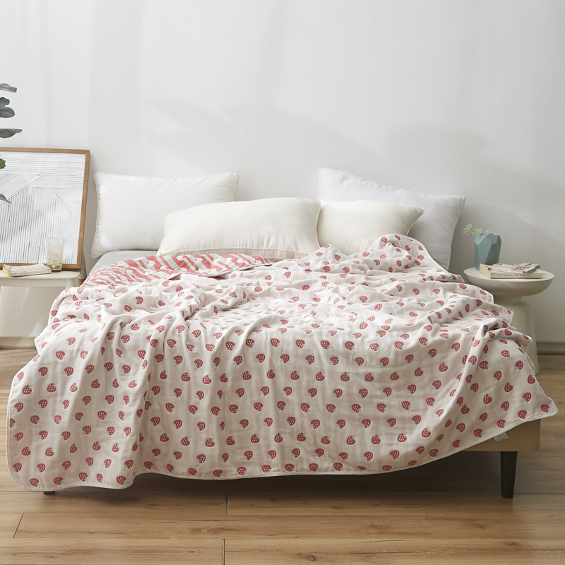 爱港家纺 2024新款全棉六层毛巾被夏凉被纱布毯 小草莓