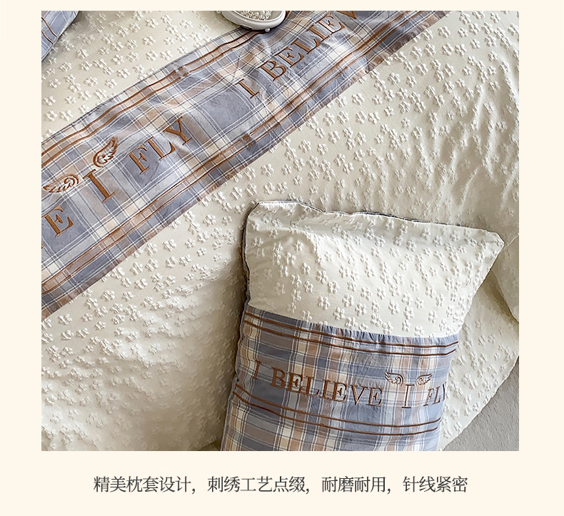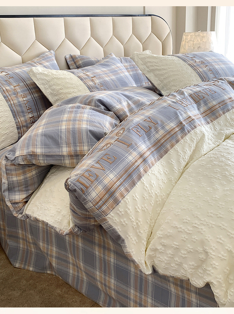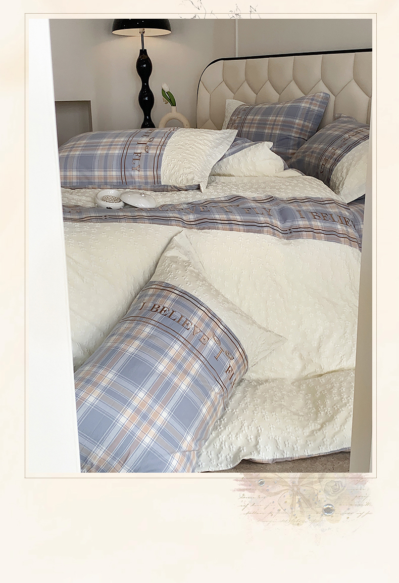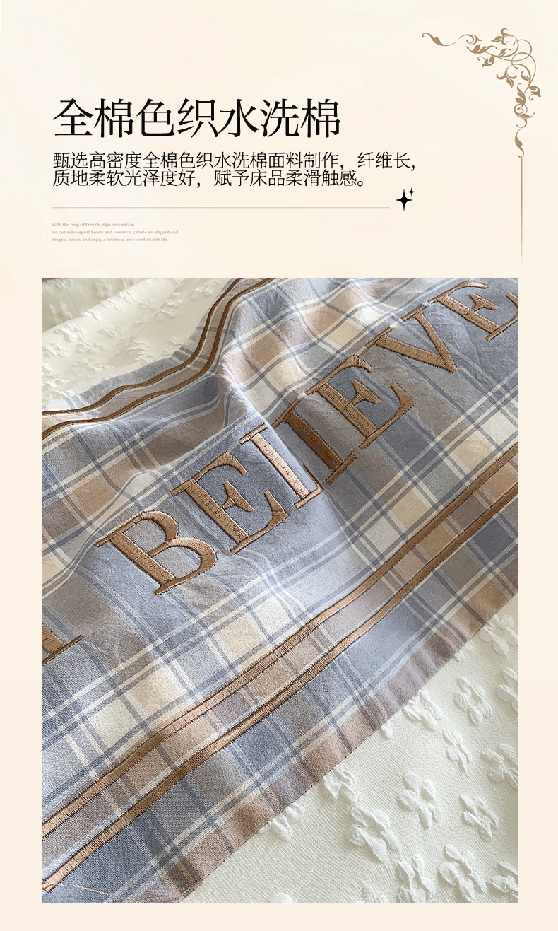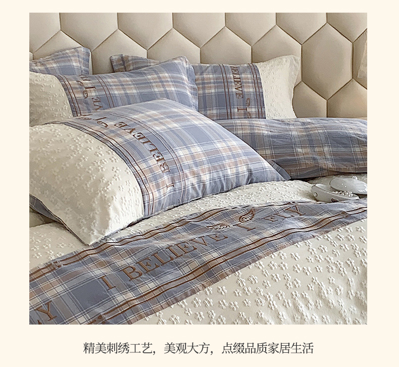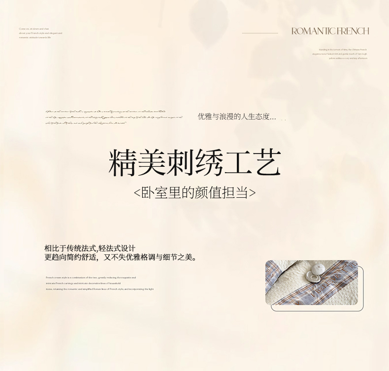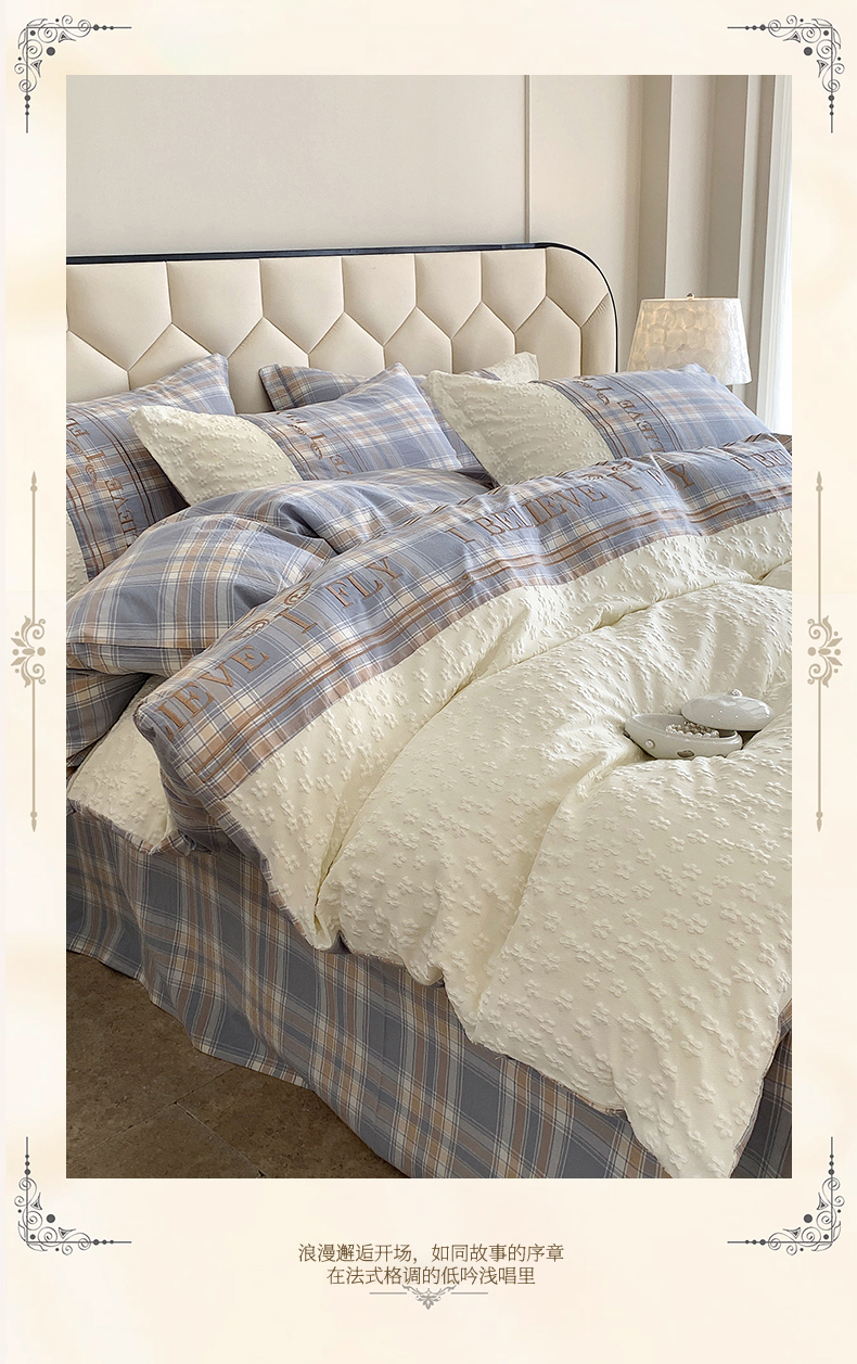 商品名称:换种生活 2024新款全棉活性印染刺绣四件套-法式小香风系列 艾莎