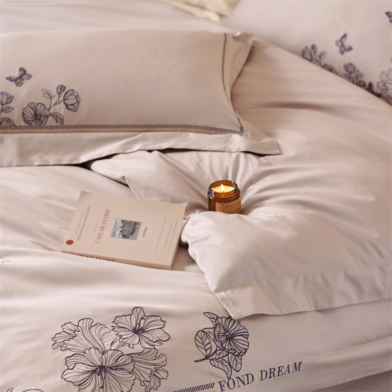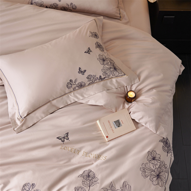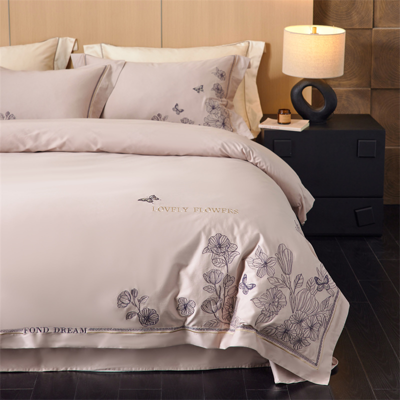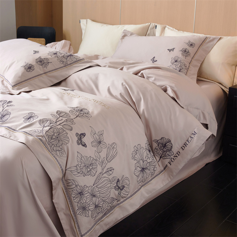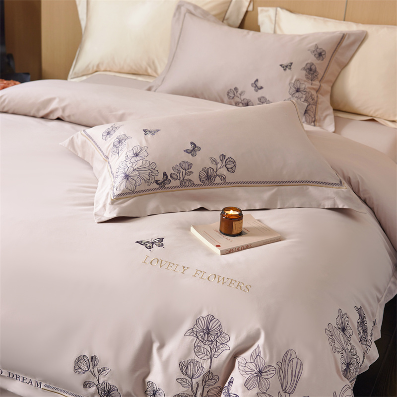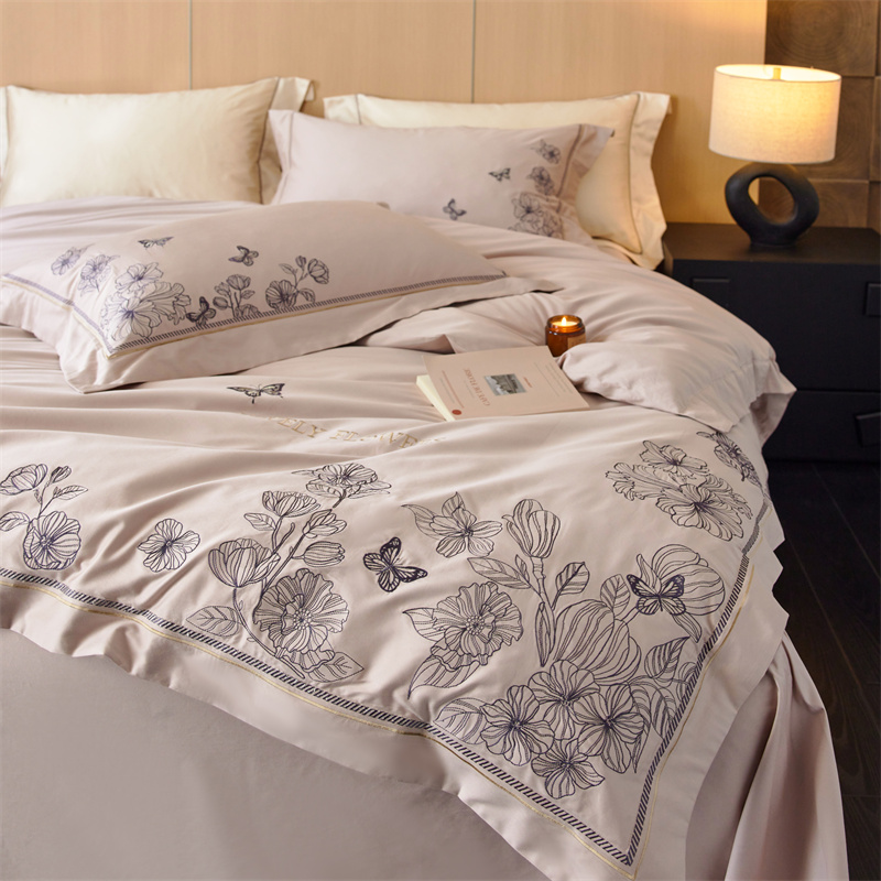 (总)云胡 2024新款50支长绒棉宽边工艺刺绣四件套-无人区玫瑰