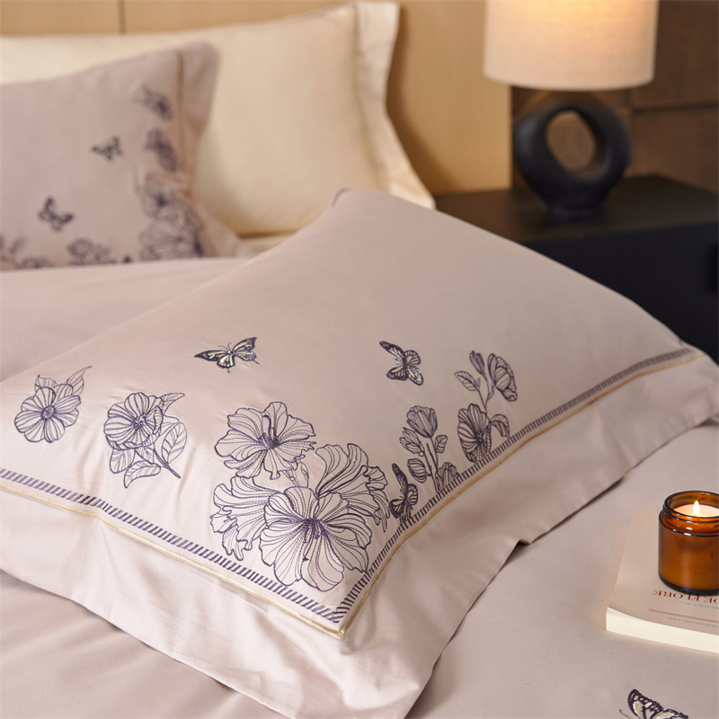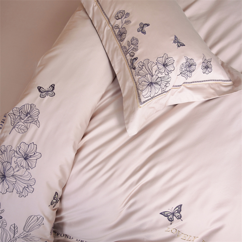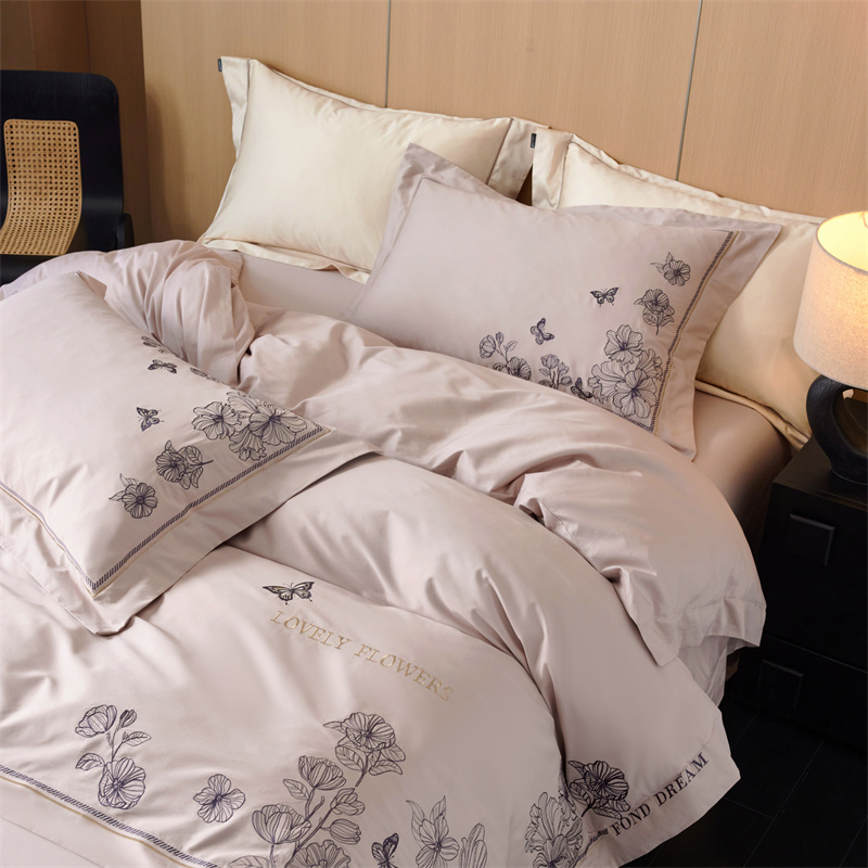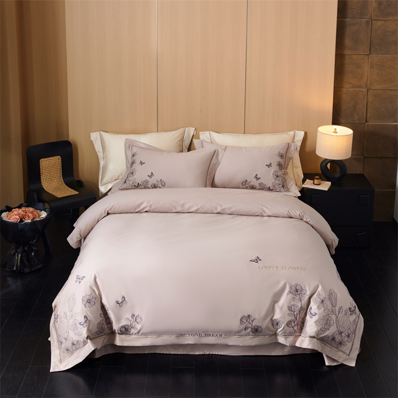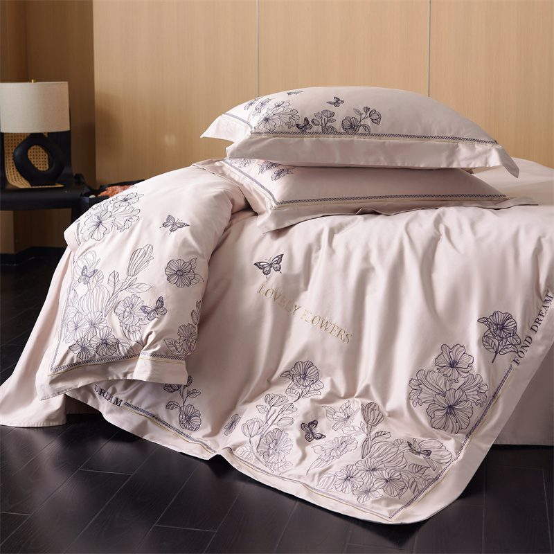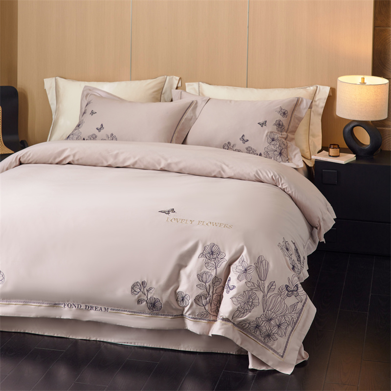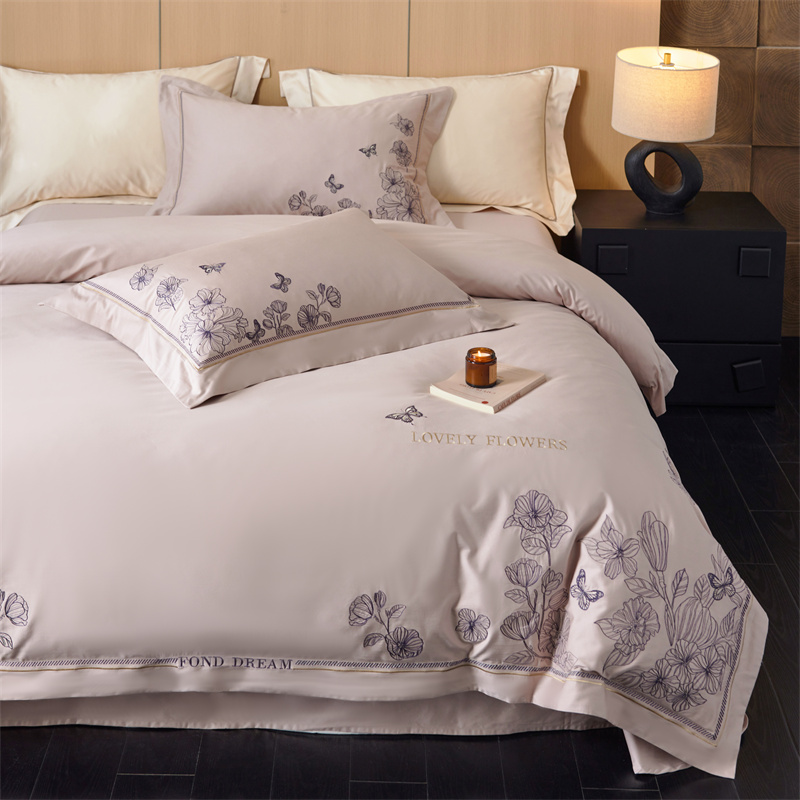 (总)云胡 2024新款50支长绒棉宽边工艺刺绣四件套-无人区玫瑰