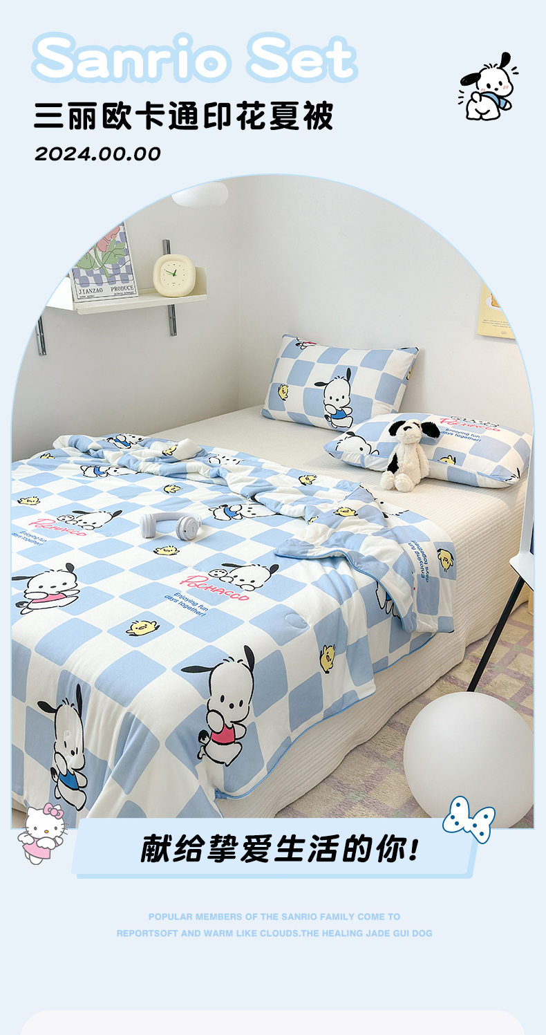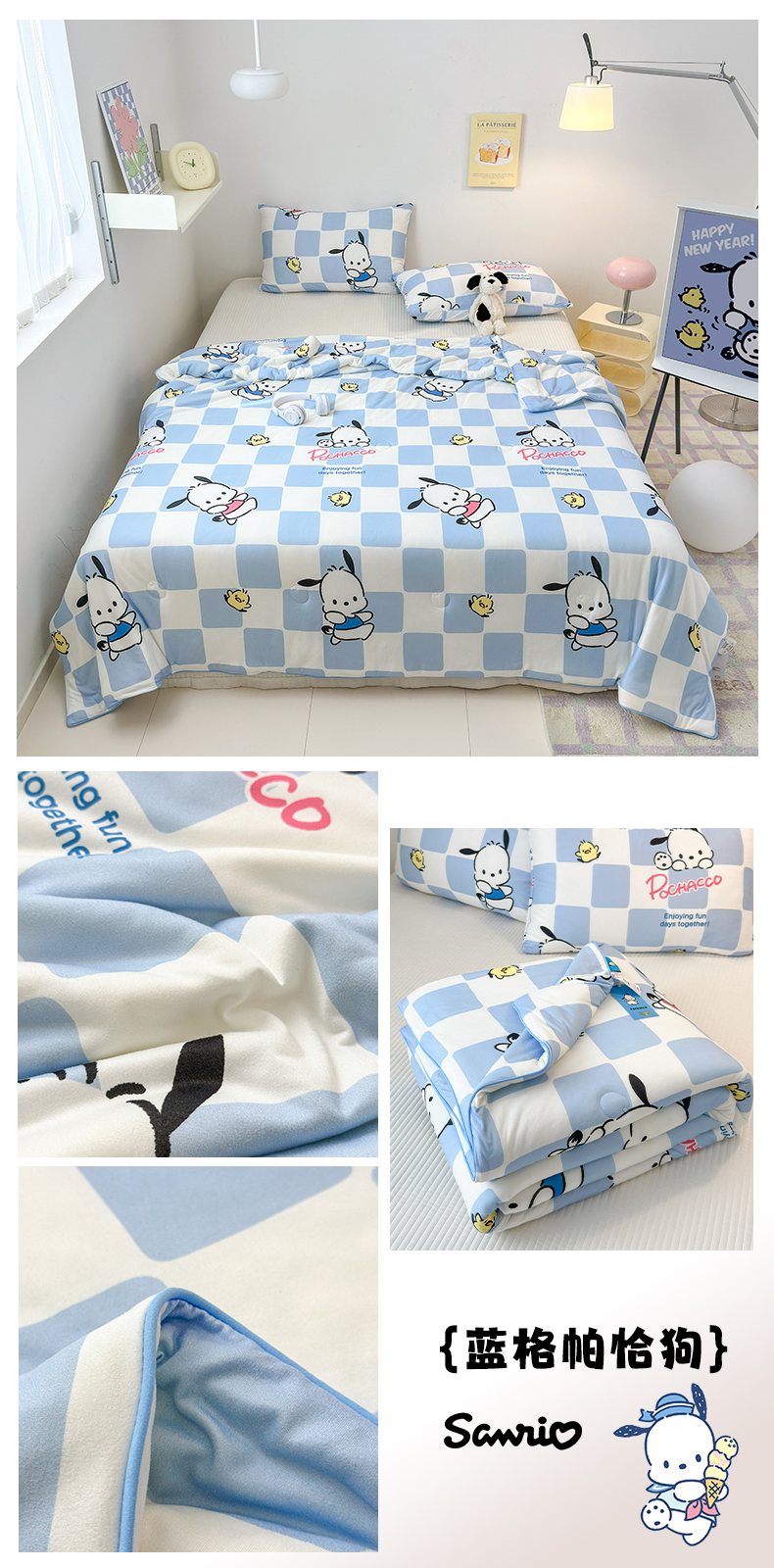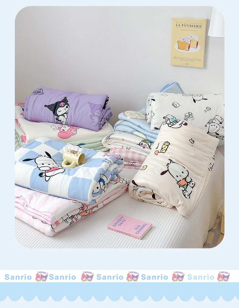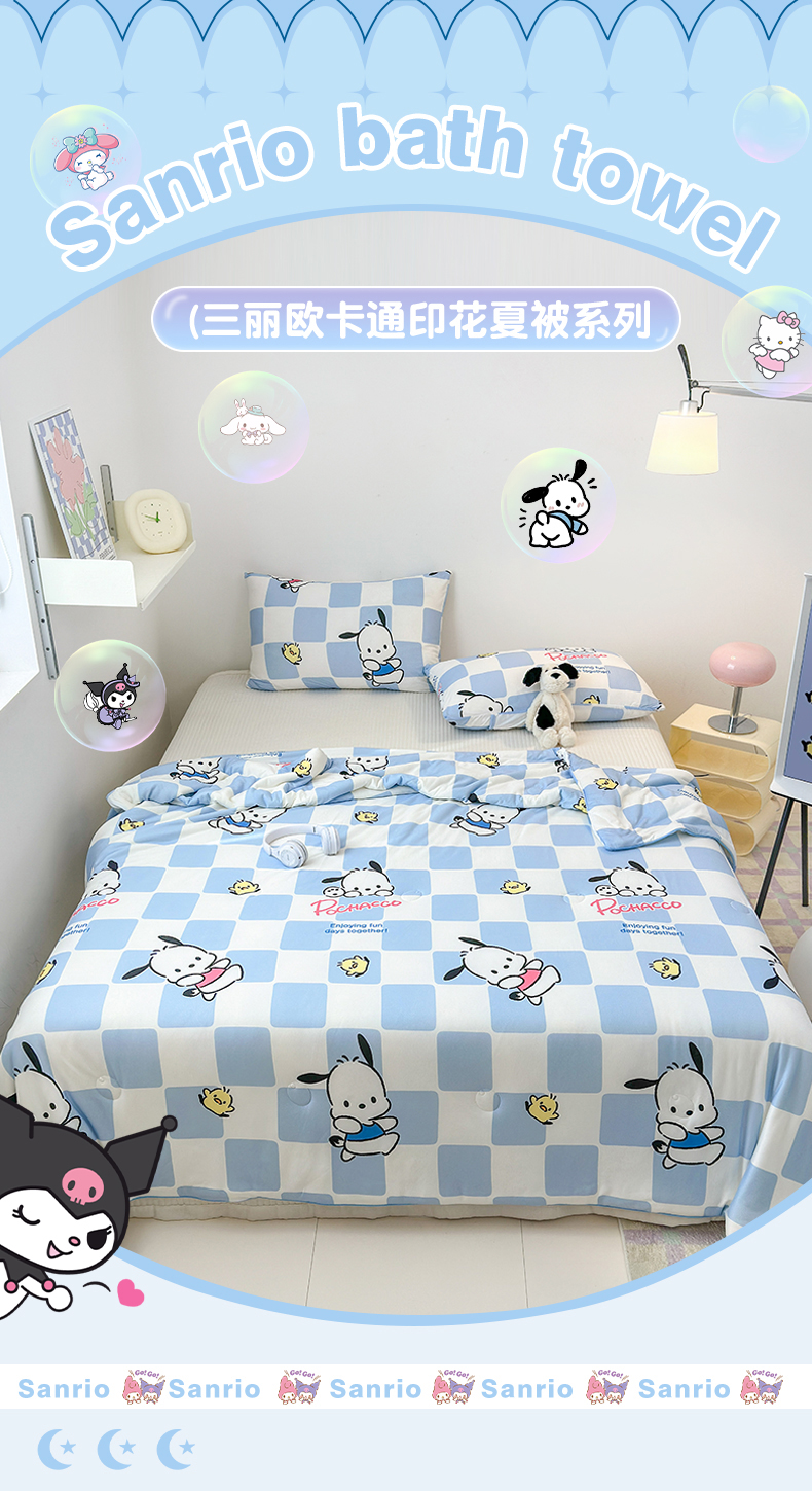 (总)木堇家居 2025春夏三丽鸥云柔棉毛巾绣夏被四件套,毛巾绣-粉色美乐蒂,毛巾绣-粉色kt猫,毛巾绣-蓝色帕恰狗,毛巾绣-小马大耳狗,毛巾绣-紫色库洛米