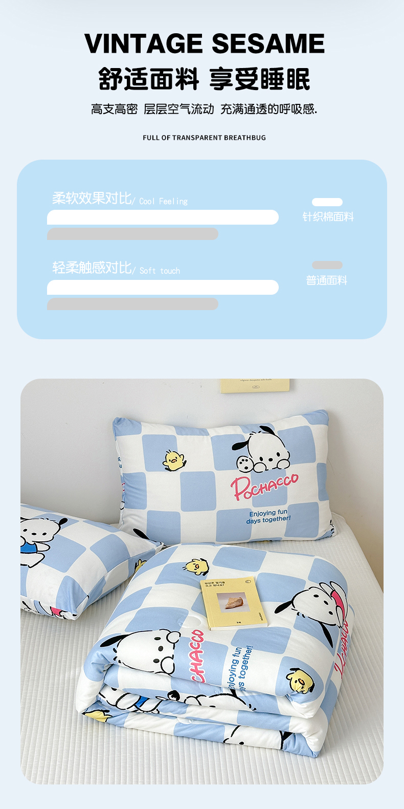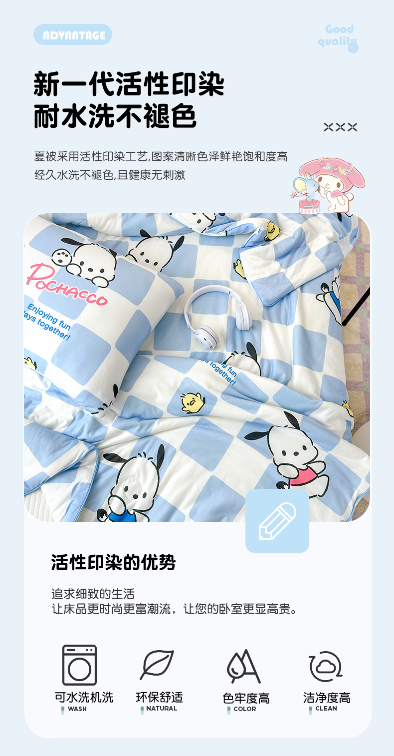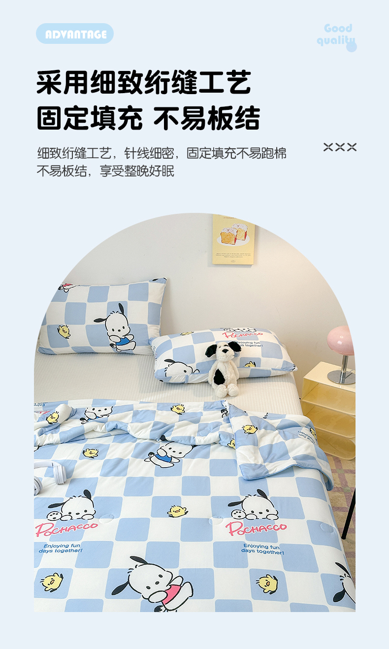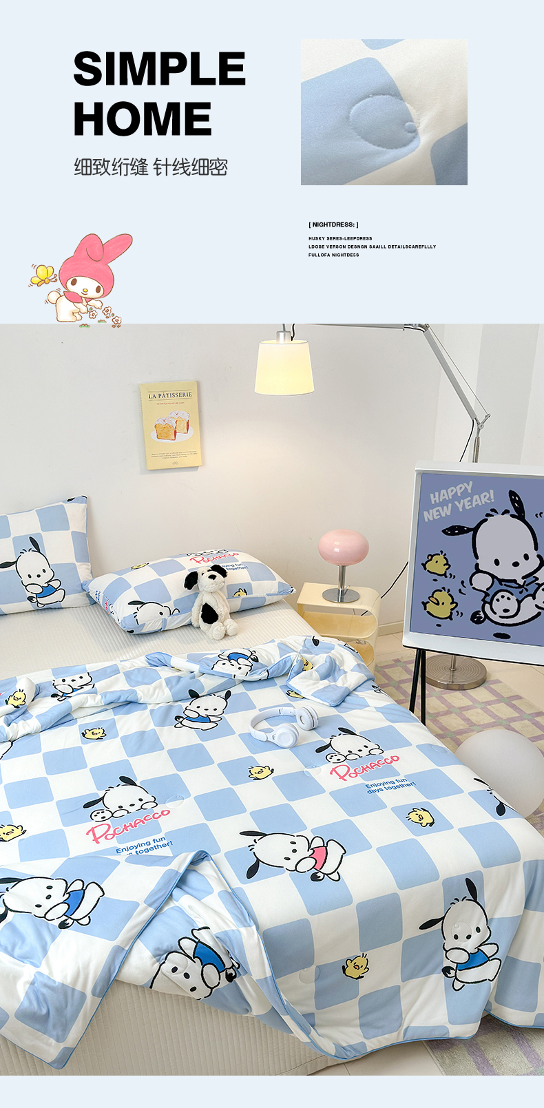 (总)木堇家居 2025春夏三丽鸥云柔棉毛巾绣夏被四件套,毛巾绣-粉色美乐蒂,毛巾绣-粉色kt猫,毛巾绣-蓝色帕恰狗,毛巾绣-小马大耳狗,毛巾绣-紫色库洛米