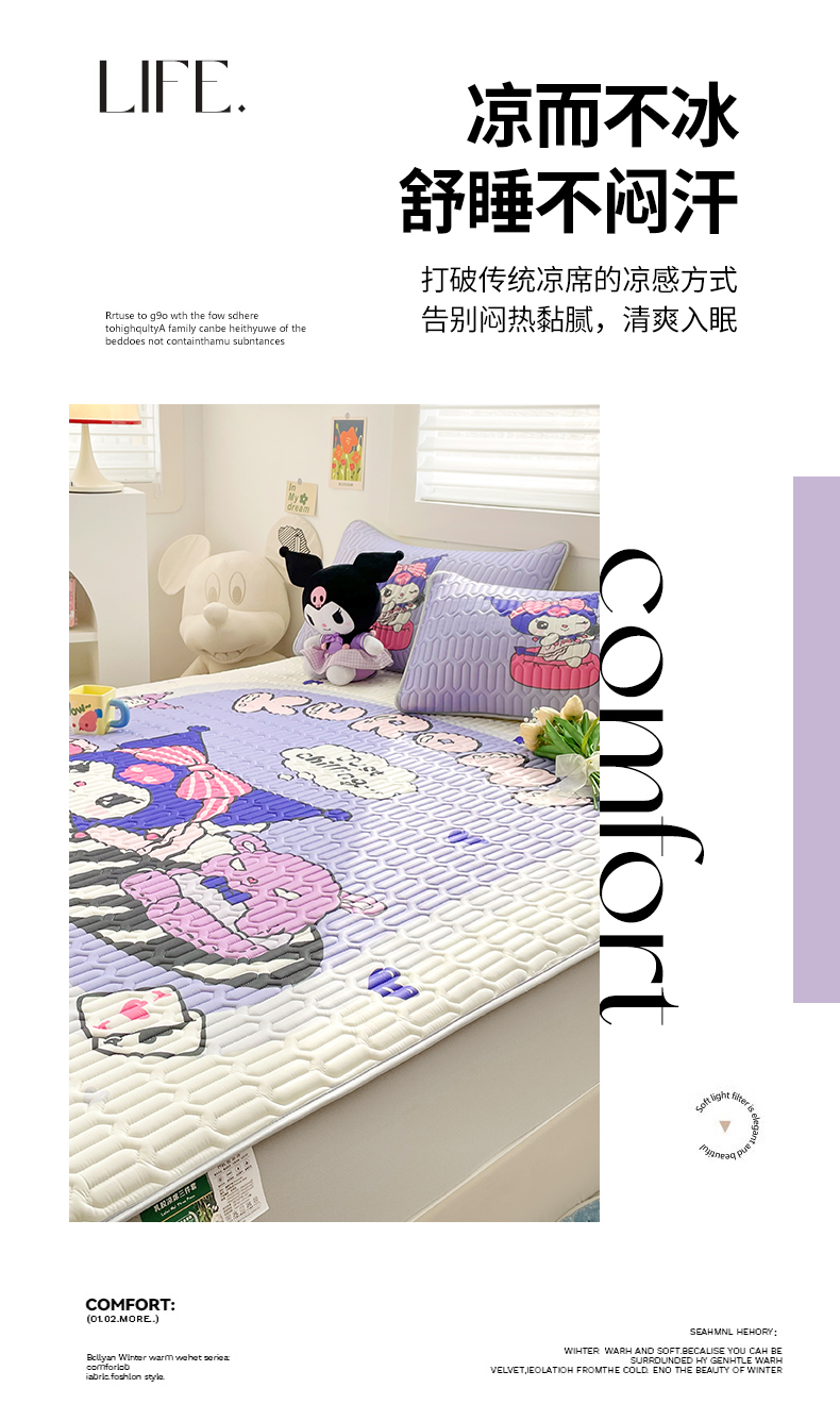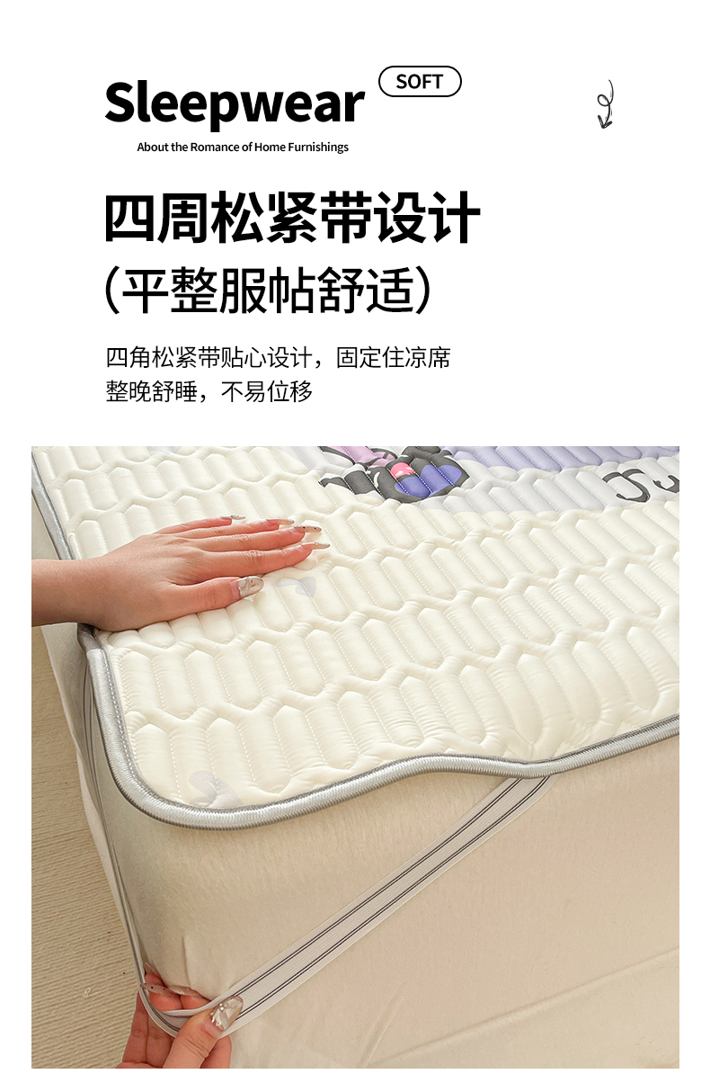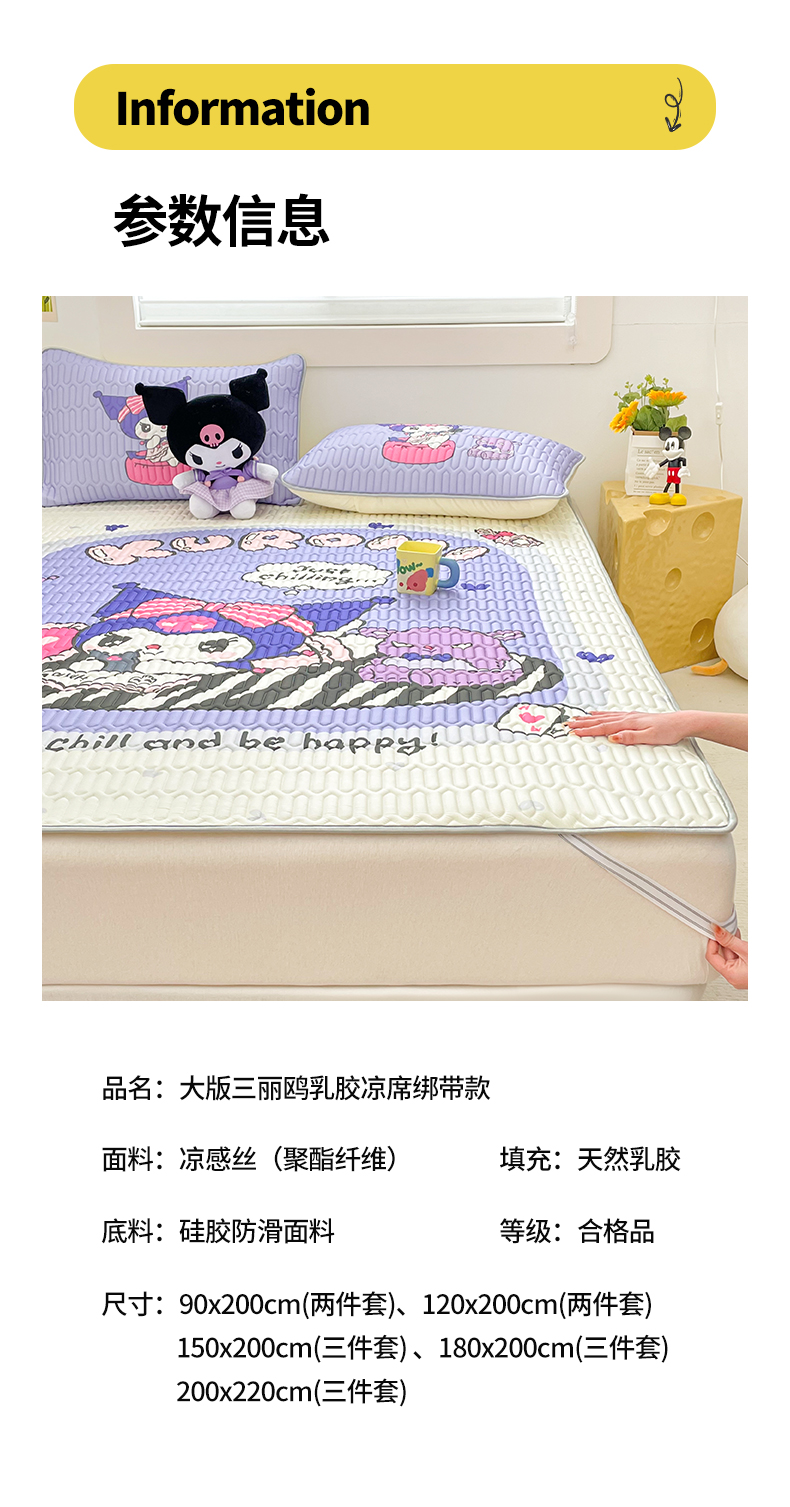 商品名称:(总)米帛家纺 2024新款大版三丽鸥A类凉感丝乳胶凉席-绑带款