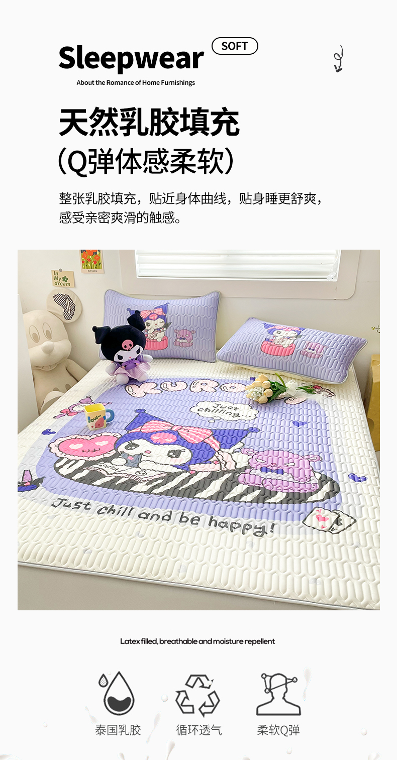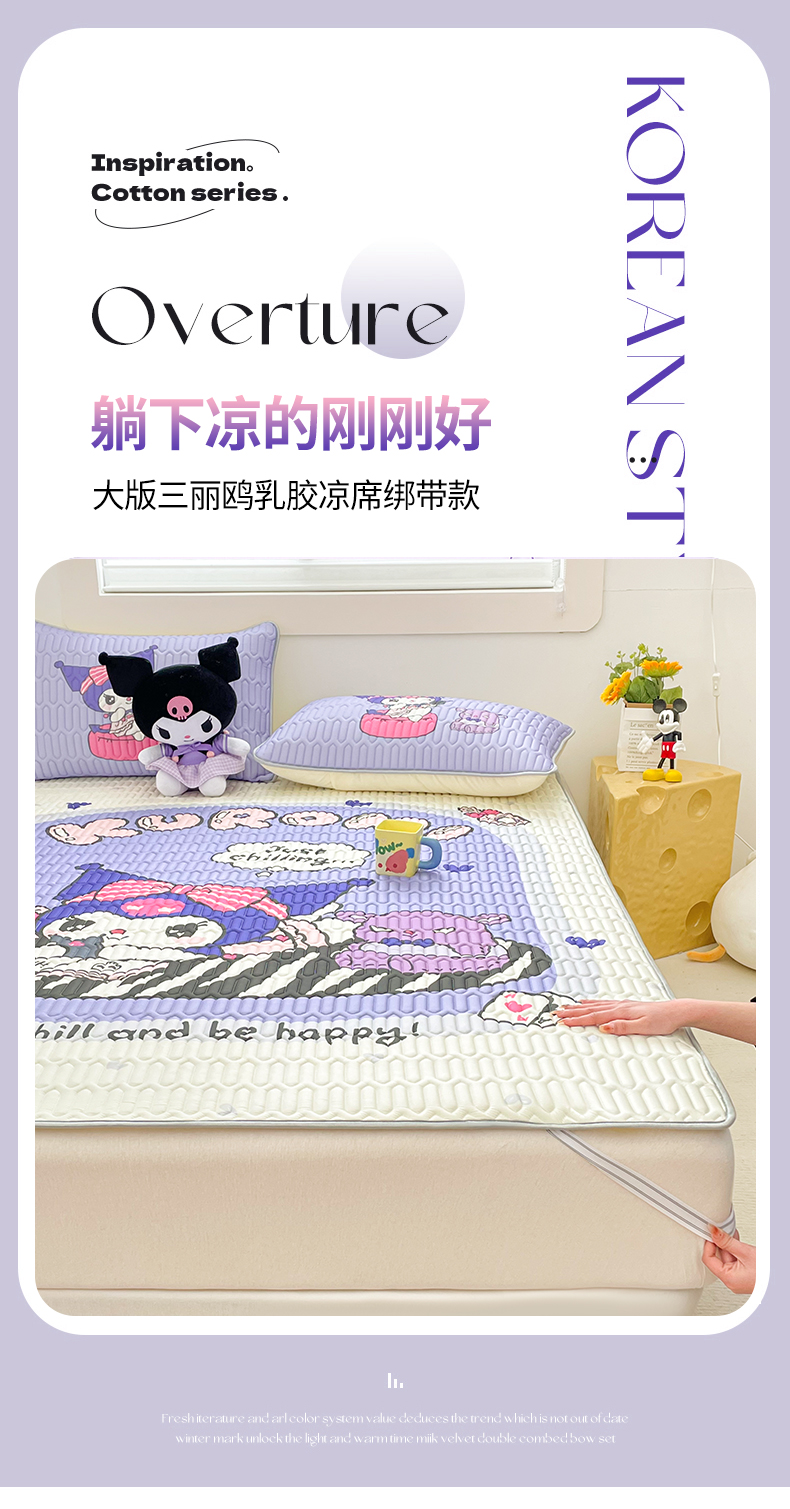 (总)米帛家纺 2024新款大版三丽鸥A类凉感丝乳胶凉席-绑带款
