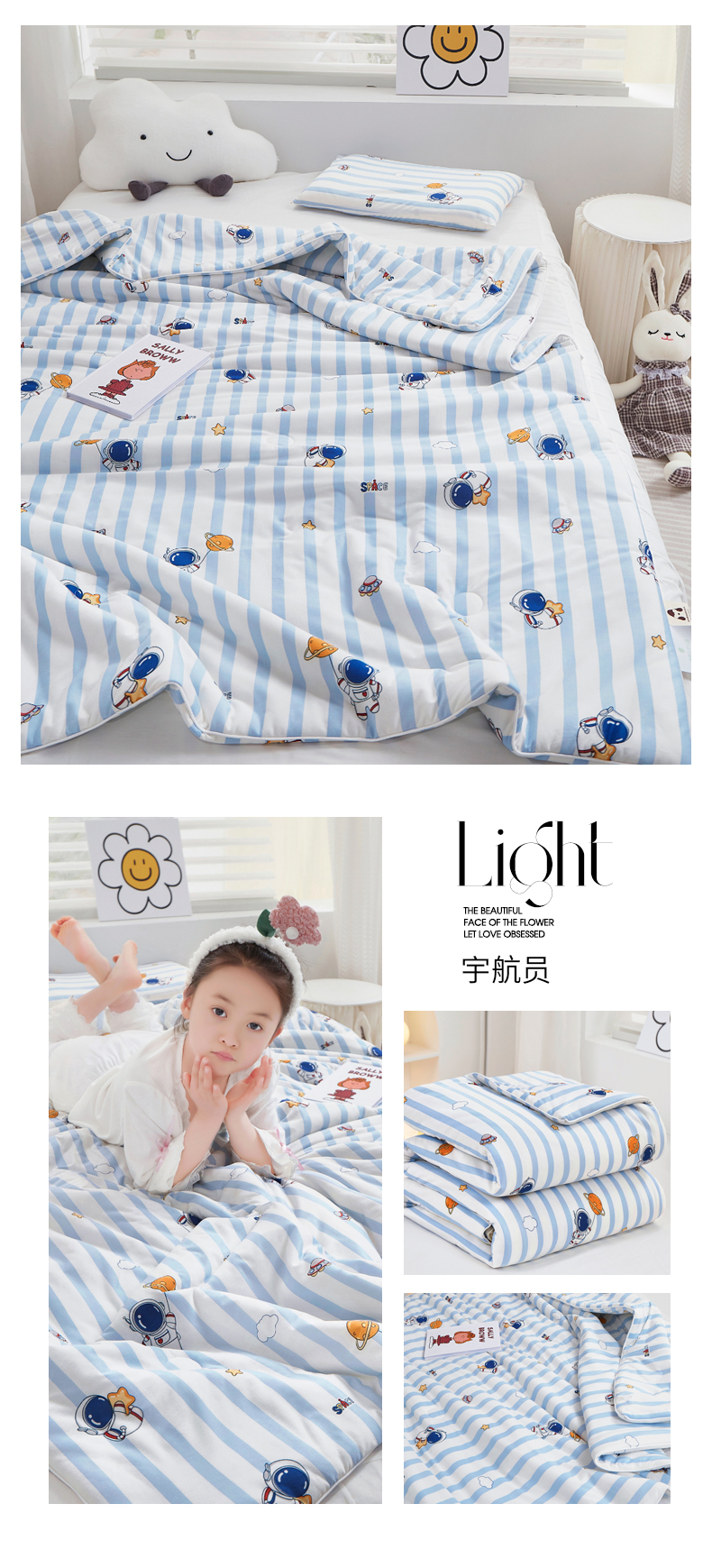 商品名称:丝涟家居 2025新款A类双面针织棉卡通小清新滚绳工艺夏被 宇航员