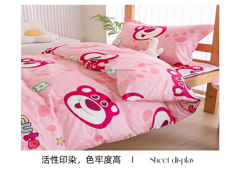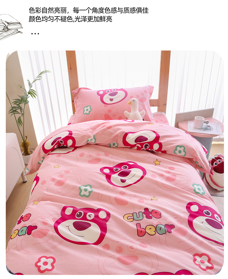 当前位置: 91家纺网 > 商品网购 > 床品套件 > 三件套 > 凯森2024新款斜纹加厚全棉三件套寝室学生床笠上下铺床三件套 草莓熊