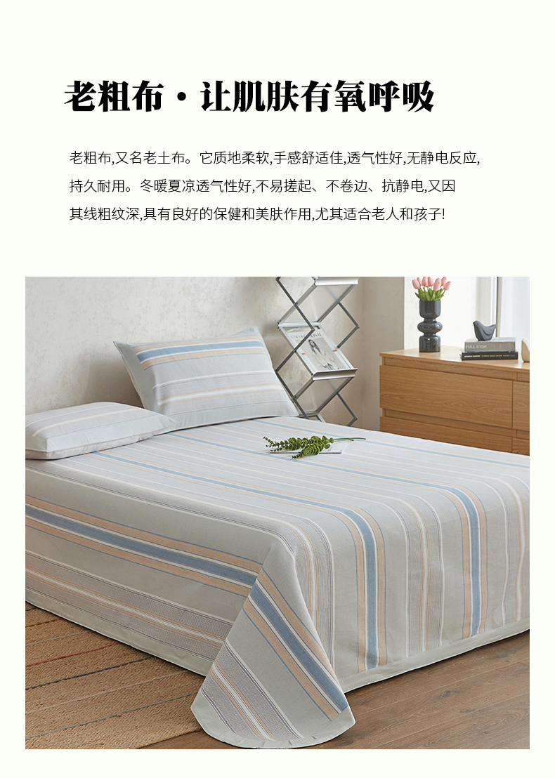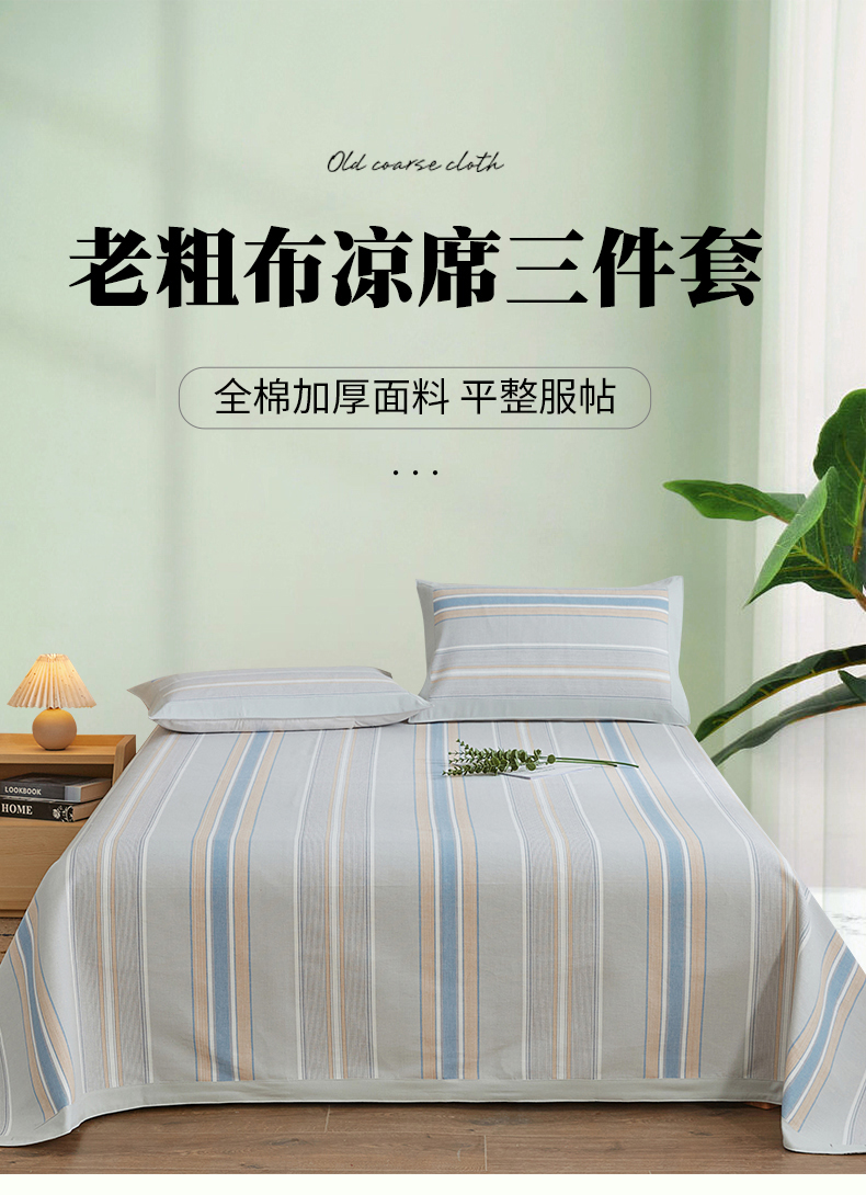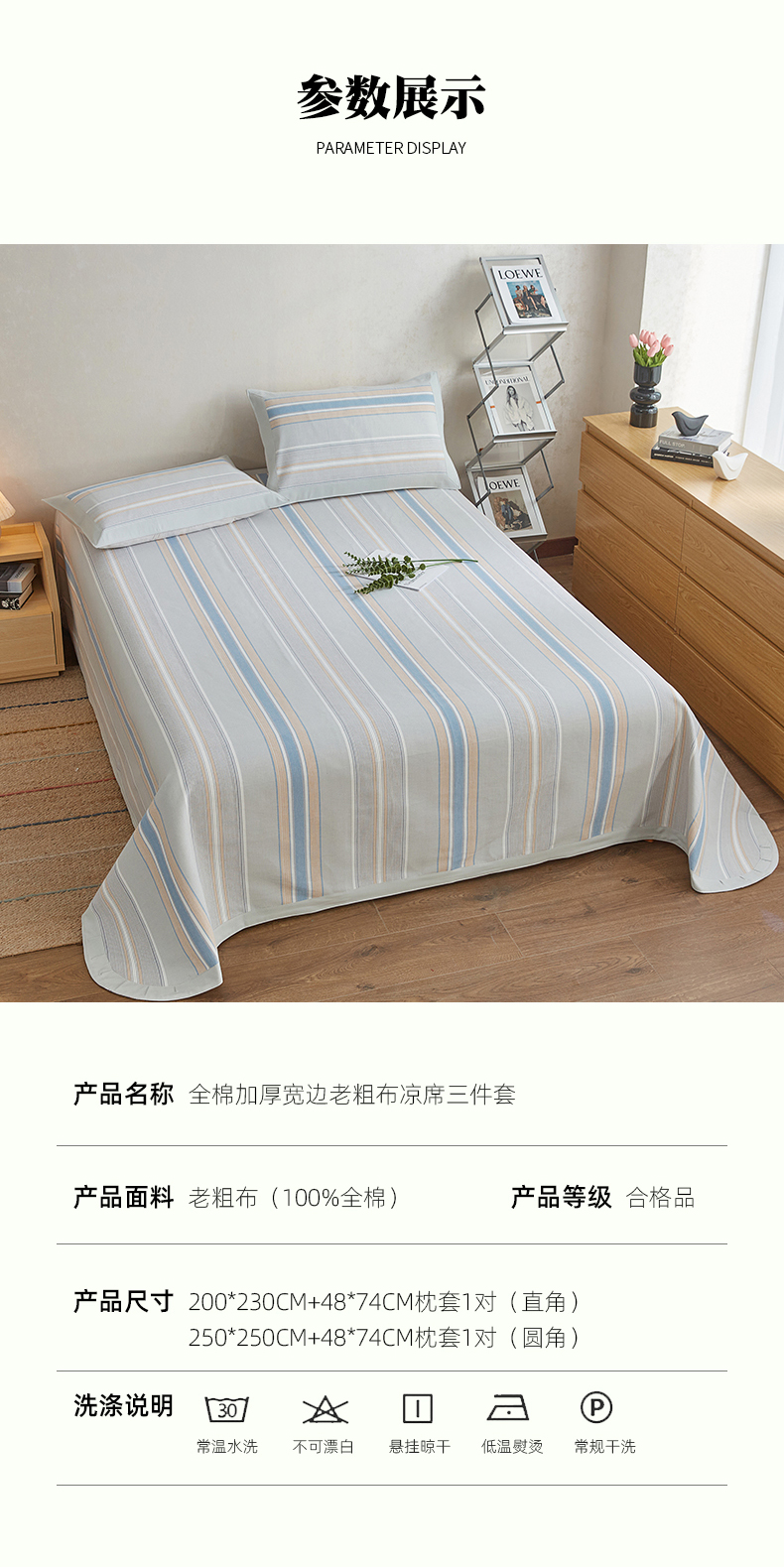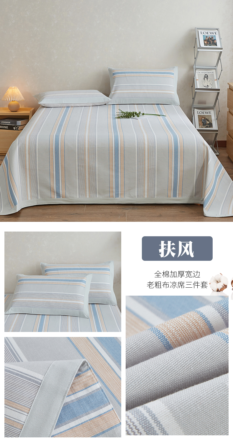 商品名称:首爱 2025新款全棉加厚宽边老粗布凉席三件套 扶风