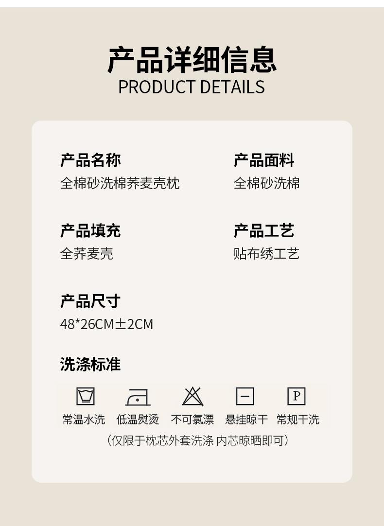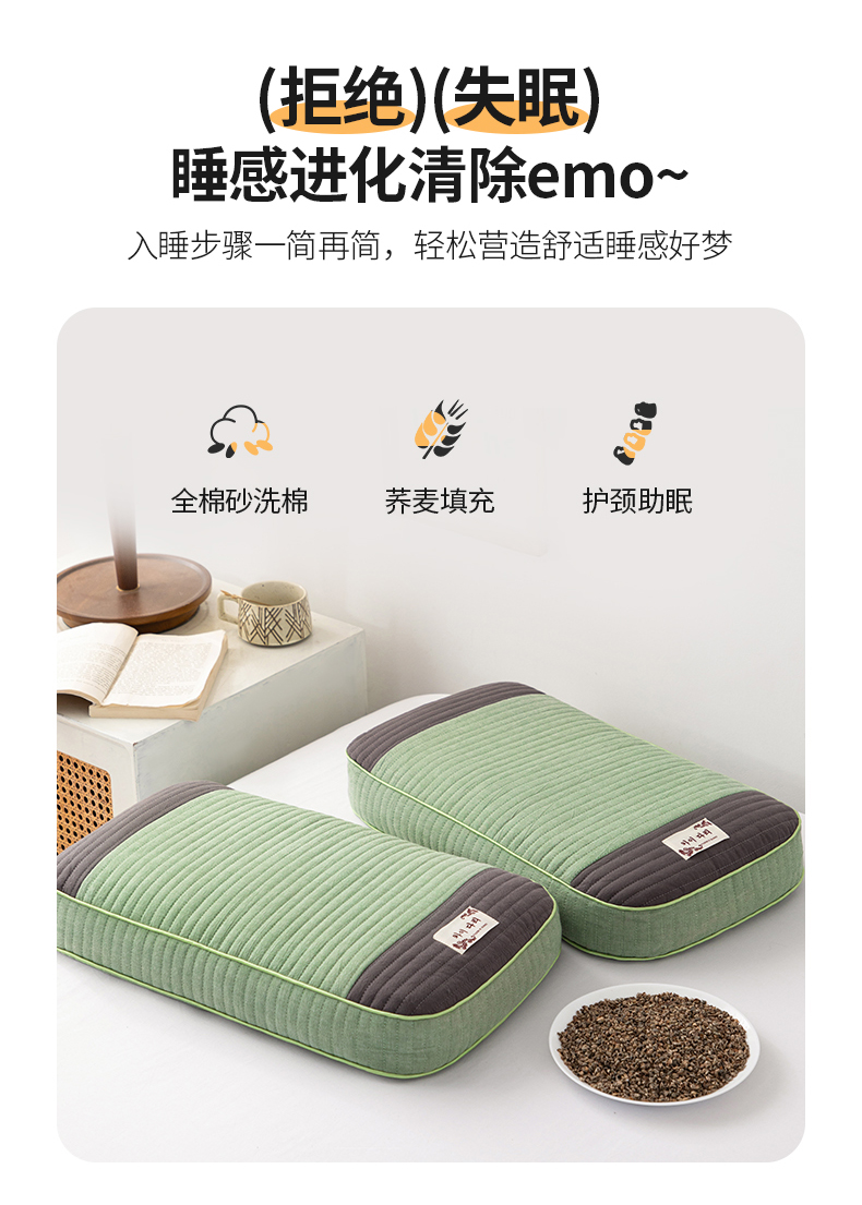 商品名称:(总)织布人 2024新款荞麦枕全棉韩式砂洗面包枕全荞麦壳护颈椎枕头+枕芯