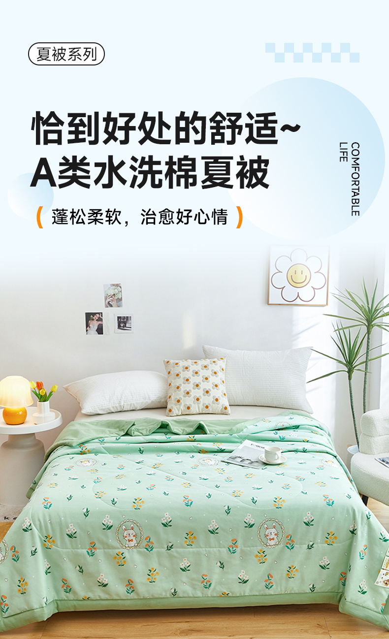 商品名称:欧朵2025新款A类水洗棉夏被系列 花环兔