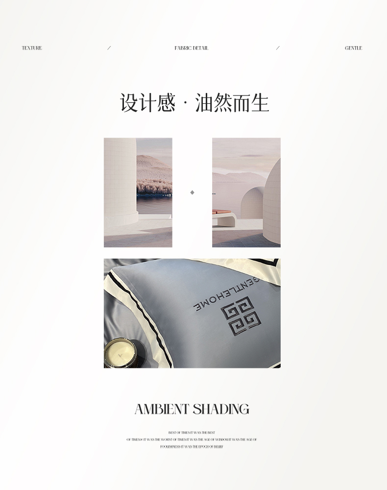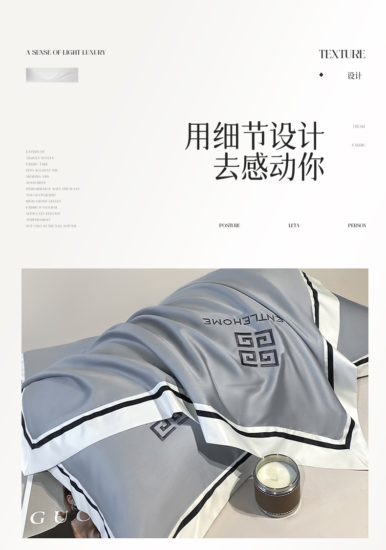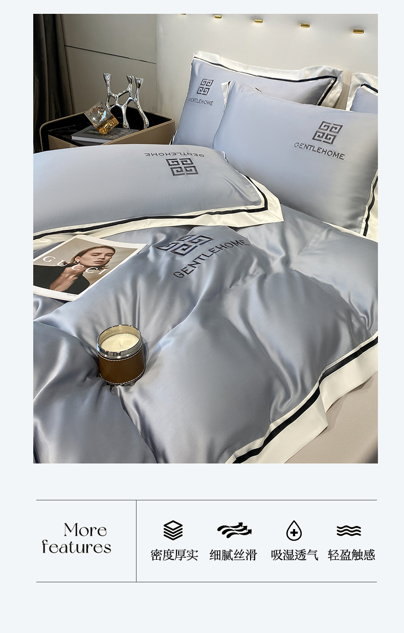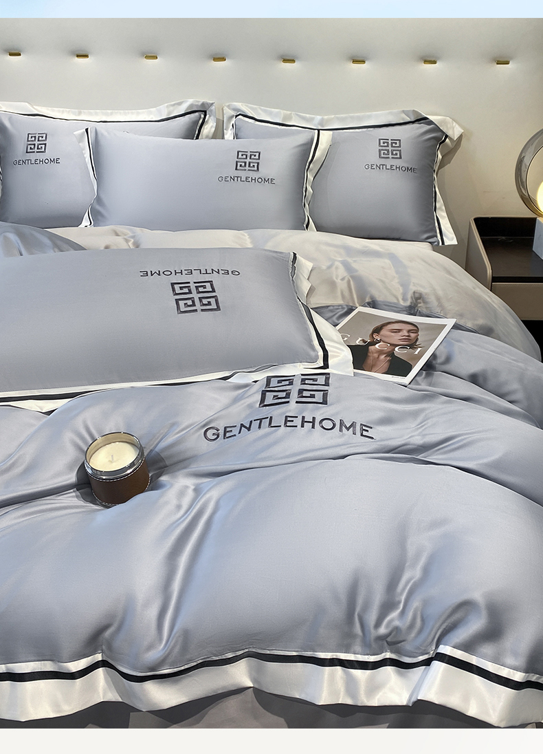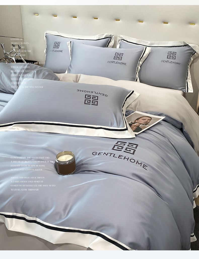 商品名称:眷恋家纺 2024新品水洗真丝宽边四件套-挪威系列 挪威-海清+山灰