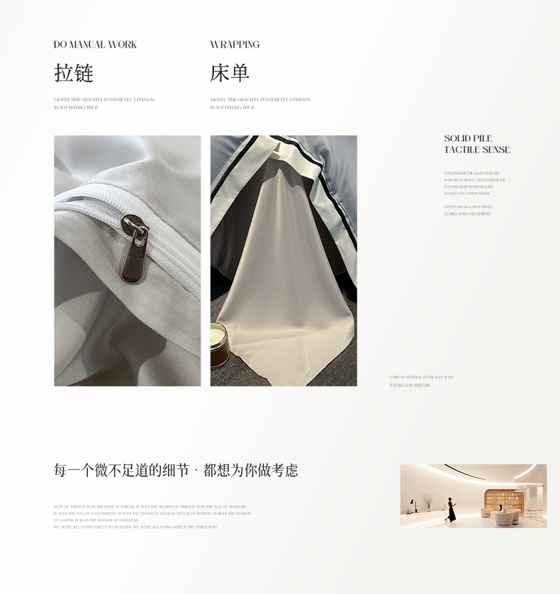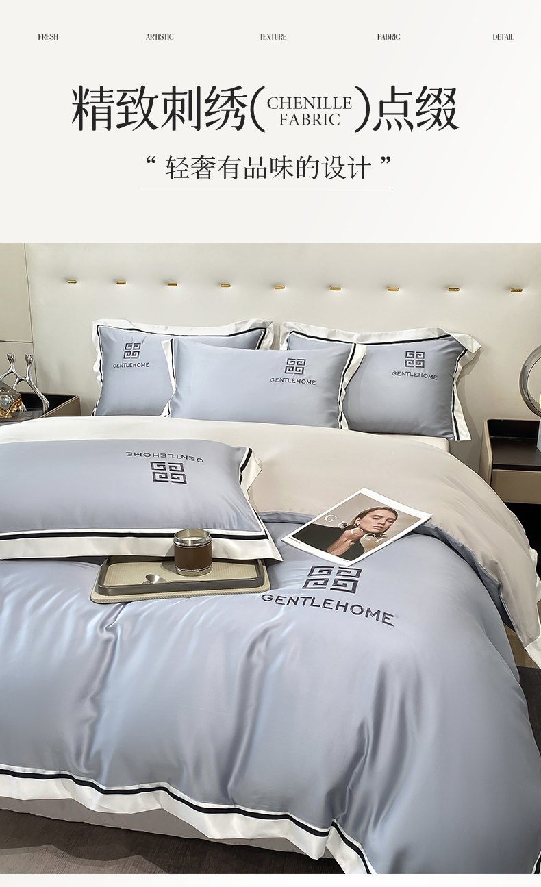眷恋家纺 2024新品水洗真丝宽边四件套-挪威系列 挪威-海清+山灰