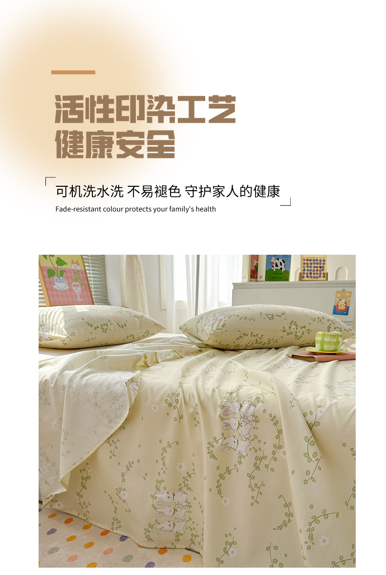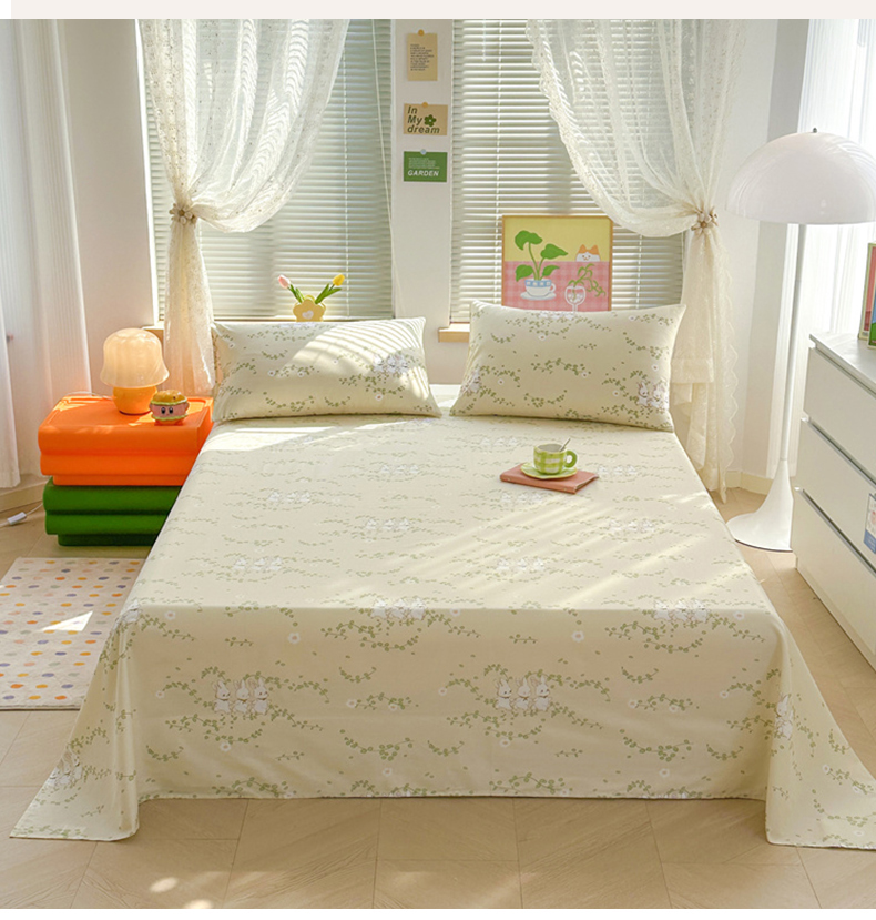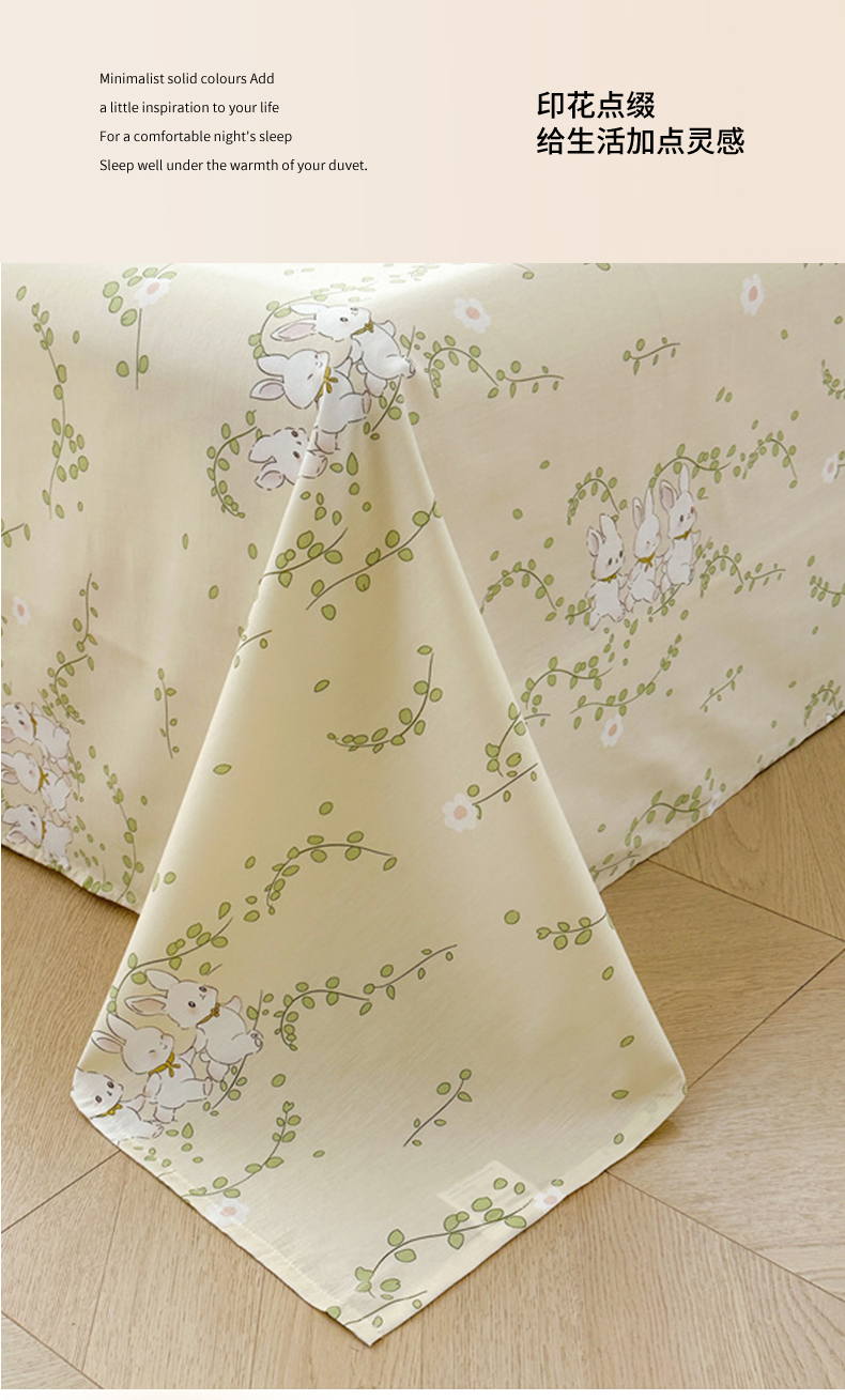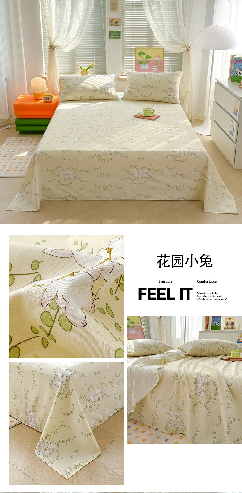 • 91家纺网 家纺一手货源 找家纺 寻米 2024新款纯棉正宗13070印花小清新系列-单床单 花园小兔