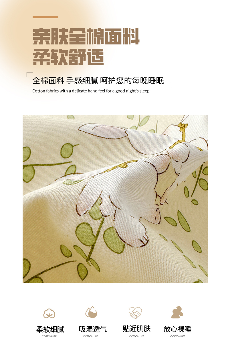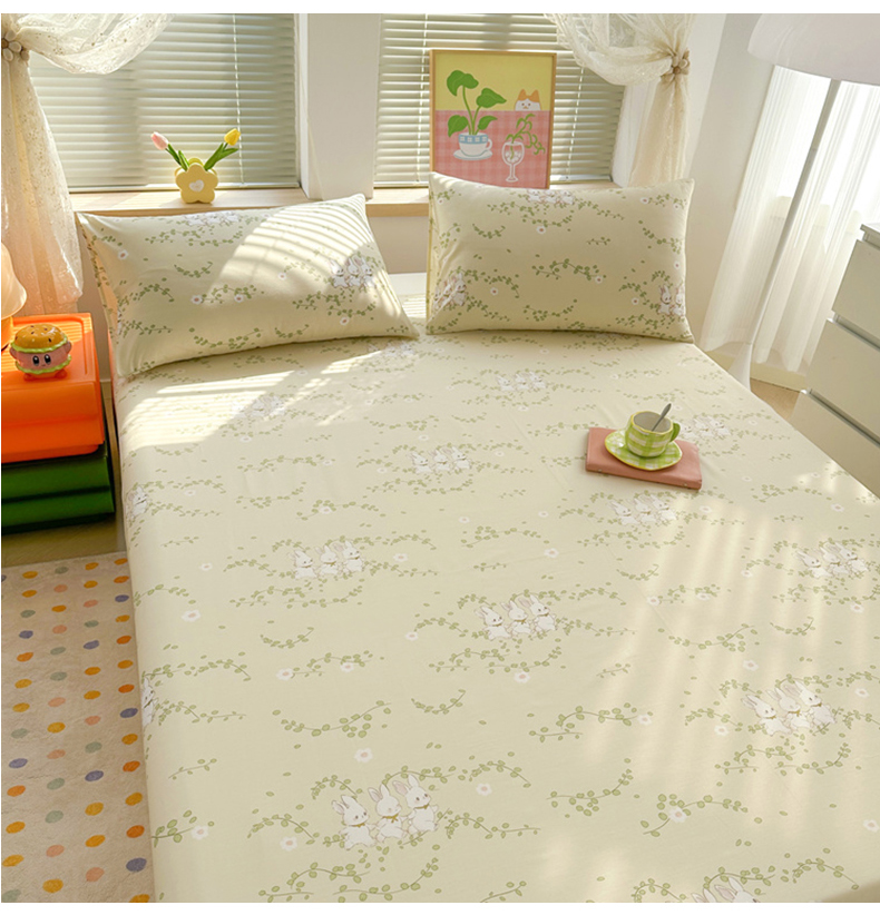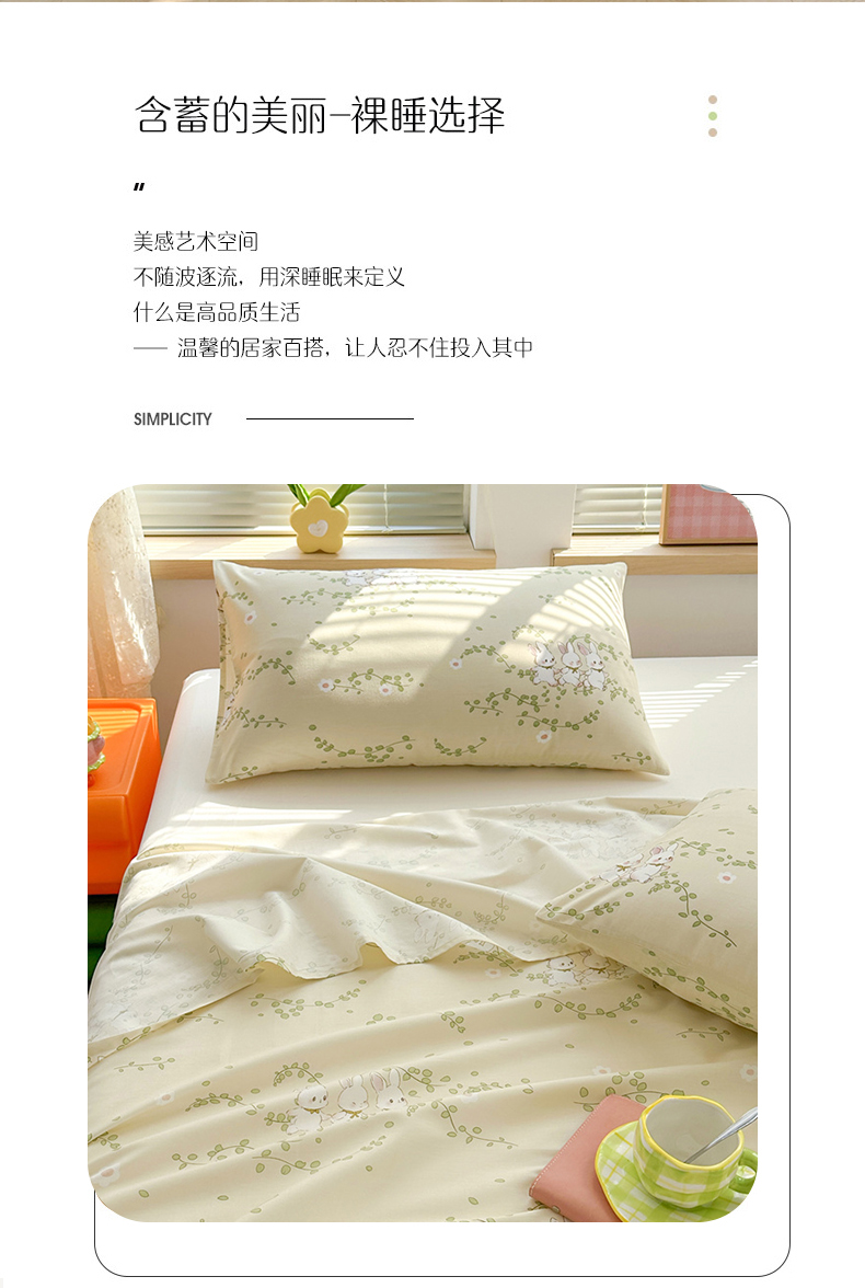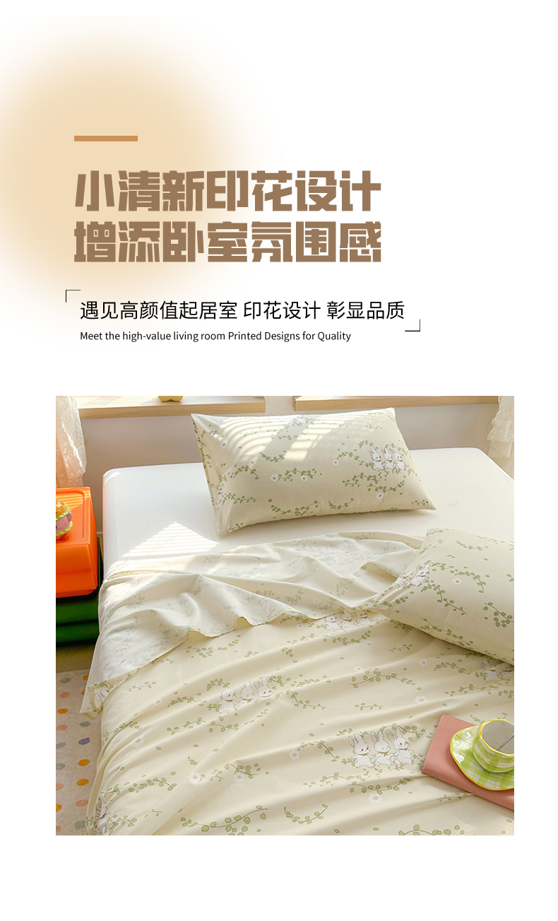 • 91家纺网 家纺一手货源 找家纺 寻米 2024新款纯棉正宗13070印花小清新系列-单床单 花园小兔
