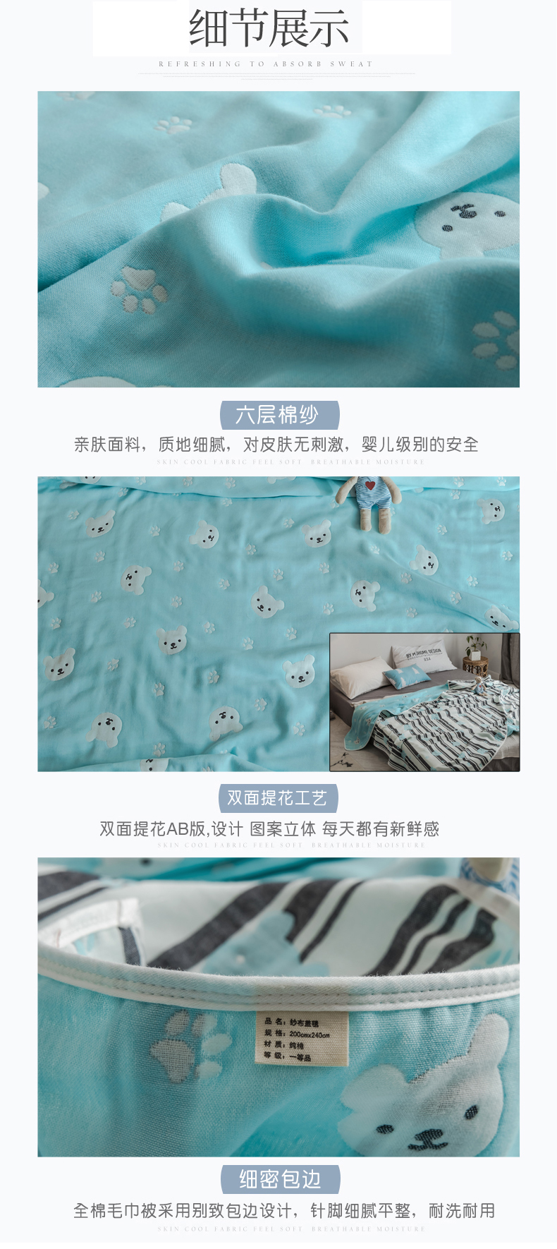 朴尔2024经典六层纱布全棉毛巾被系列-朴尔经典款常年备货 甜蜜小熊-兰