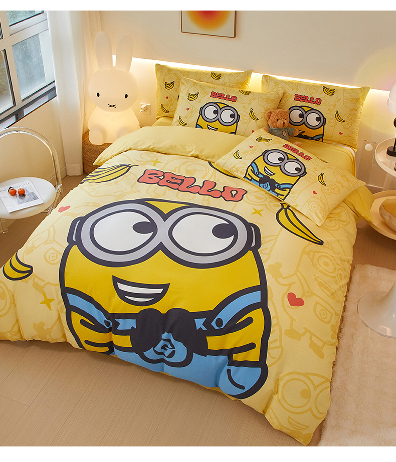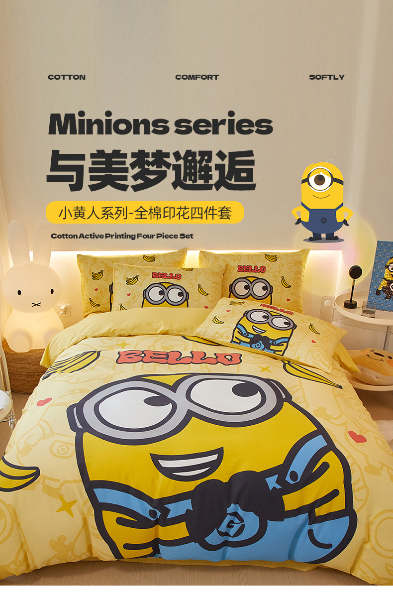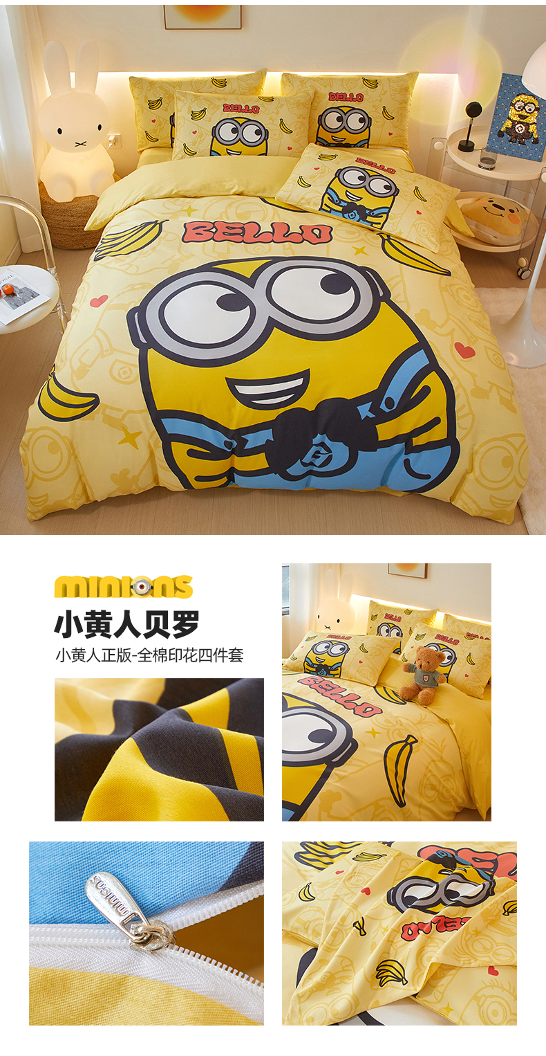 当前位置: 91家纺网 > 商品网购 > 床品套件 > 四件套 > 全棉活性四件套 > 鑫帝家居 2025新款全棉活性印花四件套---小黄人系列 小黄人贝罗
