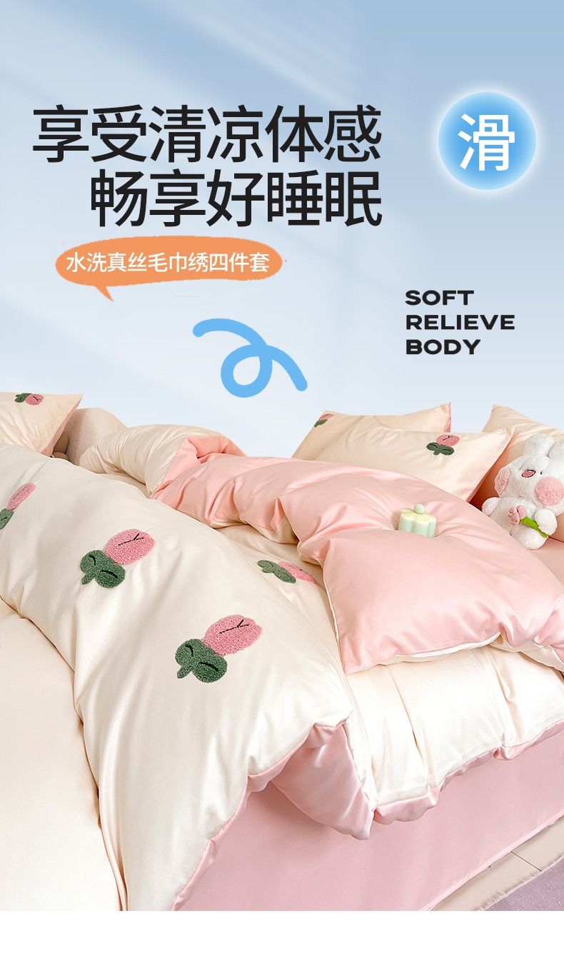 (总)梦幻之城 2024新款水洗真丝毛巾绣款四件套三件套--黛西系列