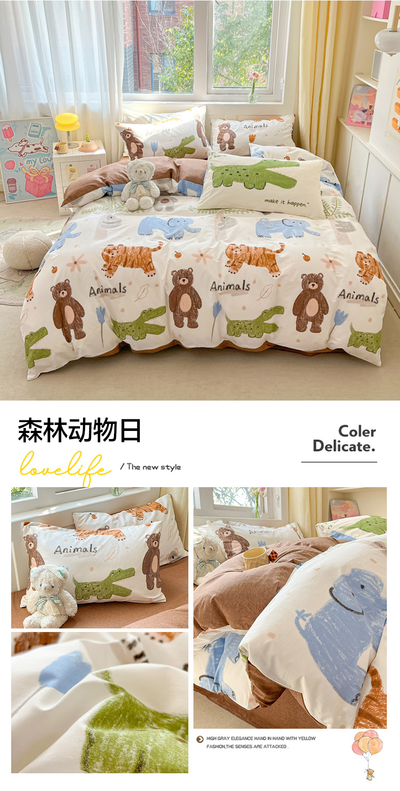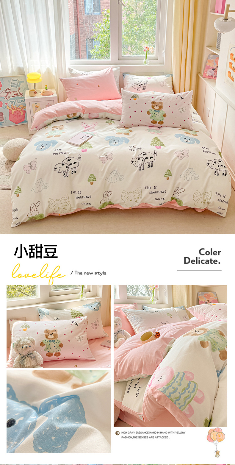 (总)佰亿莱 2024直播新款小清新印花全棉加厚磨毛四件套,爱心格,波浪兔,花萌,花园兔,咖啡熊,萌萌狗,时尚花季,时尚恐龙,田园花,郁金香