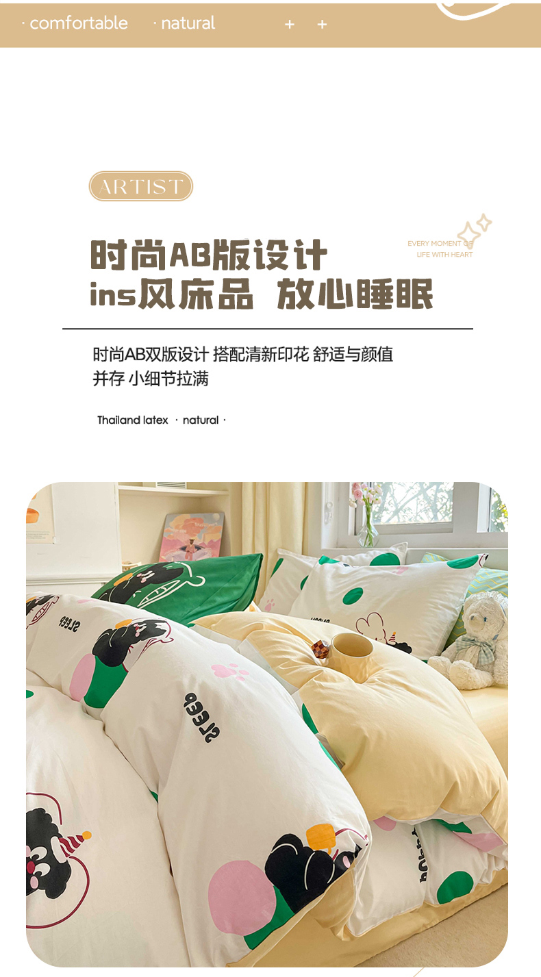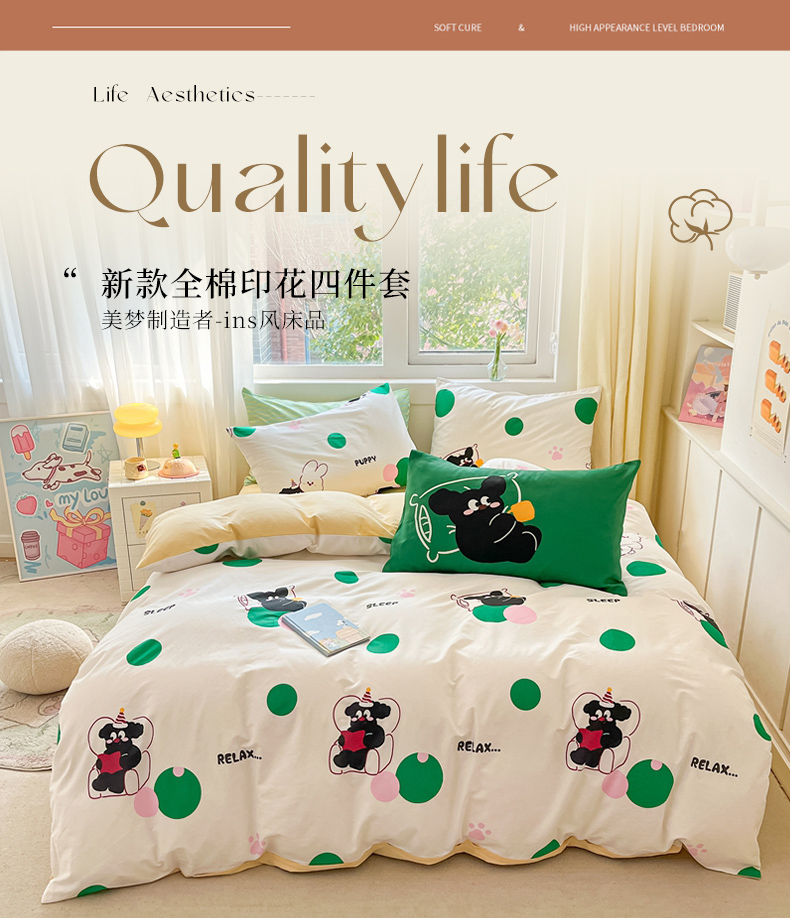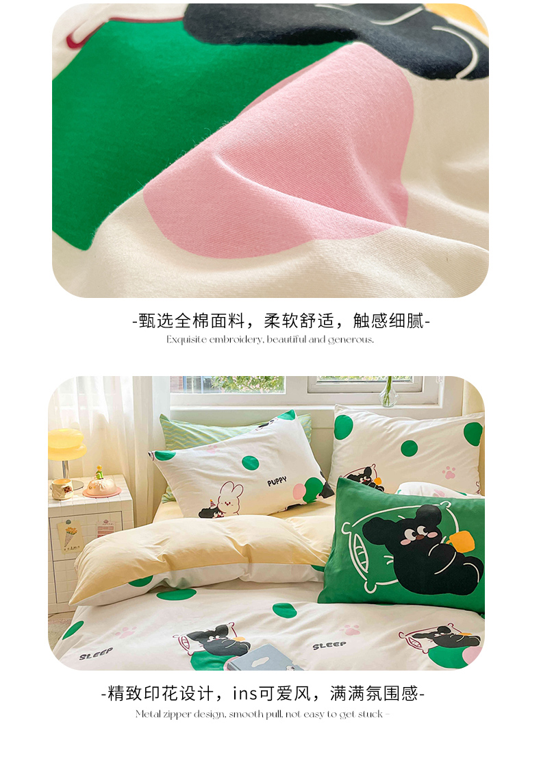 (总)佰亿莱 2024直播爆款小清新简约风全棉加厚磨毛四件套,爱心格,波浪兔,花萌,花园兔,咖啡熊,萌萌狗,时尚花季,时尚恐龙,田园花,郁金香,格韵,黑大格,简约-蓝,简约-绿,洛卡灰,绿格,斯诺克,银杏,羽叶,云舒粉
