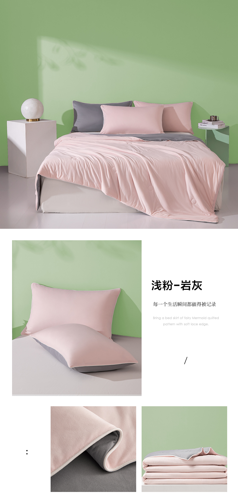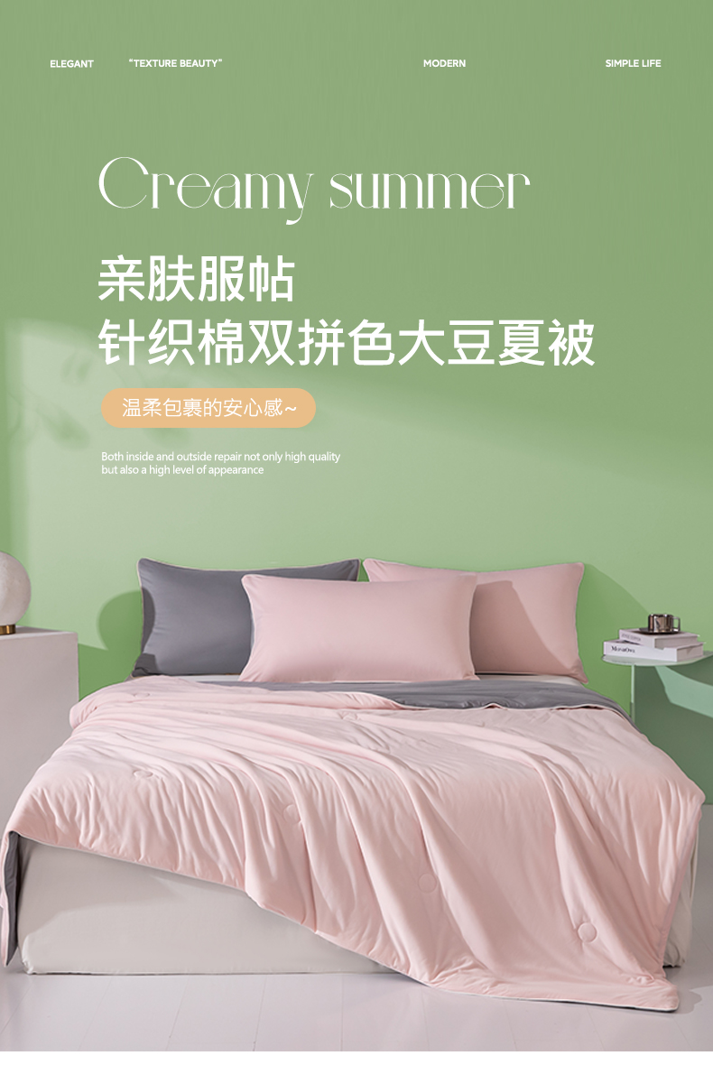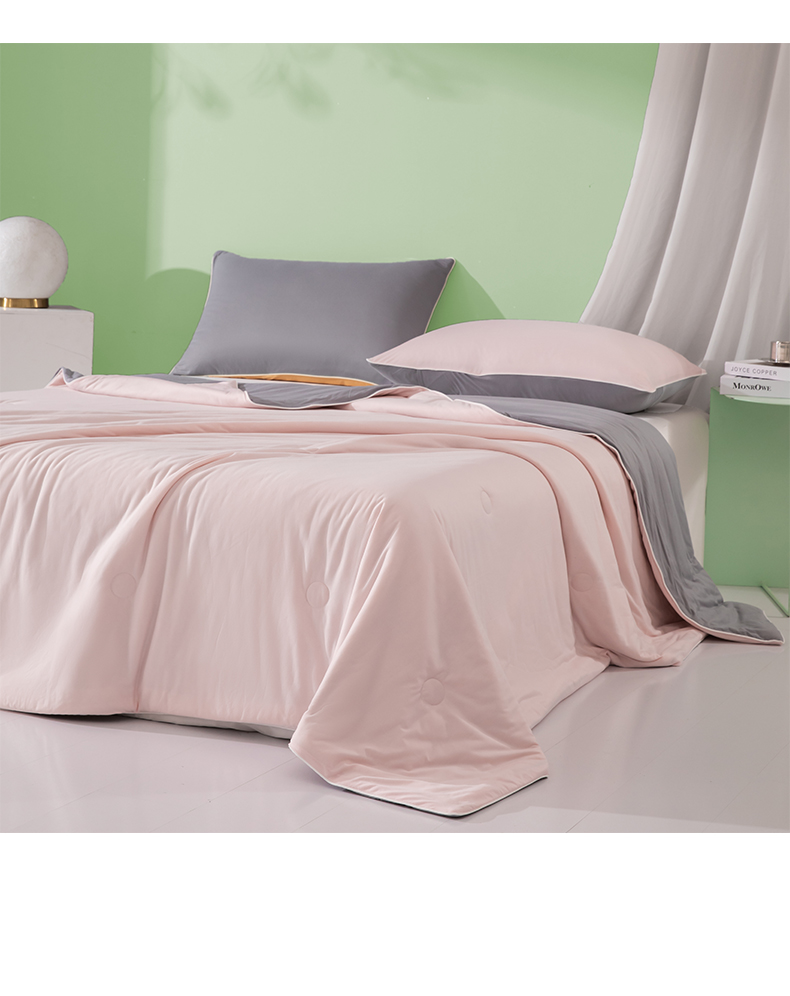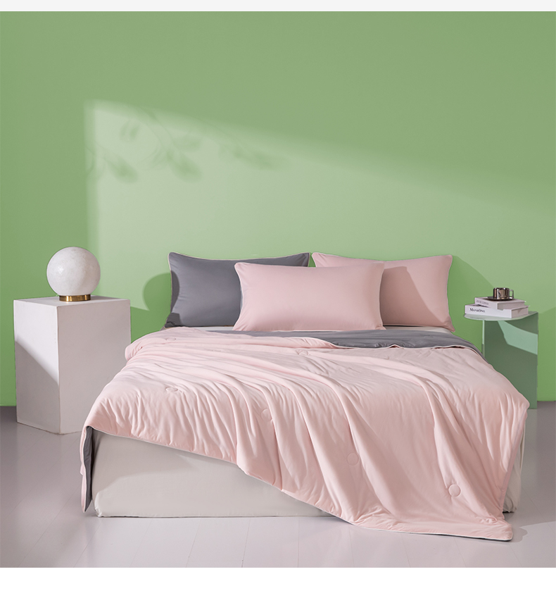 商品名称:吾诺家居 2024新款针织棉双拼色大豆夏被 浅粉-岩灰