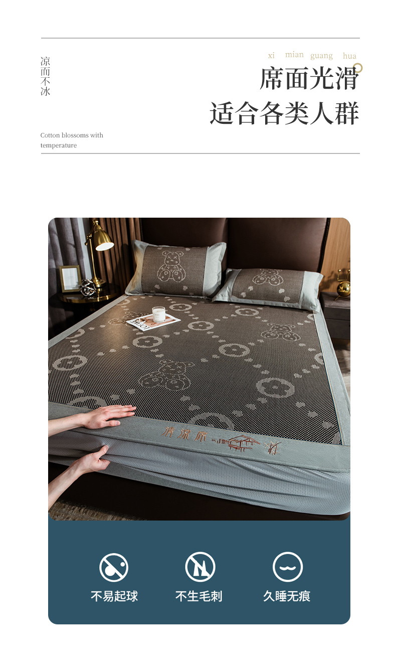 当前位置: 91家纺网 > 商品网购 > 床上用品 > 凉席 > 其他凉席 > 全季家居 2024新款加厚加密宽边刺绣提花冰藤凉席 呆呆熊-灰色(床笠款)