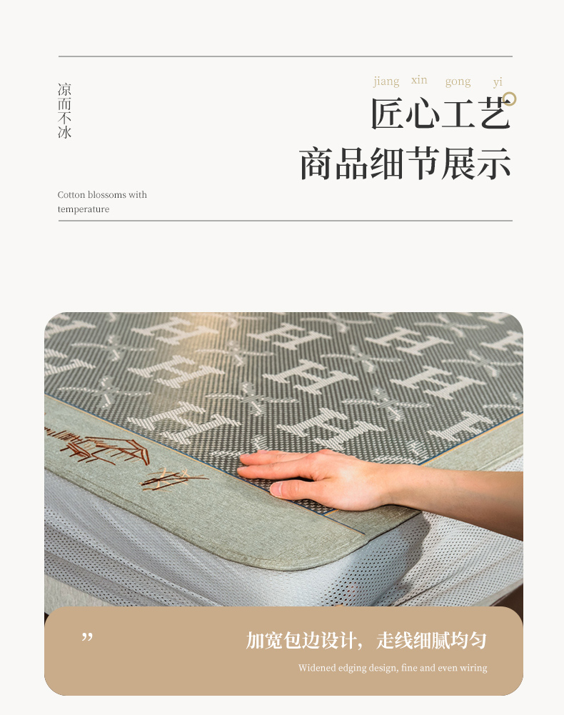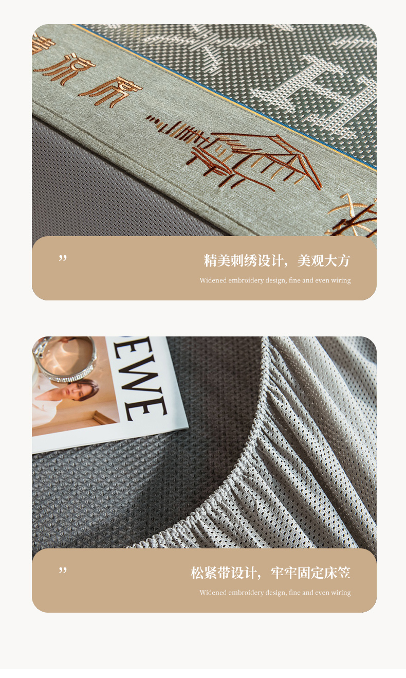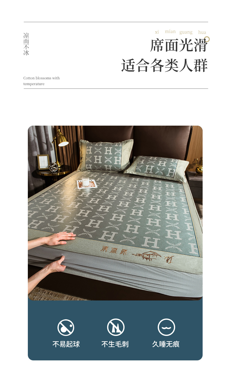 当前位置: 91家纺网 > 商品网购 > 床上用品 > 凉席 > 其他凉席 > 全季家居 2024新款加厚加密宽边刺绣提花冰藤凉席 字母-水绿(床笠款)