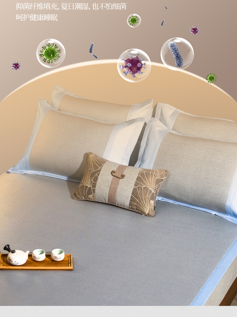 (总)全季家居 2025新款A类抗菌防螨幸运星系列冰藤席凉席席子,金咖 床席,水绿 床席,银灰 床席,金咖 床笠,水绿 床笠,银灰 床笠