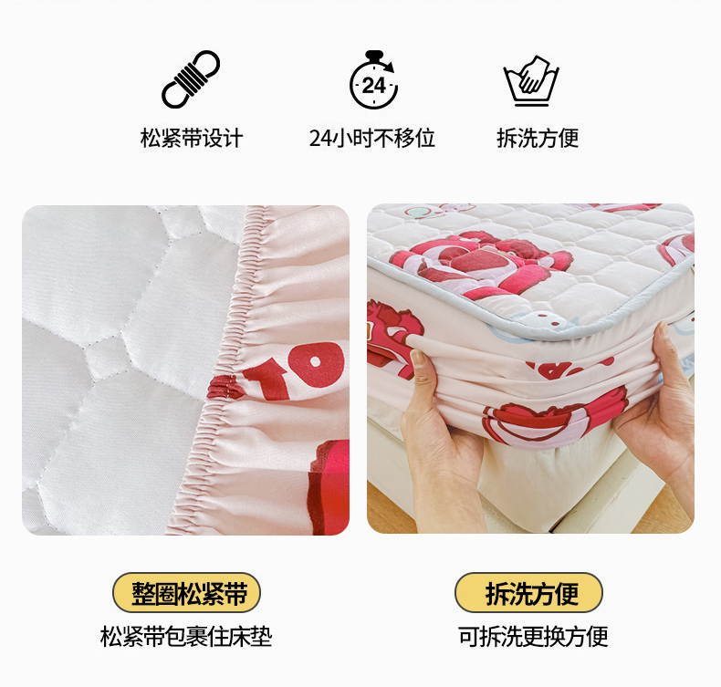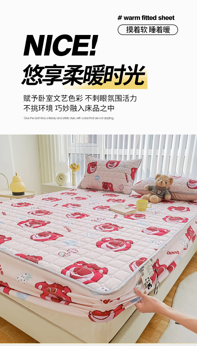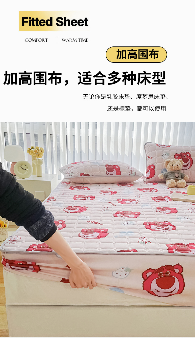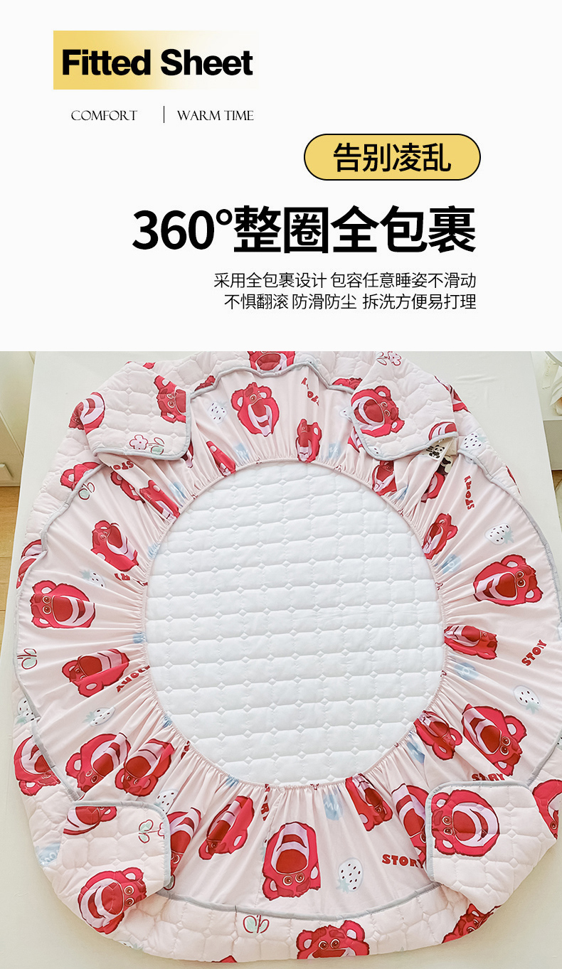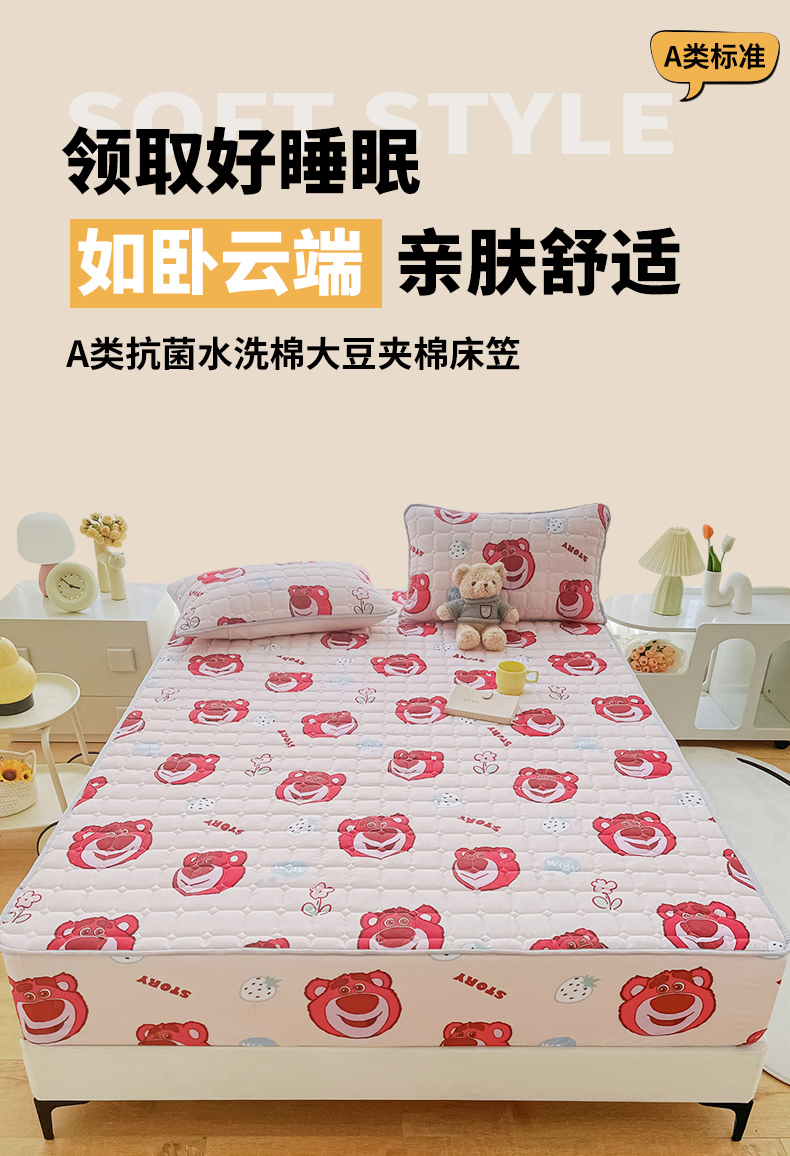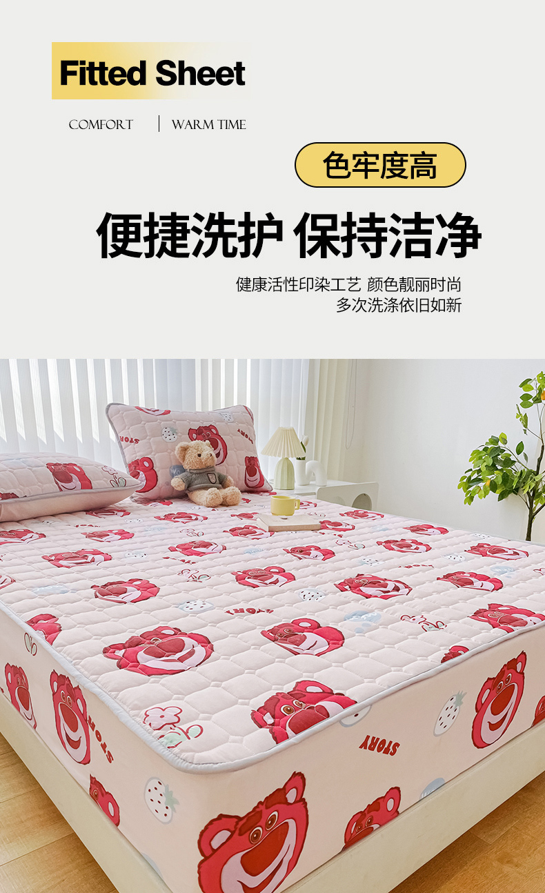 • 91家纺网 家纺一手货源 找家纺 恒尚居 2024新款小清新印花水洗棉大豆夹棉床笠 草莓熊